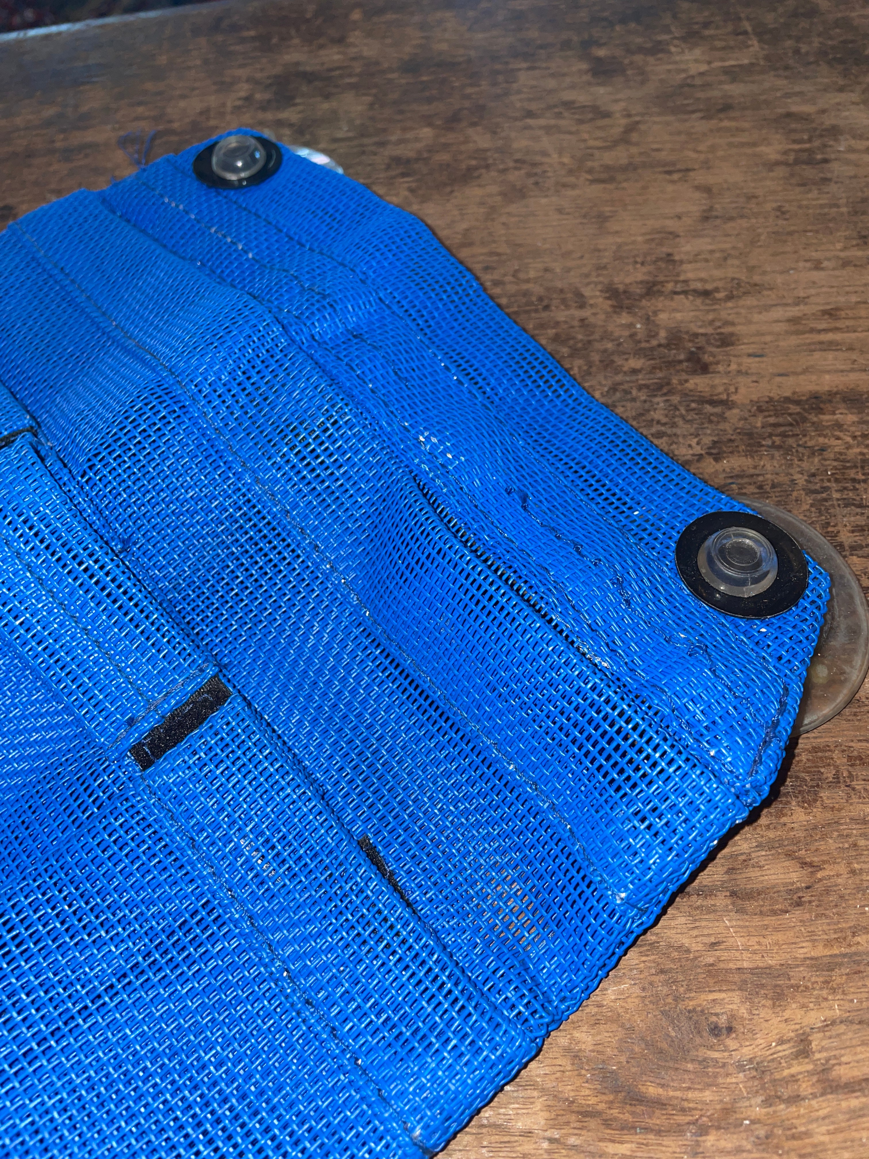 This Davis mesh sticky pocket is in great condition. 2 suction cups on each side. Mess material. It measures 10 1/4” long x 10” wide. Perfect for organizing little items you may have laying around!