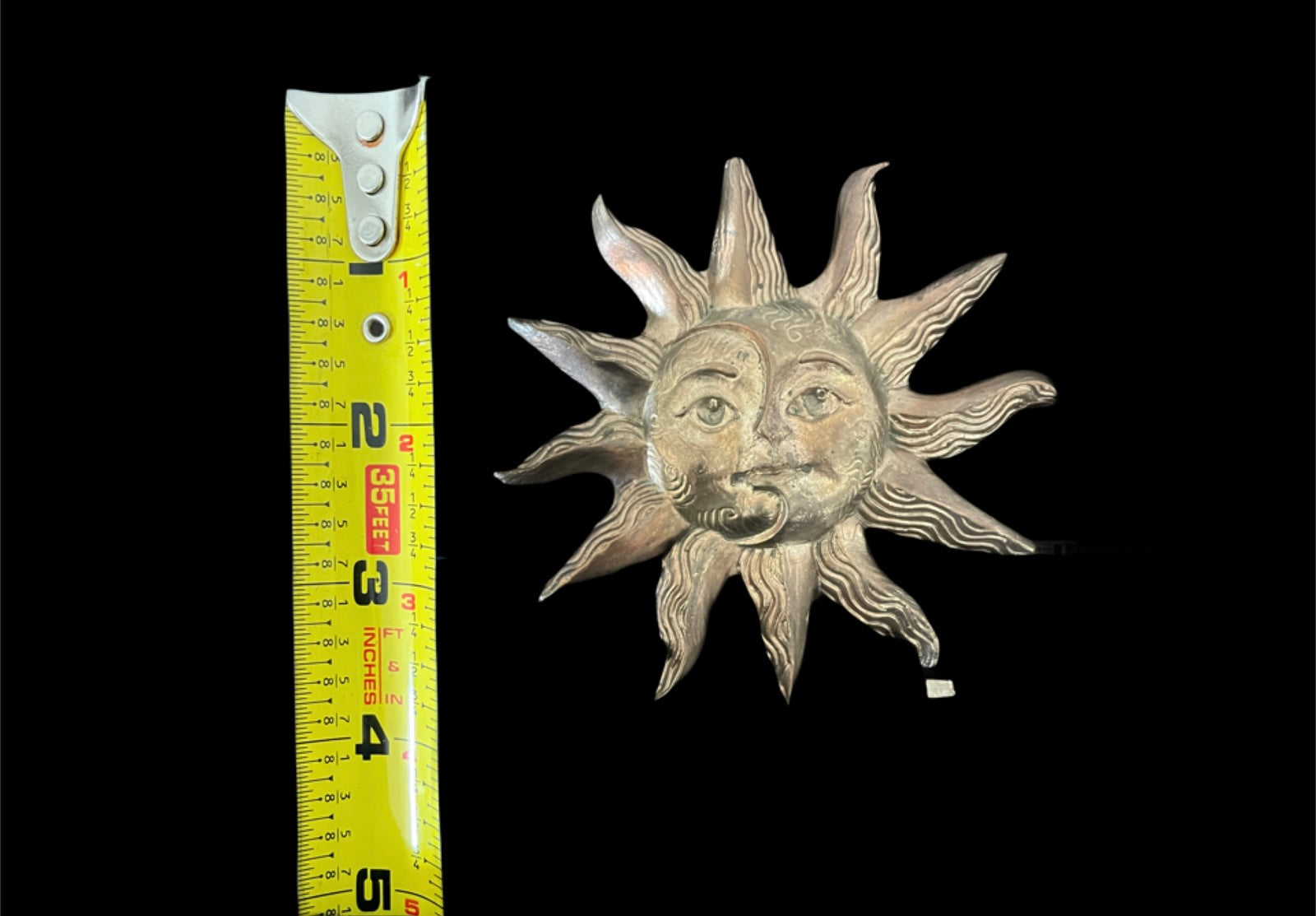 HANDCASTED, MADE IN USA. Decorative bronze sun figurine. 3 3/4".