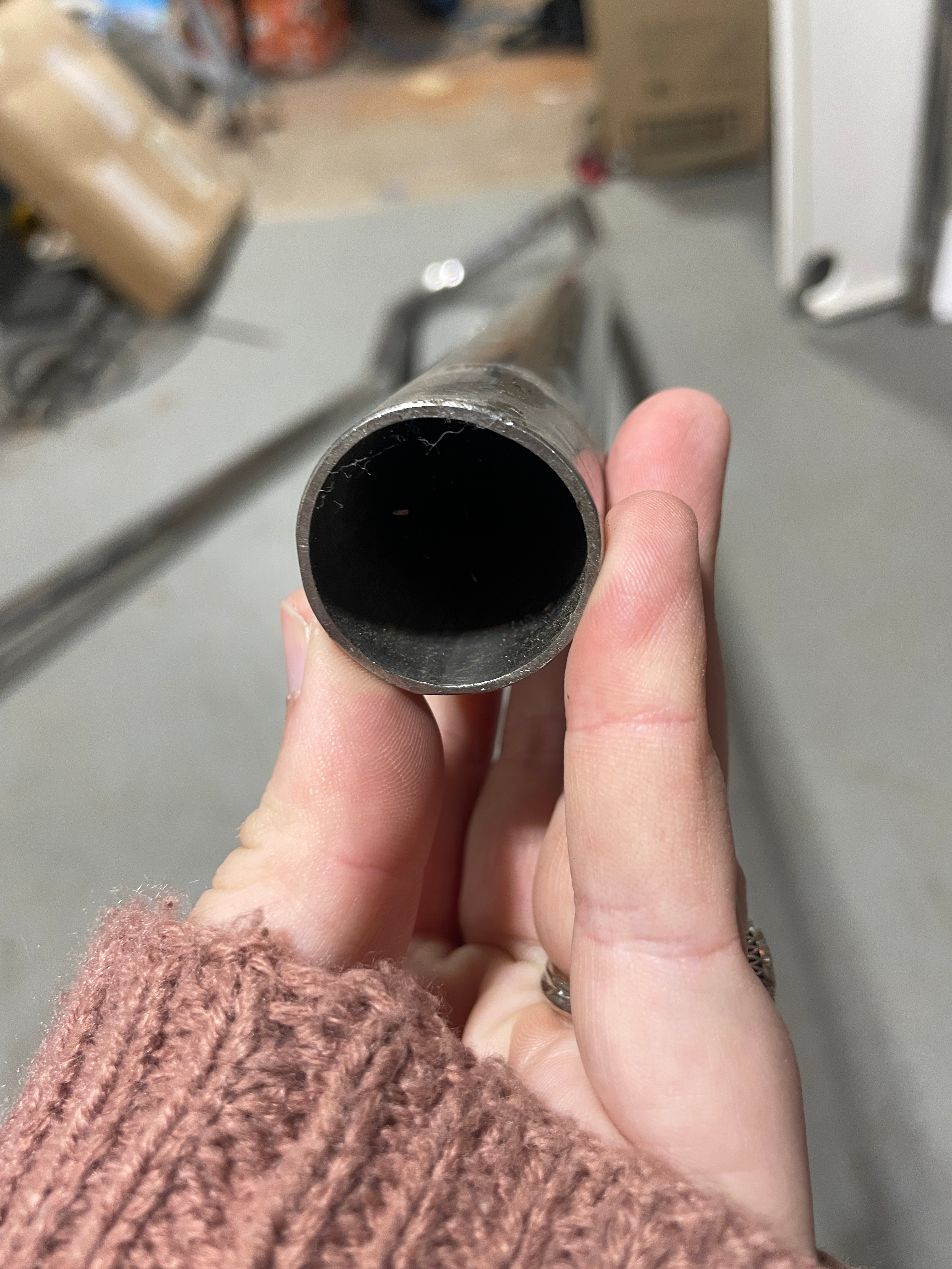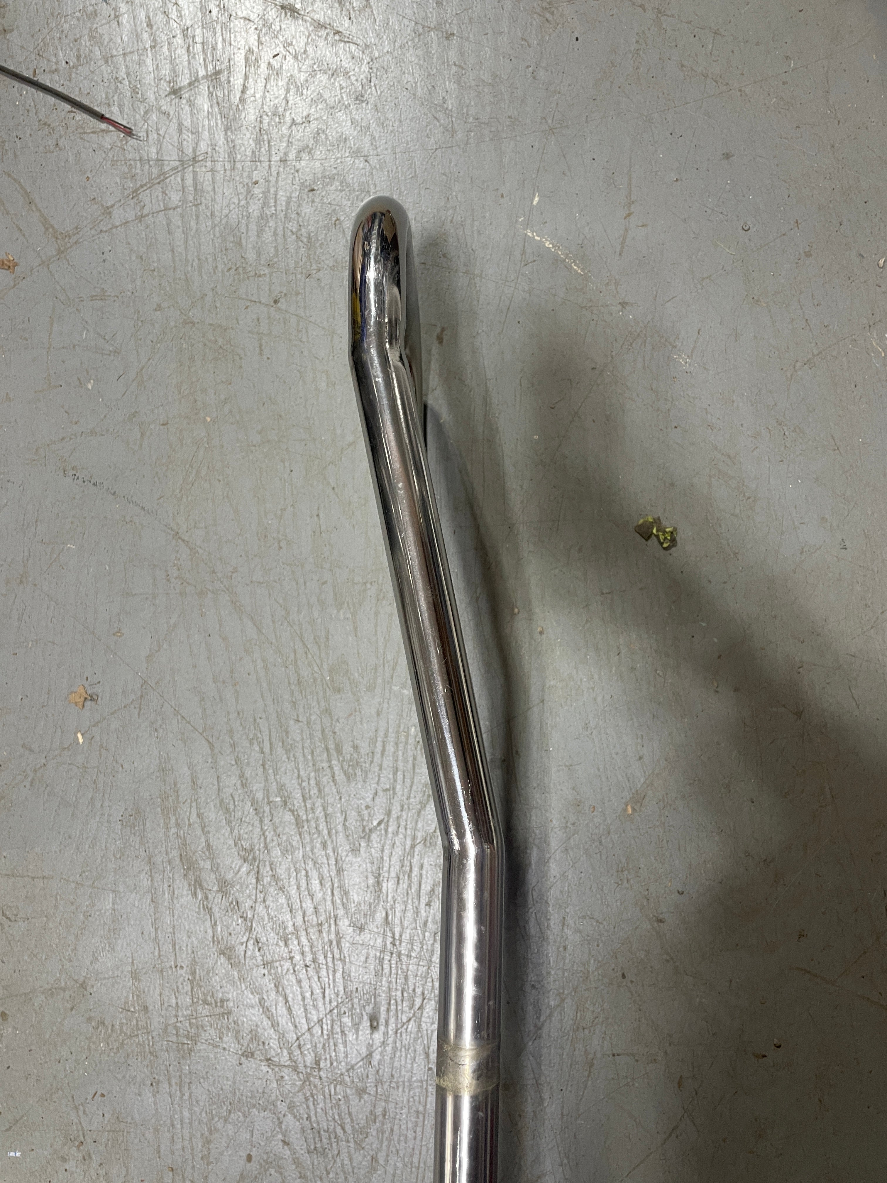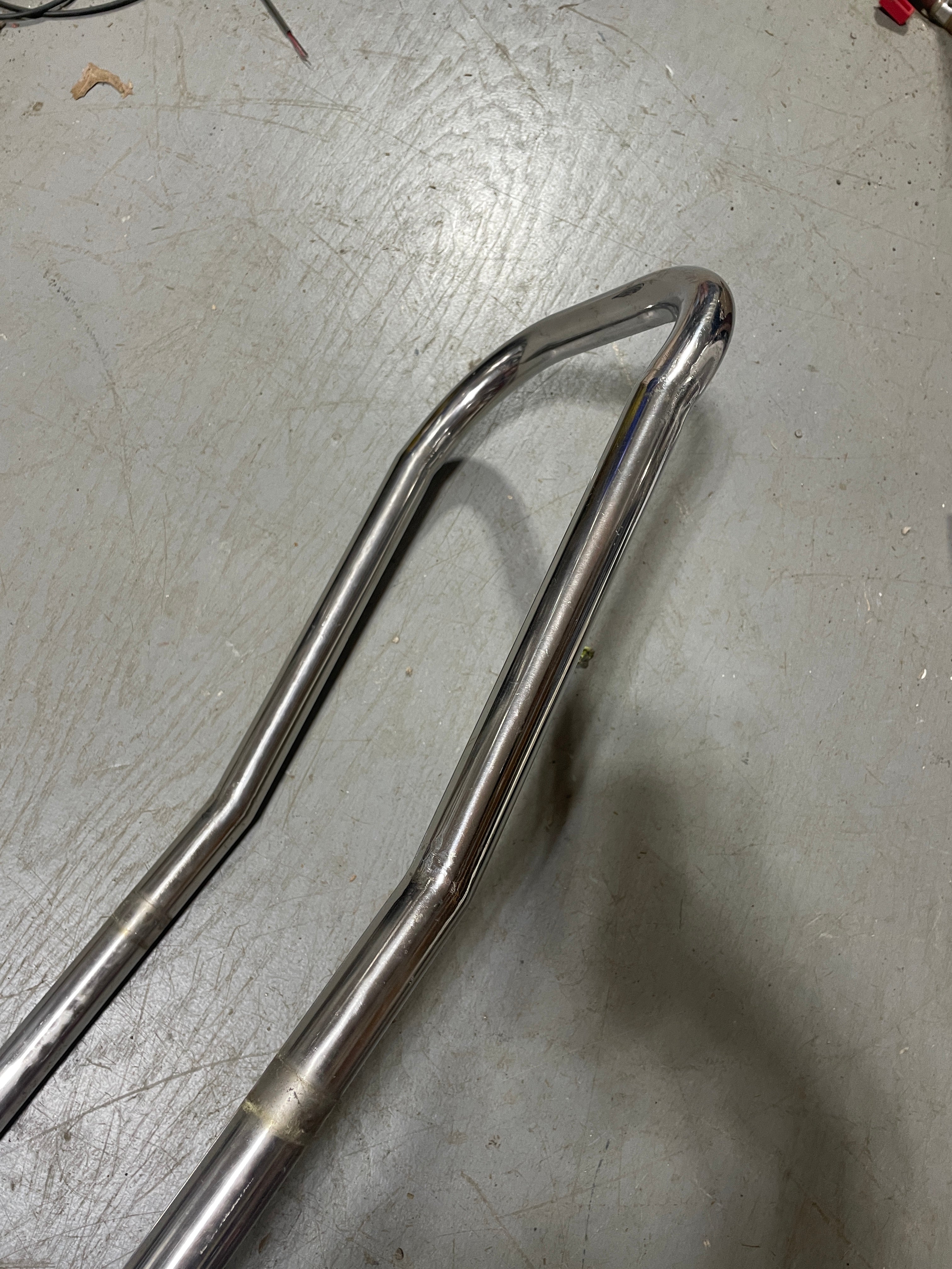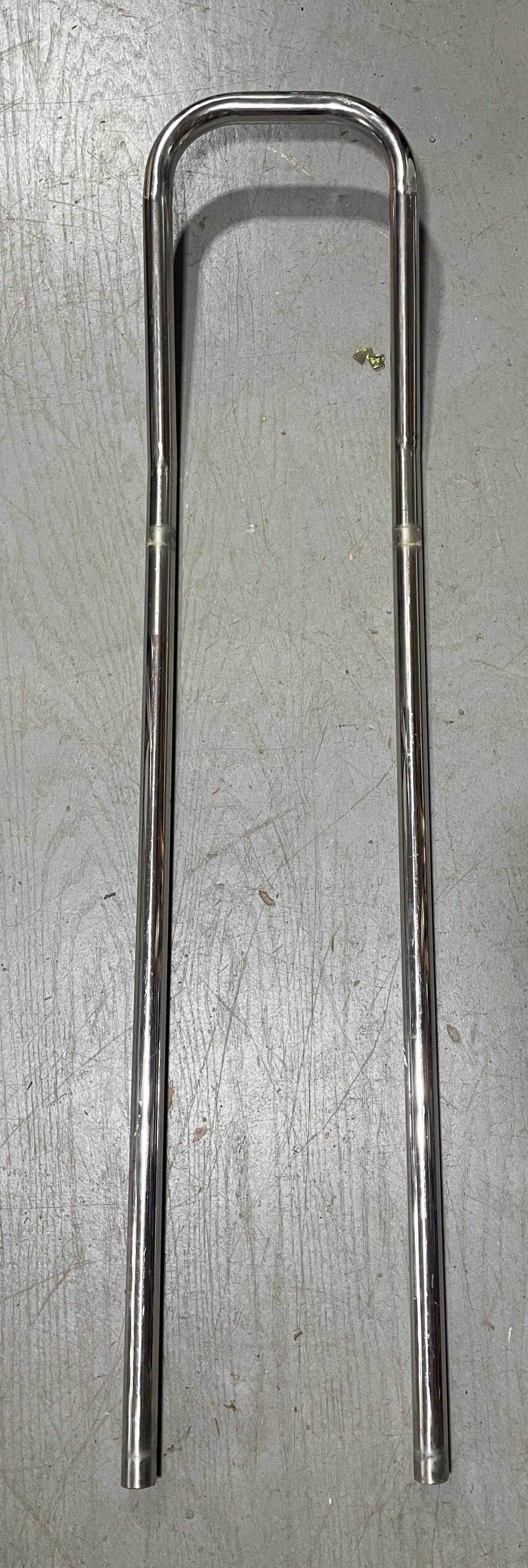 Double Bend Stainless Steel Pedestal Guard. Has the larger bend and then a smaller bend at the very top. This guard measures 49.5" total height. It has the 9.5" Center to Center measurements. This is the thicker 1 1/4" Tubing Diameter. Some usual scratching from use but no dings or dents.