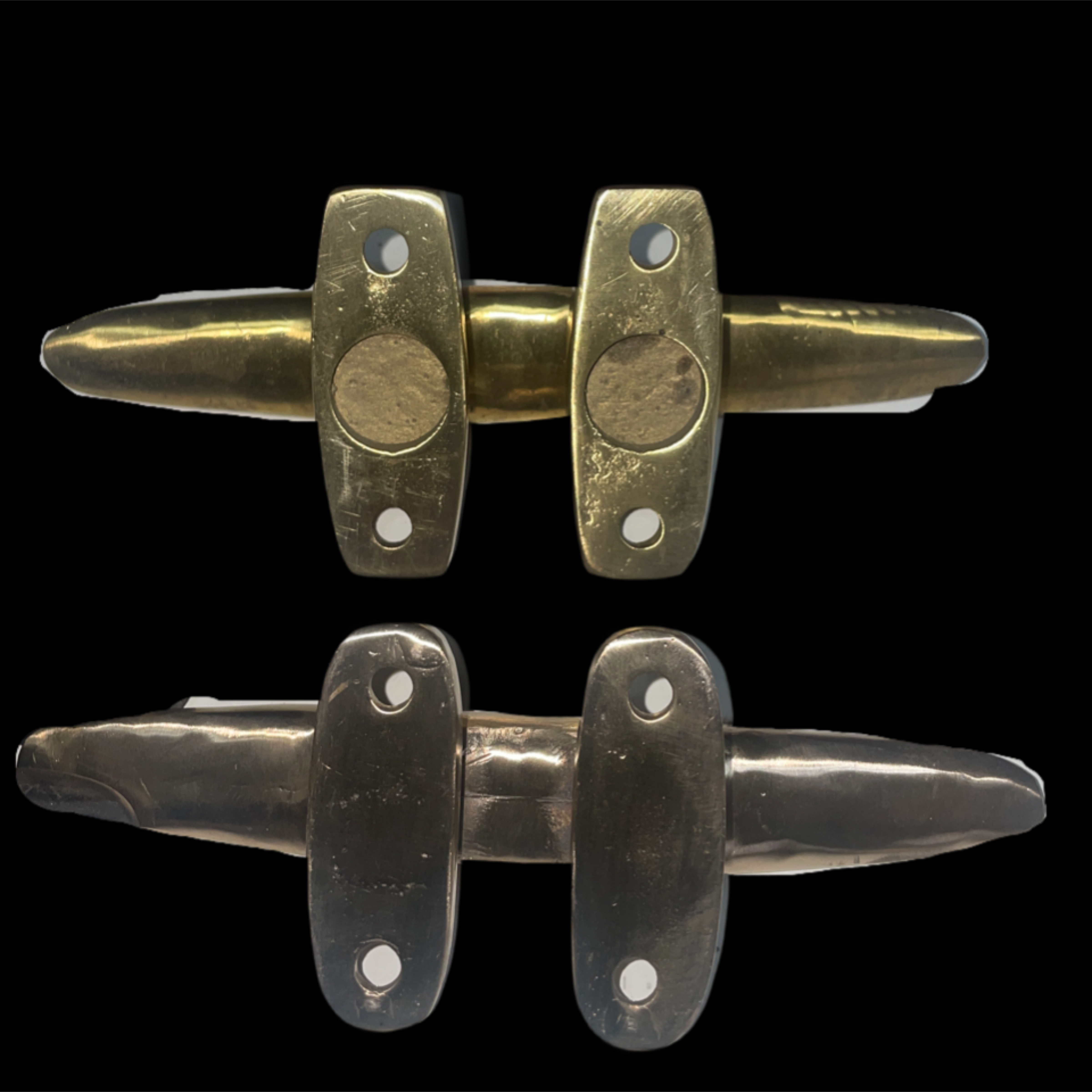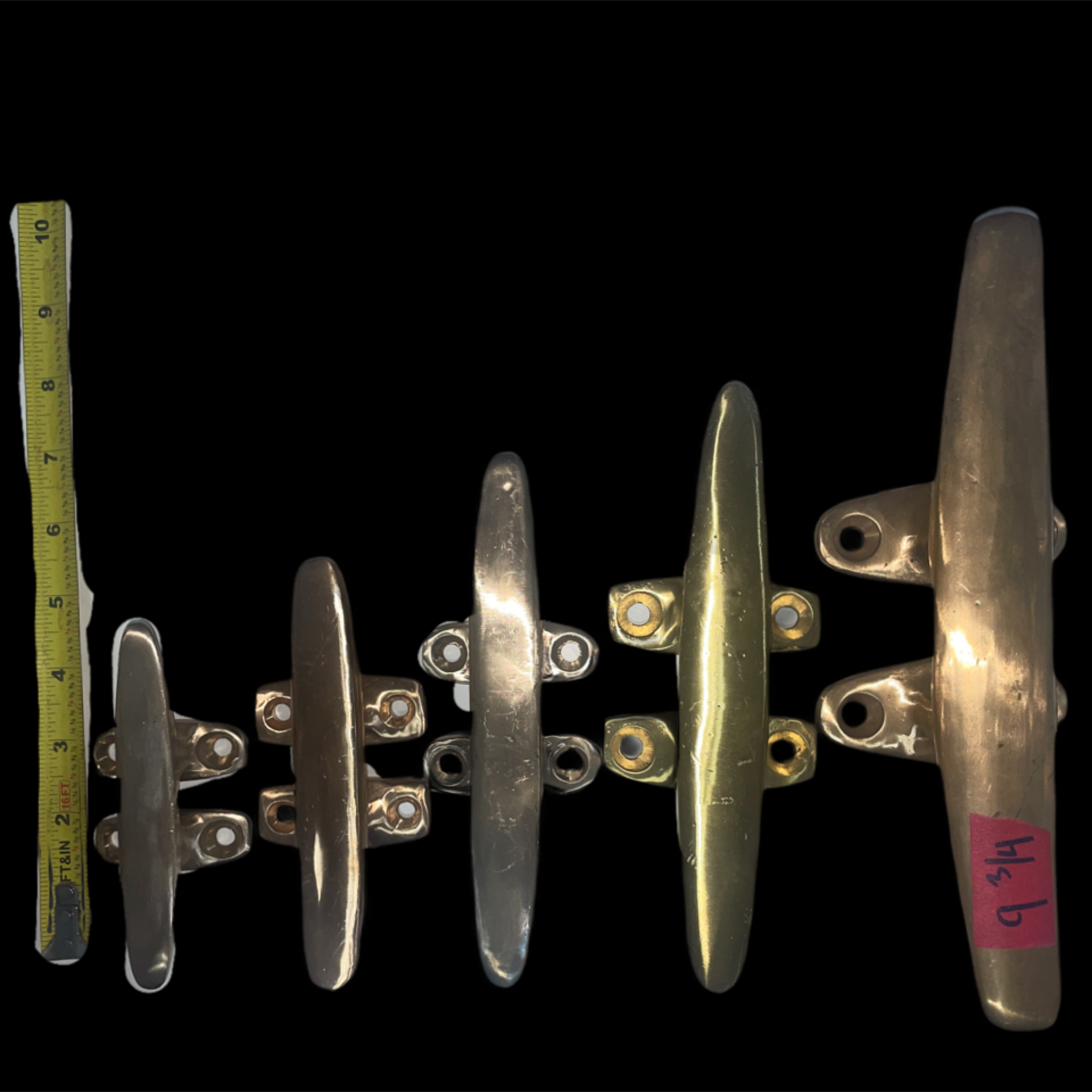 Bristol bronze double pedestal yacht cleats. Slightly curved flat top. Good holding power. 5 different sizes available, shown below with the Bristol bronze code.