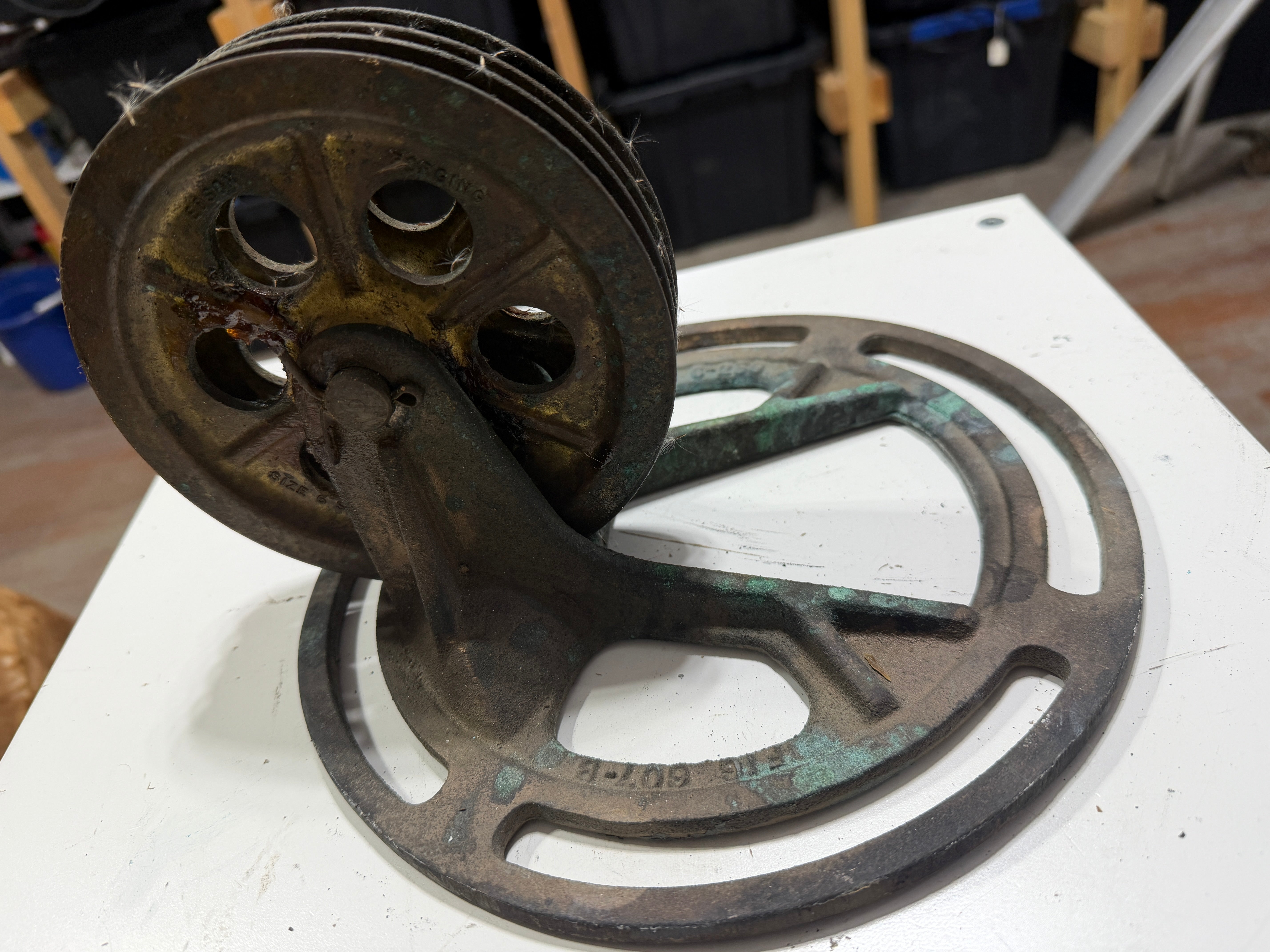 Edson C-269 607-B - 6" Sheaved Idler Steering Pedestal Pulleys. The base is 10" diameter. Stands about 7" tall.