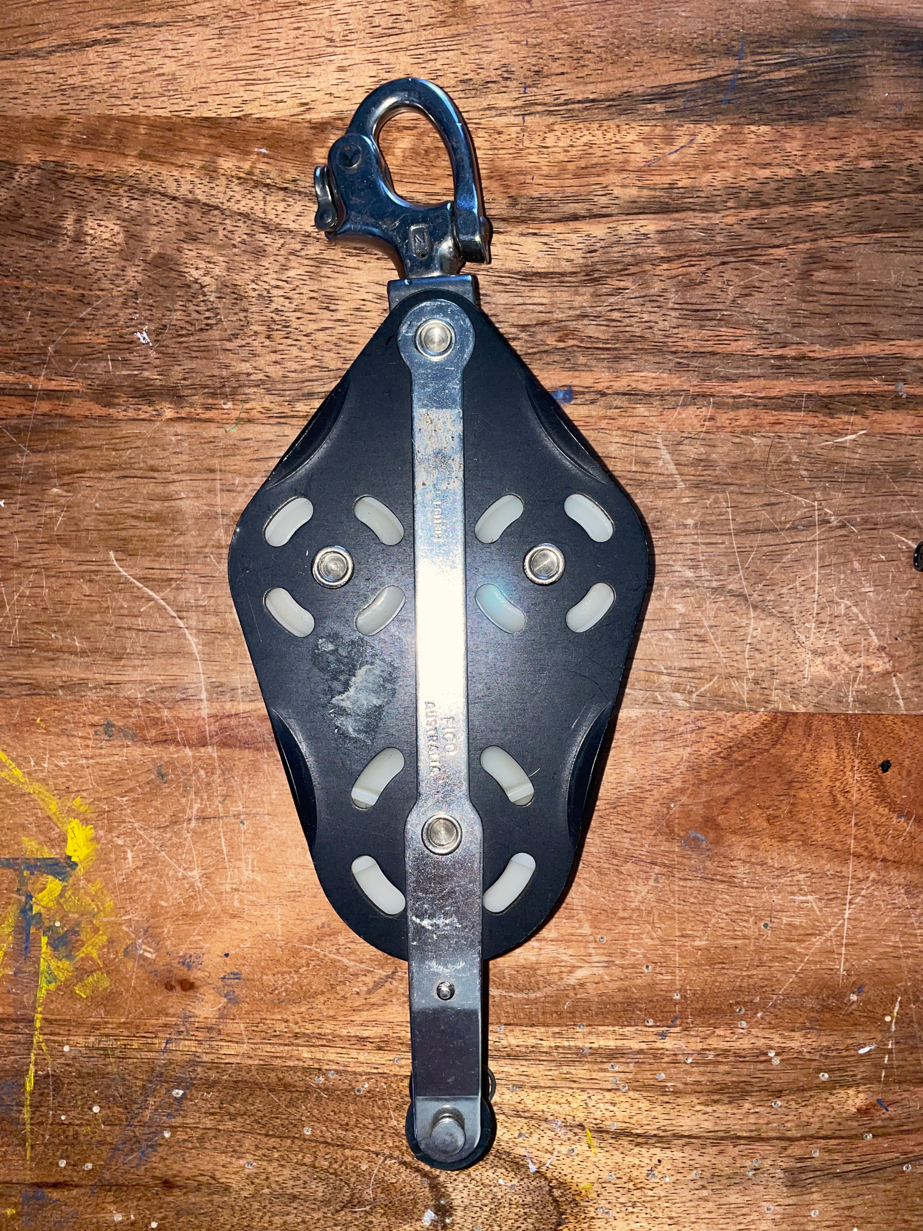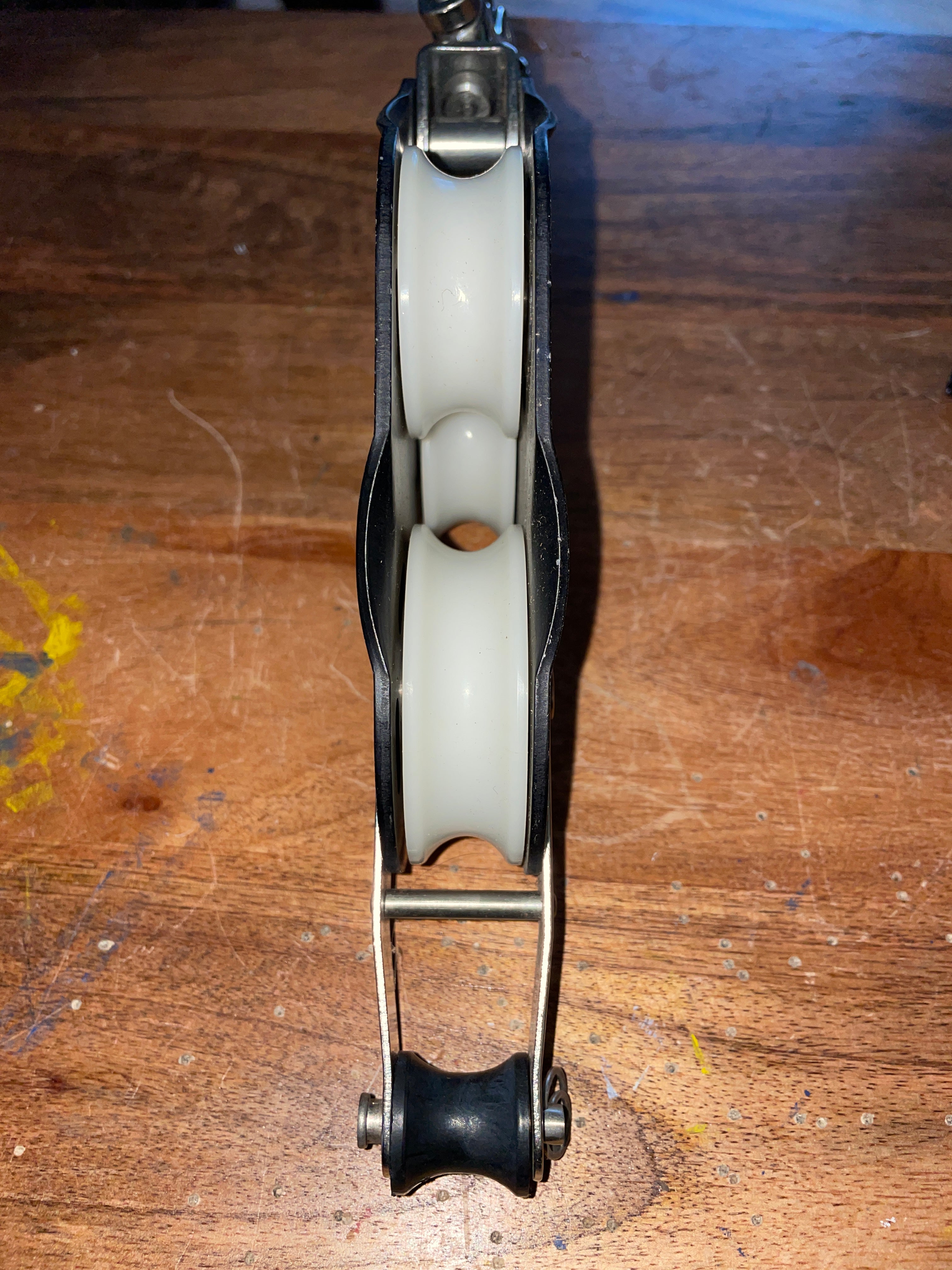 This fico triple block is in like new condition, it looks to have been barely used. The sheaves for this block are 1 3/4” and 2 1/4” and can fit MAX 1/2” line diameter. Has a stainless steel Nicro marine shackle attached to the top that works as it should. There is a Beckett at the bottom with a large plastic sheave. This block measures 10 3/4” total length.