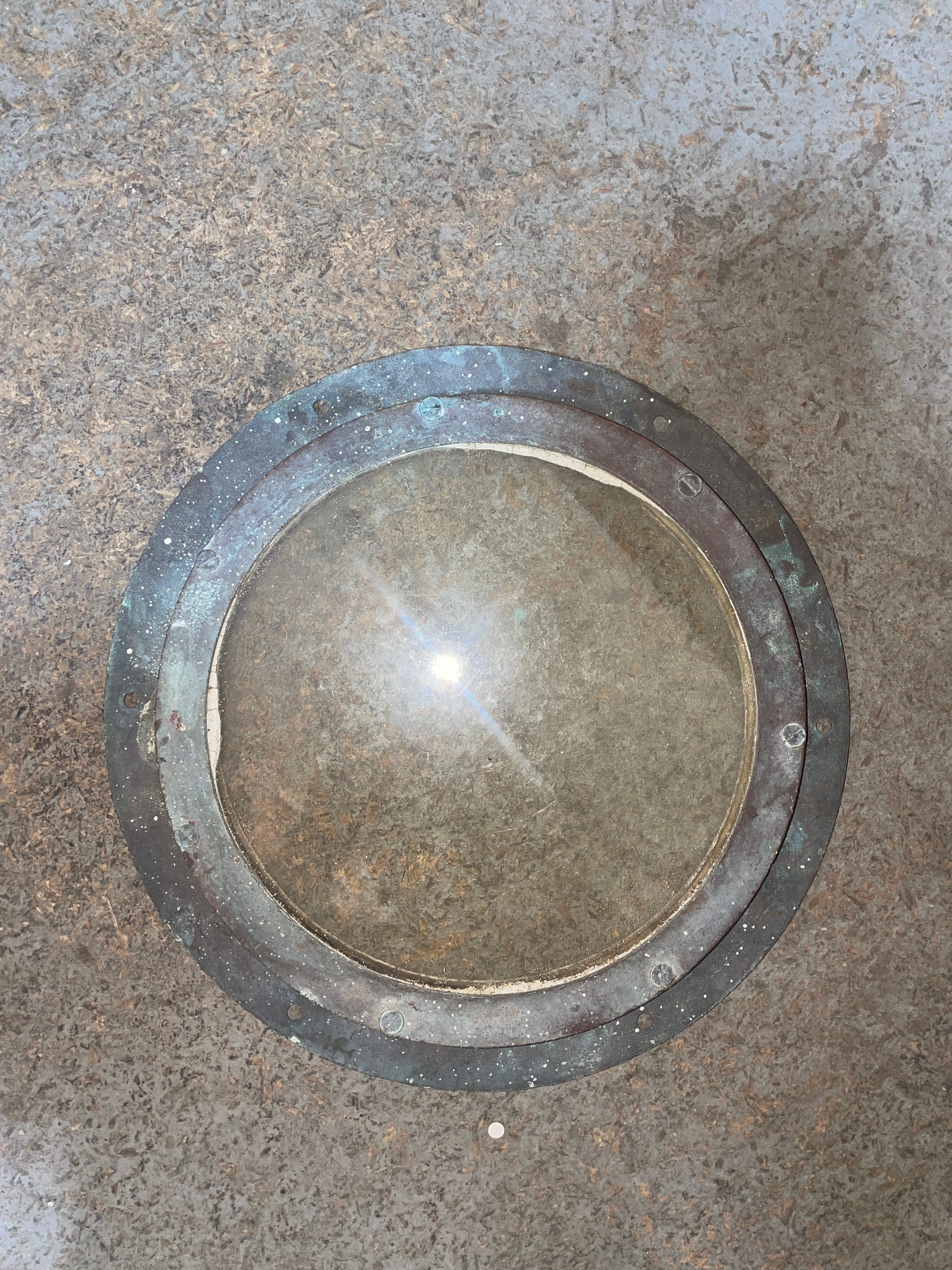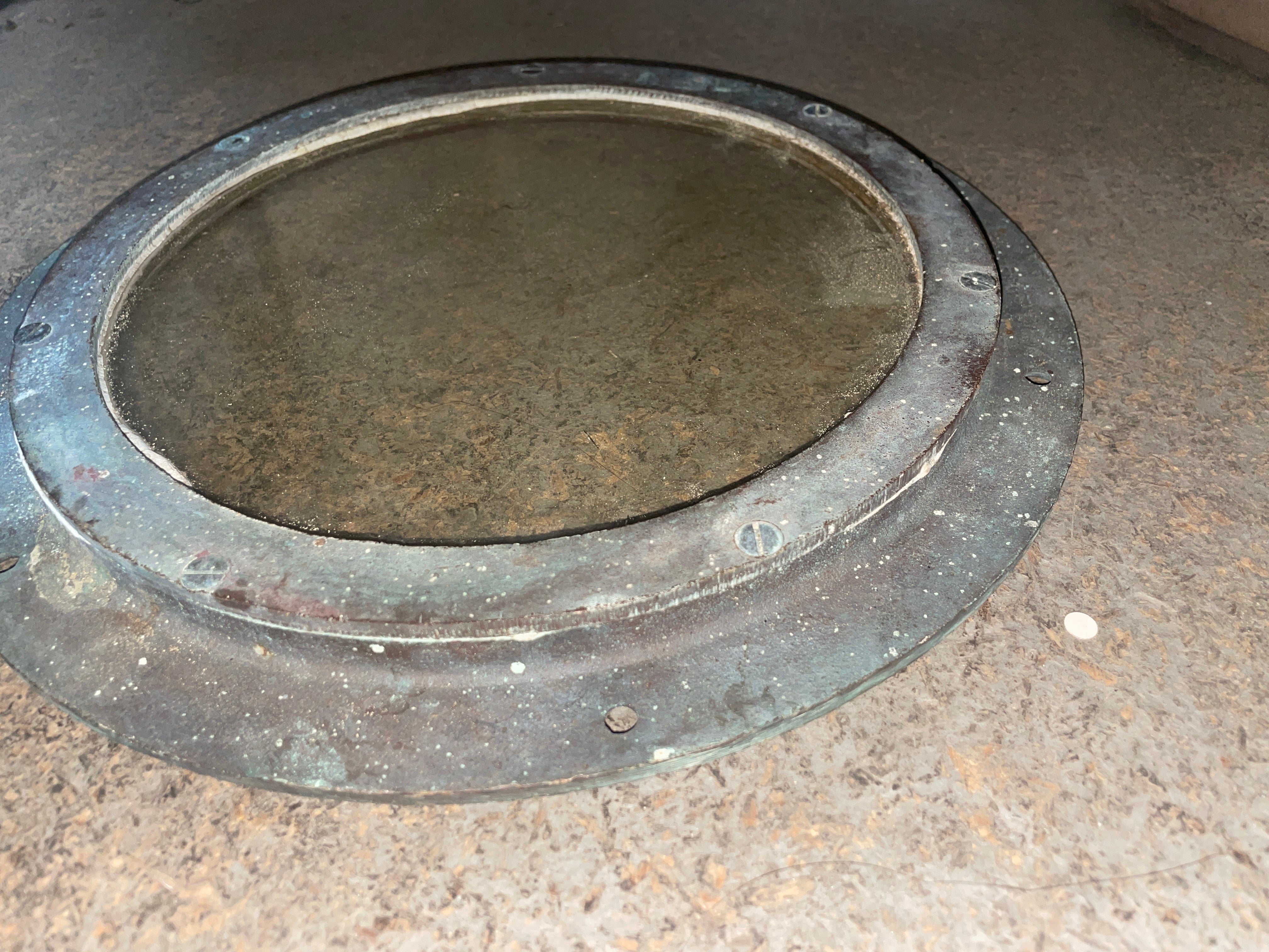 This fixed bronze port light is in great condition. It is real glass. No imperfections. The inside diameter of the port is 9 3/8". The overall diameter of the port is 11 1/8" diameter.