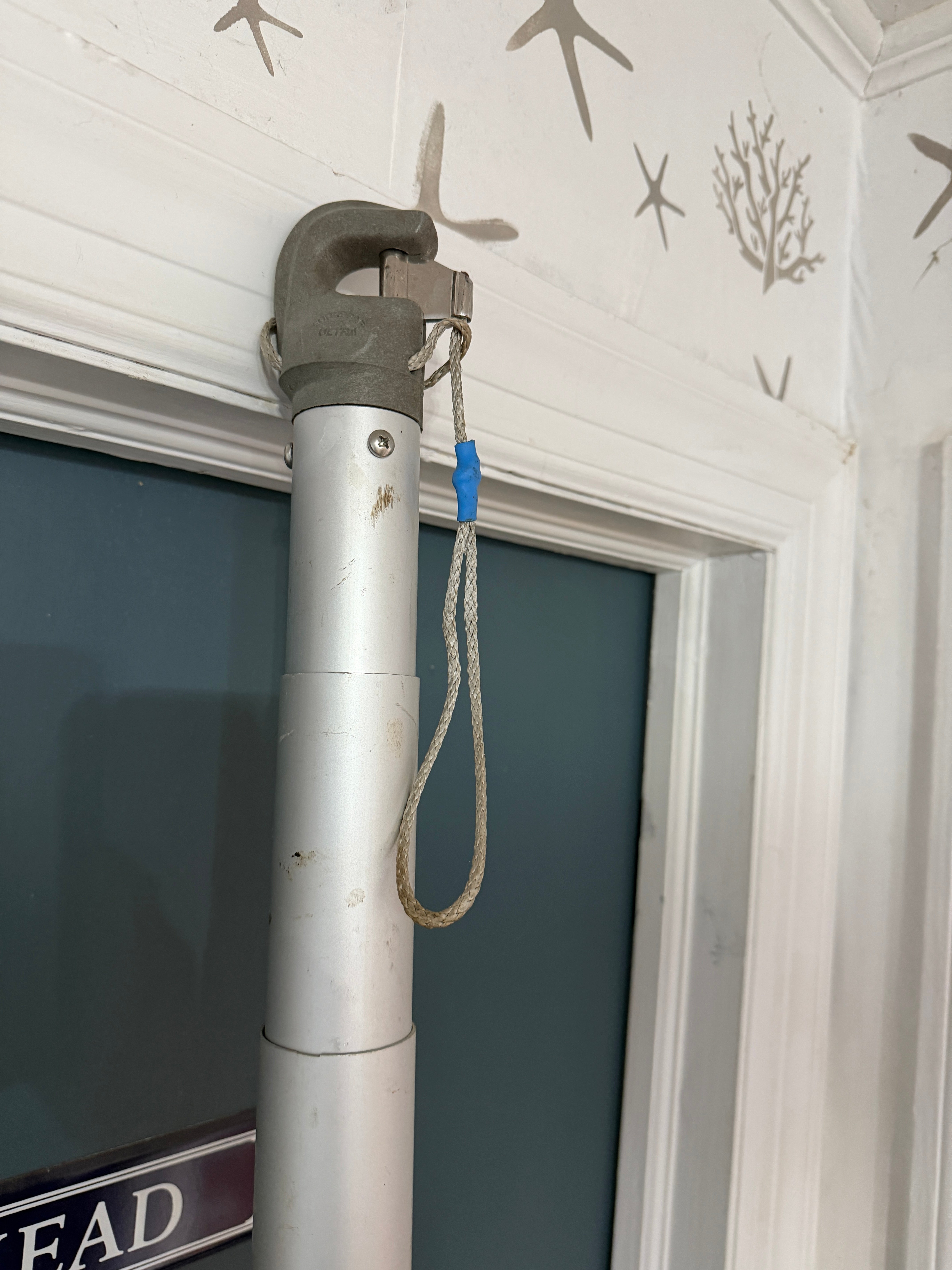 Like new condition. Works as it should. 2" diameter pole. smallest length 7' and when fully extended it is 15'. Model 407101. Forespar says max boat length it works for is 25'.