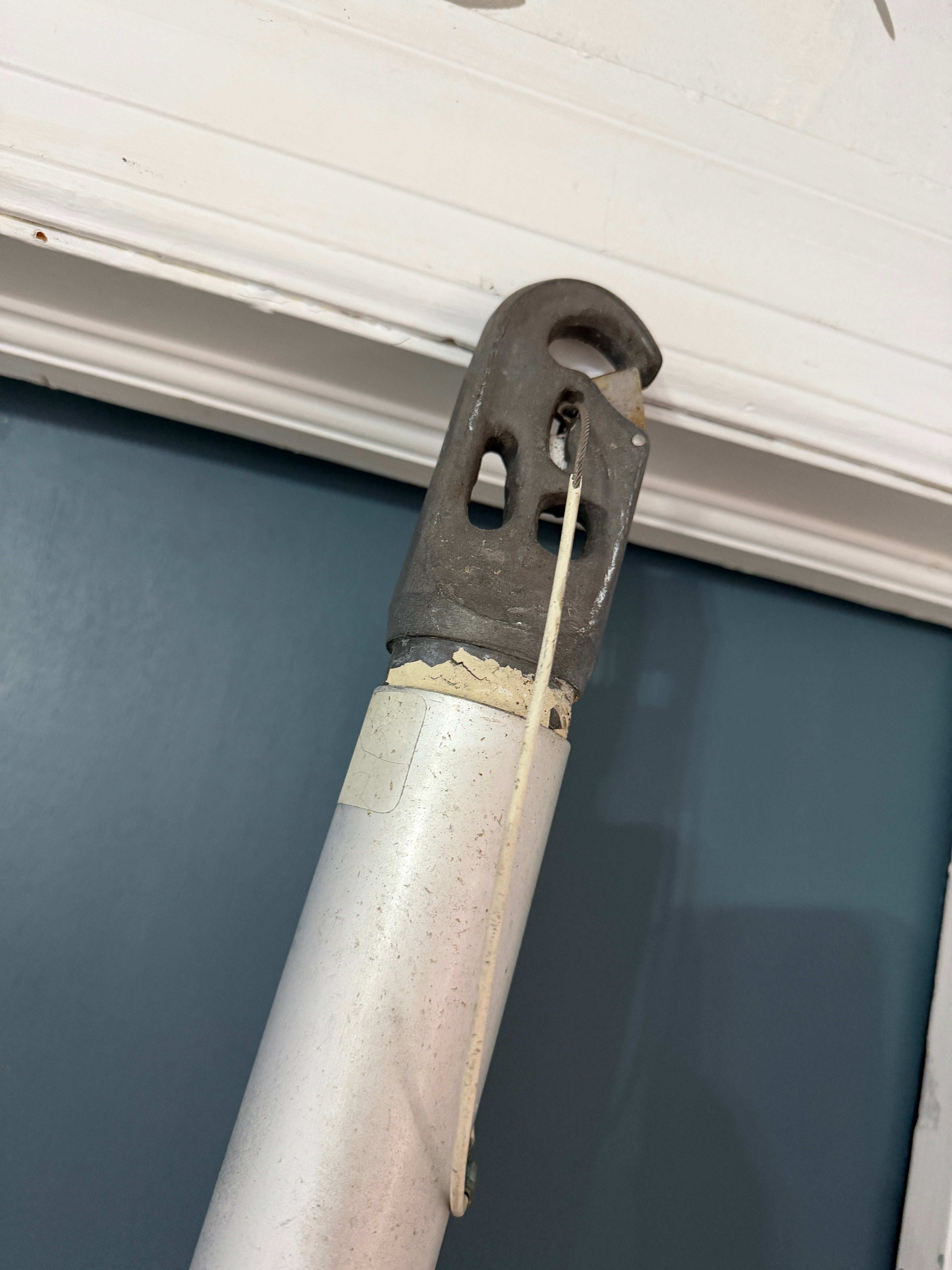 Good condition - it is 6'9" when not extended and 11'6" fully extended. It is 2" diameter. The one end is popping out however it is an easy fix. One end is the pull and the other is a sheaved.