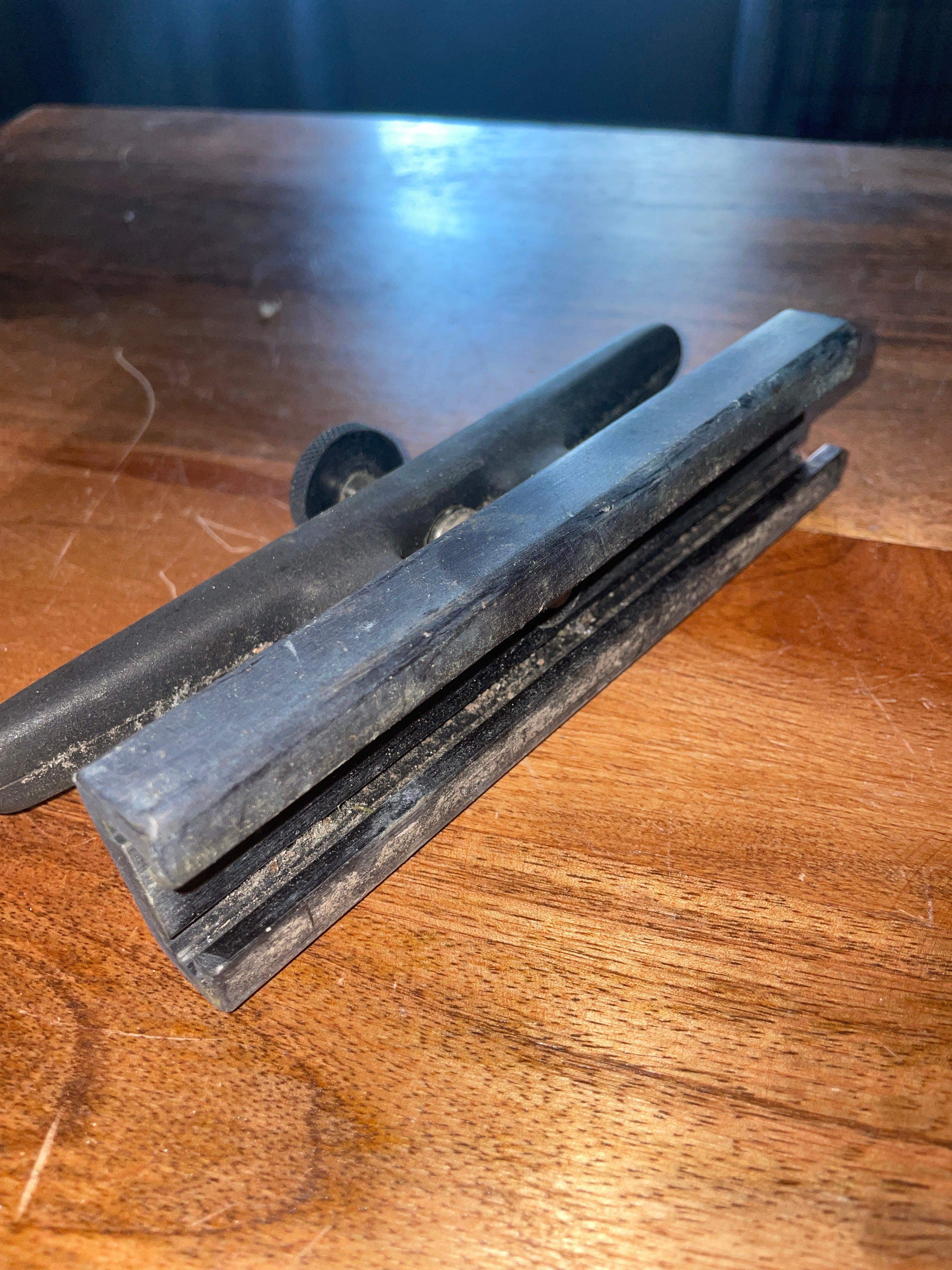 This forespar plastic 6 1/2” cleat sits on a light metal track car that fits for 1” track. It is a screw top style to move it along the track. It does look like the track car had slides at one point so not sure if that will mess up the track fitting.