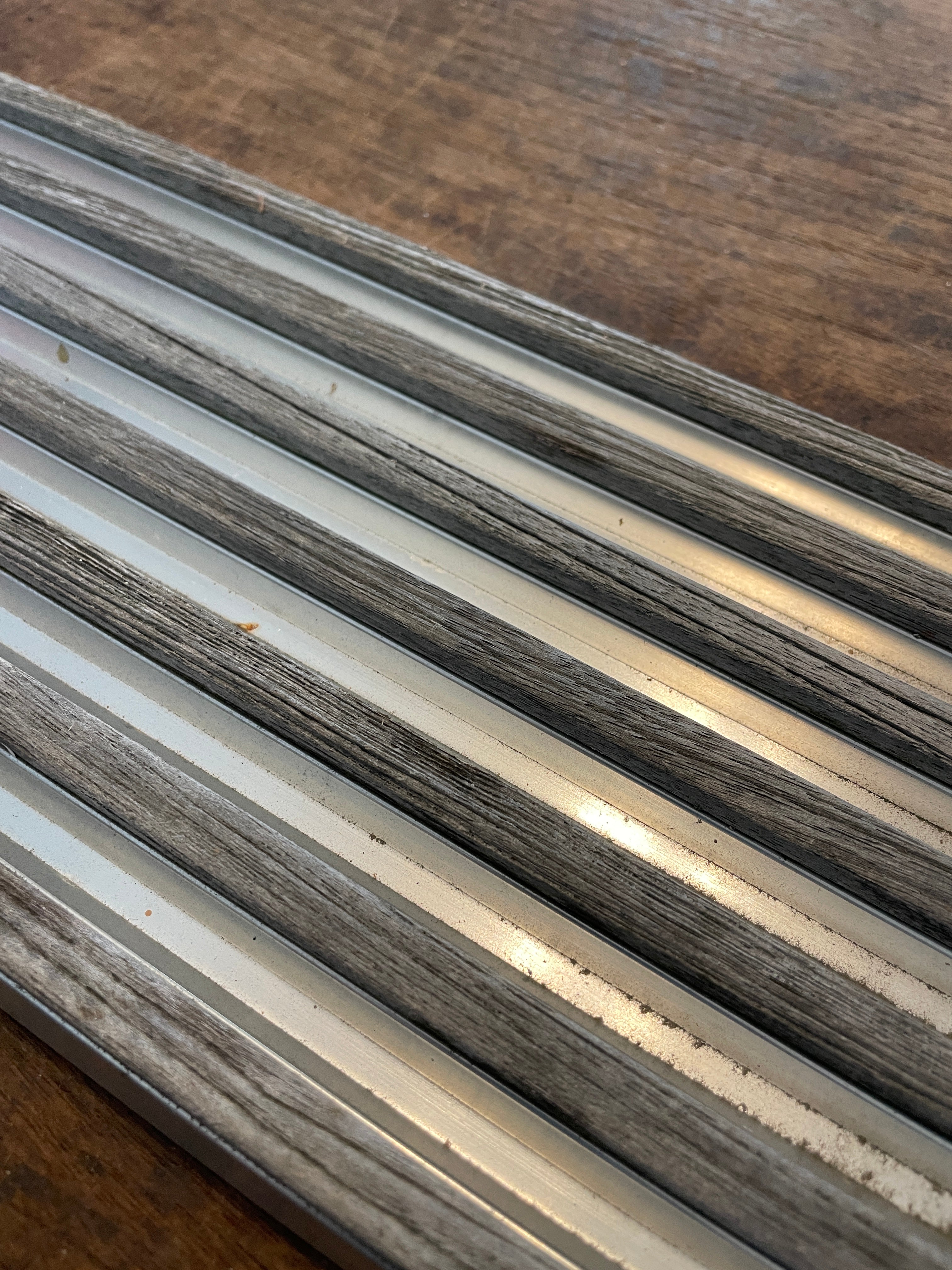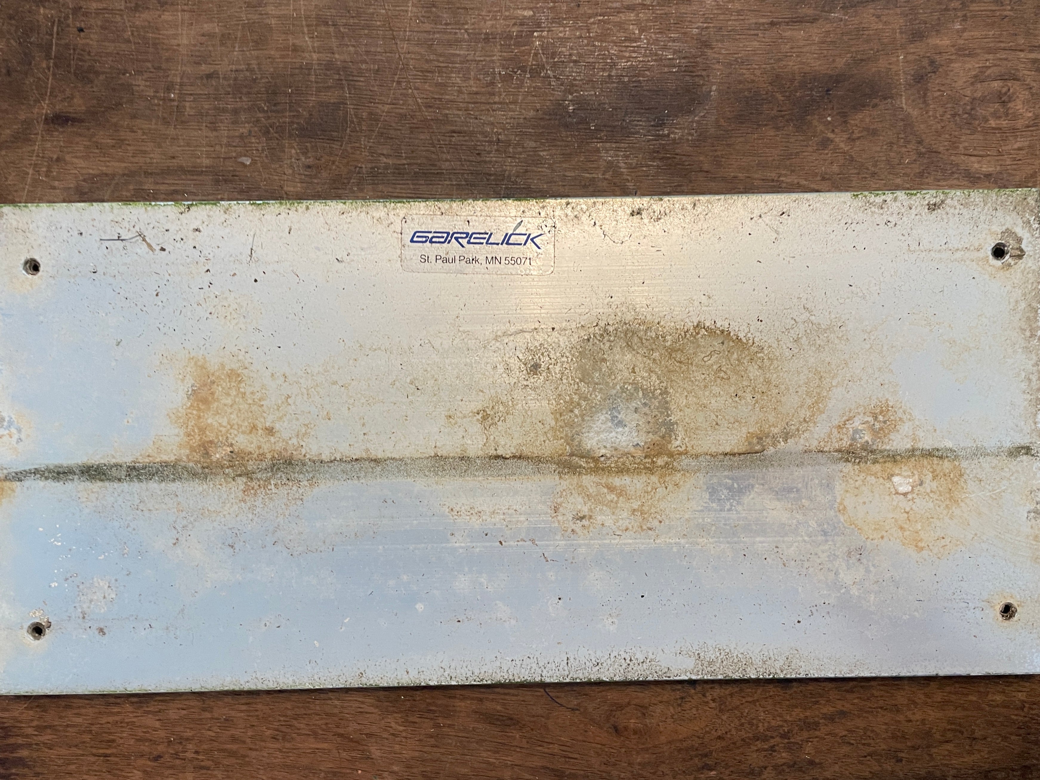 This garelick folding step is in great condition. The hardware has been removed from the step so it will require new screws. The step is made from teak and aluminum. The teak parts are overall good condition, very few with cracks or dents. The step measures 12” long x 5 1/2” wide.