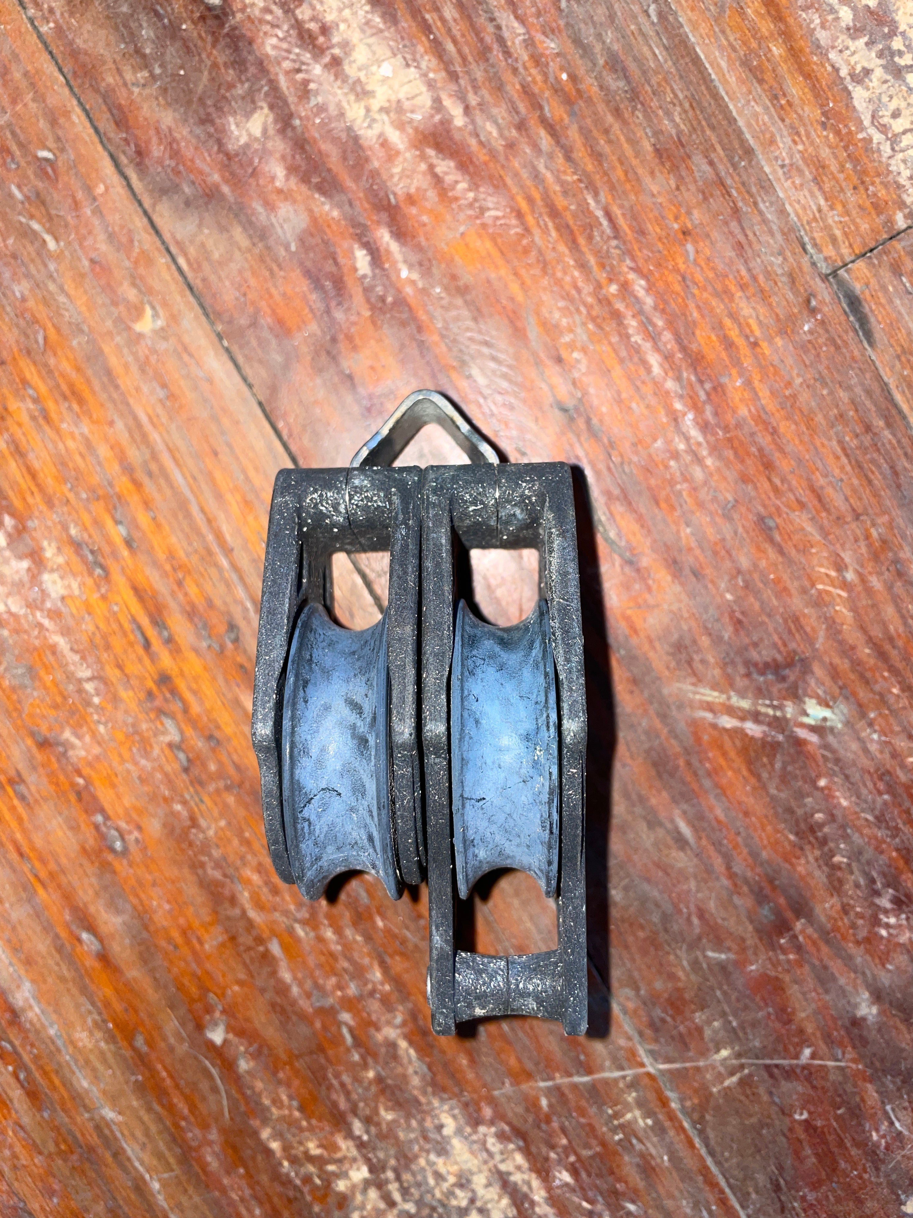 This harken 40C double block is in great condition. The sheave is 1 5/8” and can fit up to 3/8” line diameter. Becket is in good condition. Total length of the block is 3 3/8” long.