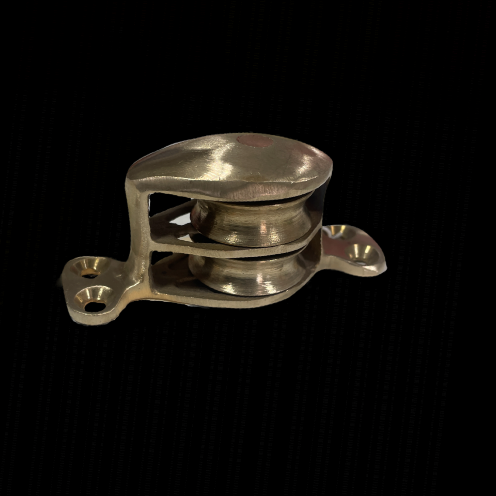 HM0095 Double Cheek Block. 3" long x 1 1/2" wide and stands 1 1/2" tall. Fits max 5/16" line diameter.