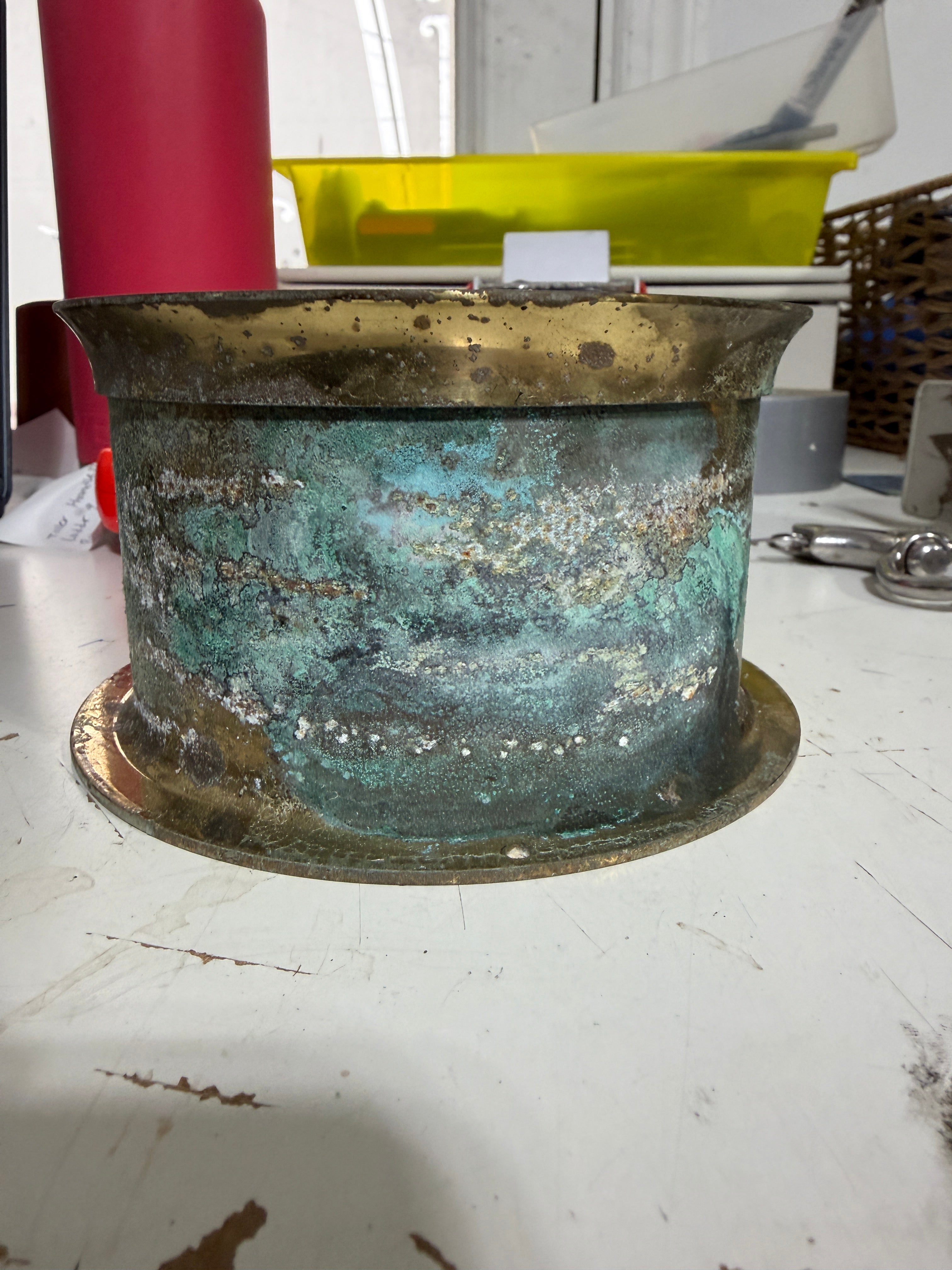 Howard Miller Brass Tide Clock 5 1/2" diameter. Has some pitting to the surface and the sides. Glass is good condition. Made in Taiwan. It is a battery but it is corroded. So not sure if it works. Selling as is.
