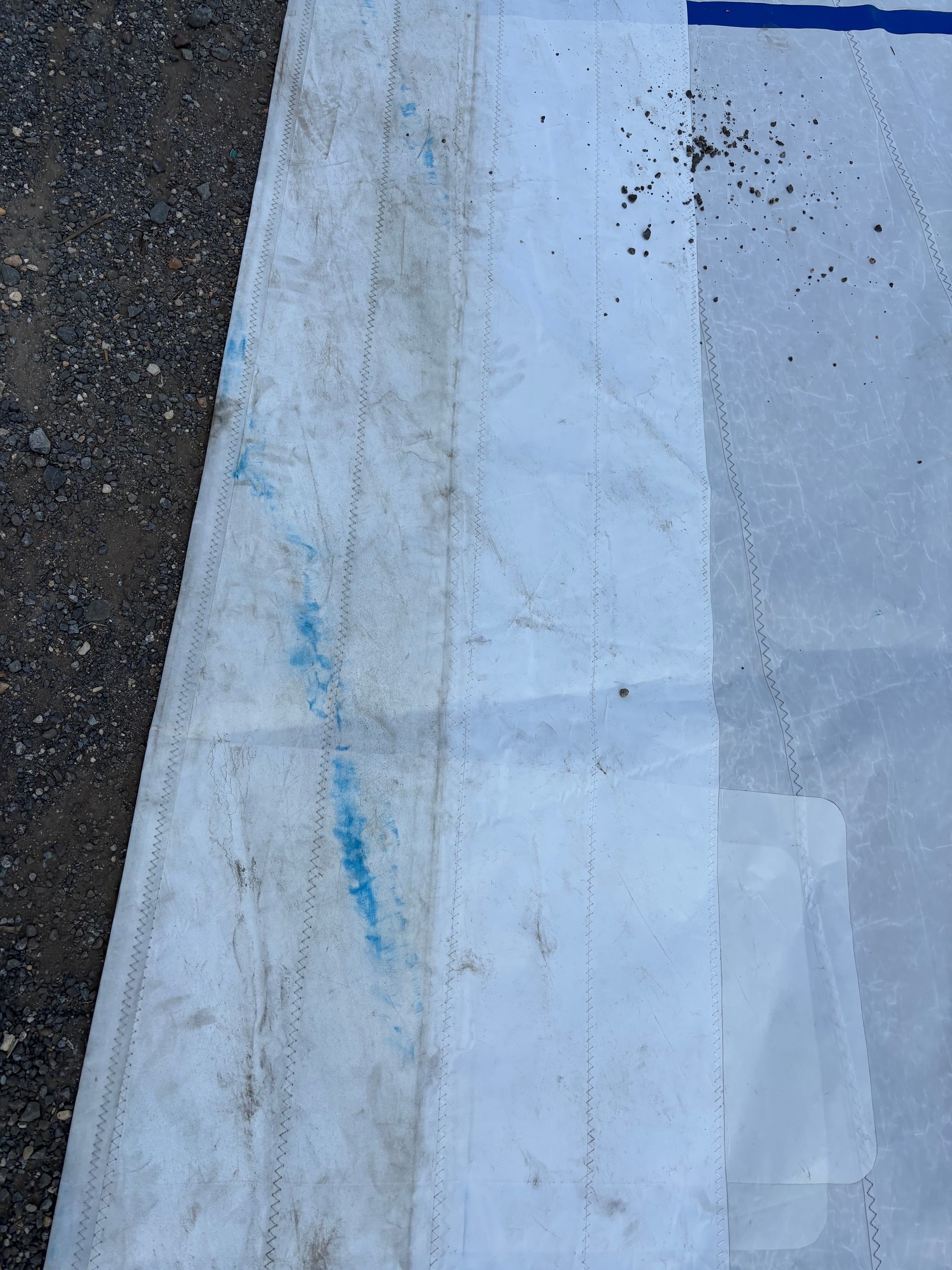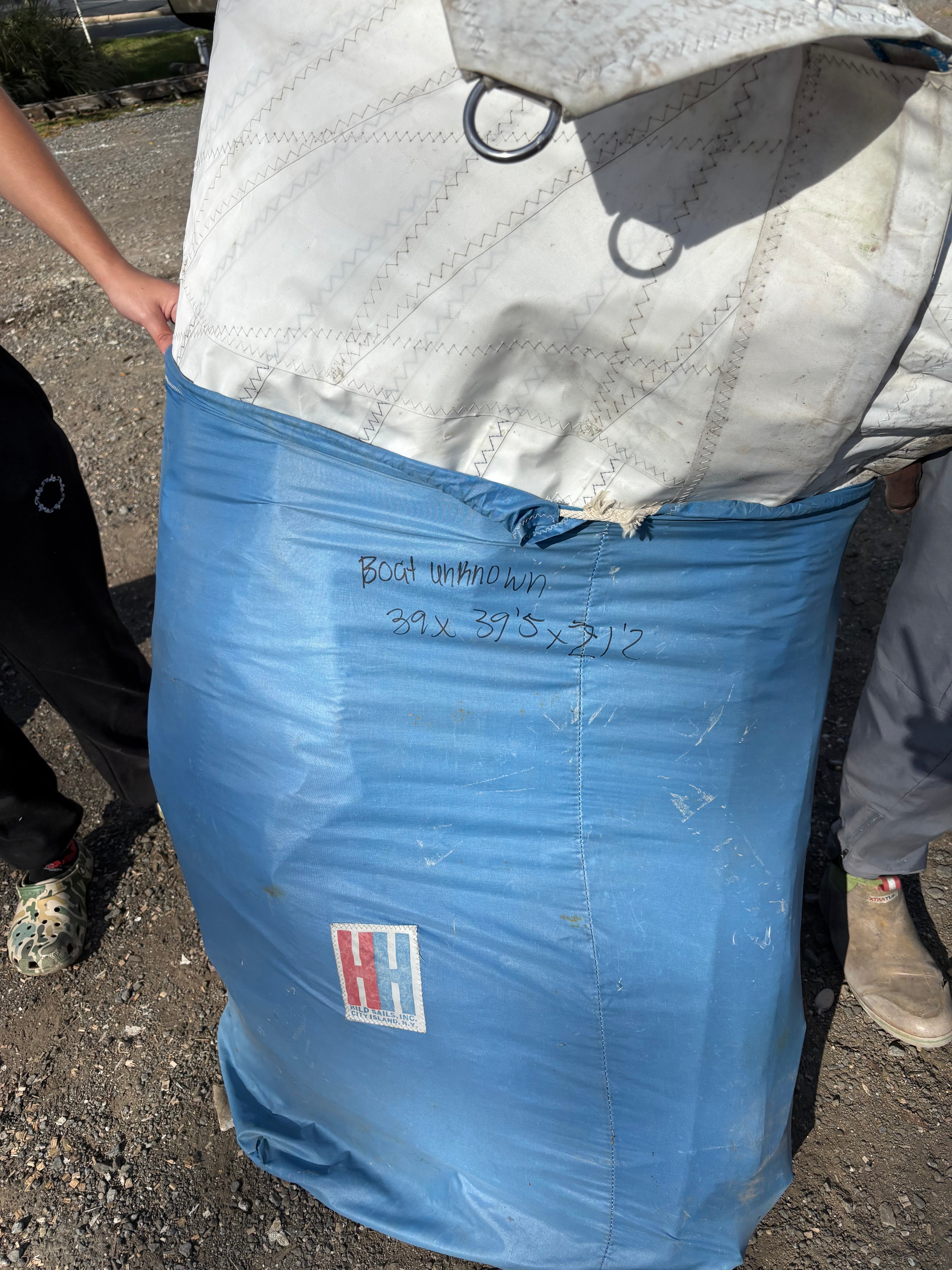 This is a jib sail I believe - might be a main. Unknown what boat it was removed from. It is a northern sails sail. The sail measures 39'5" x 39' x 21'2". Will come with the bag. It is regular sail material on the edges but the middle is the performance material. Its overall in good condition- no rips, tears or holes but is incredibly dirty.