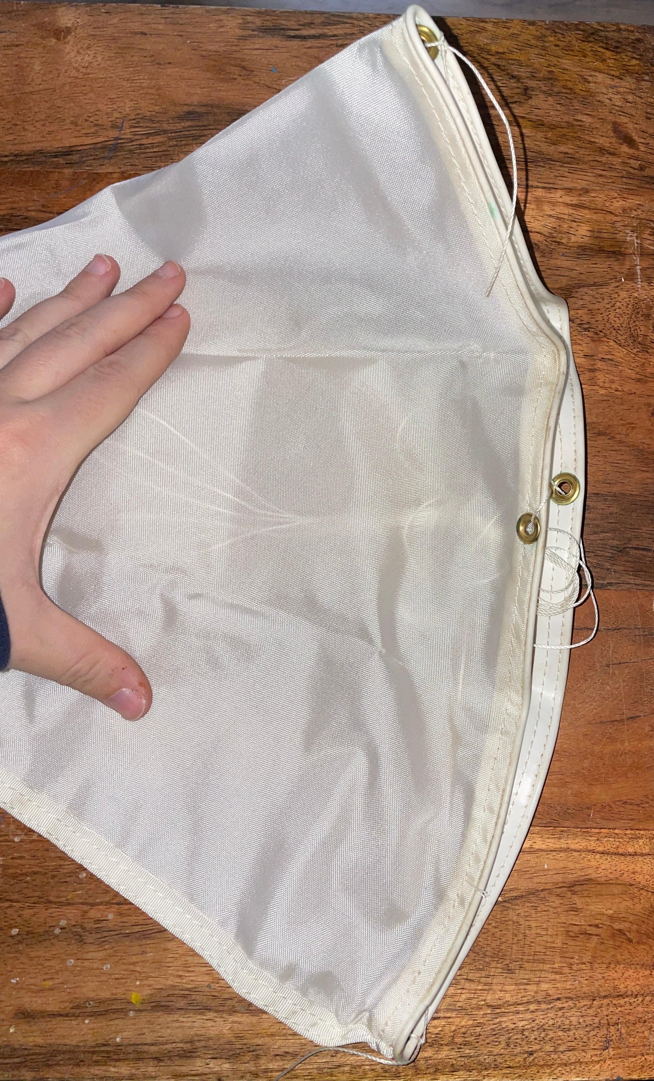 Like new condition. Jim Buoy day mark signaler. Cone shaped. White sail material. 14 1/2” long x 11” diameter. Comes with little case to store it.
