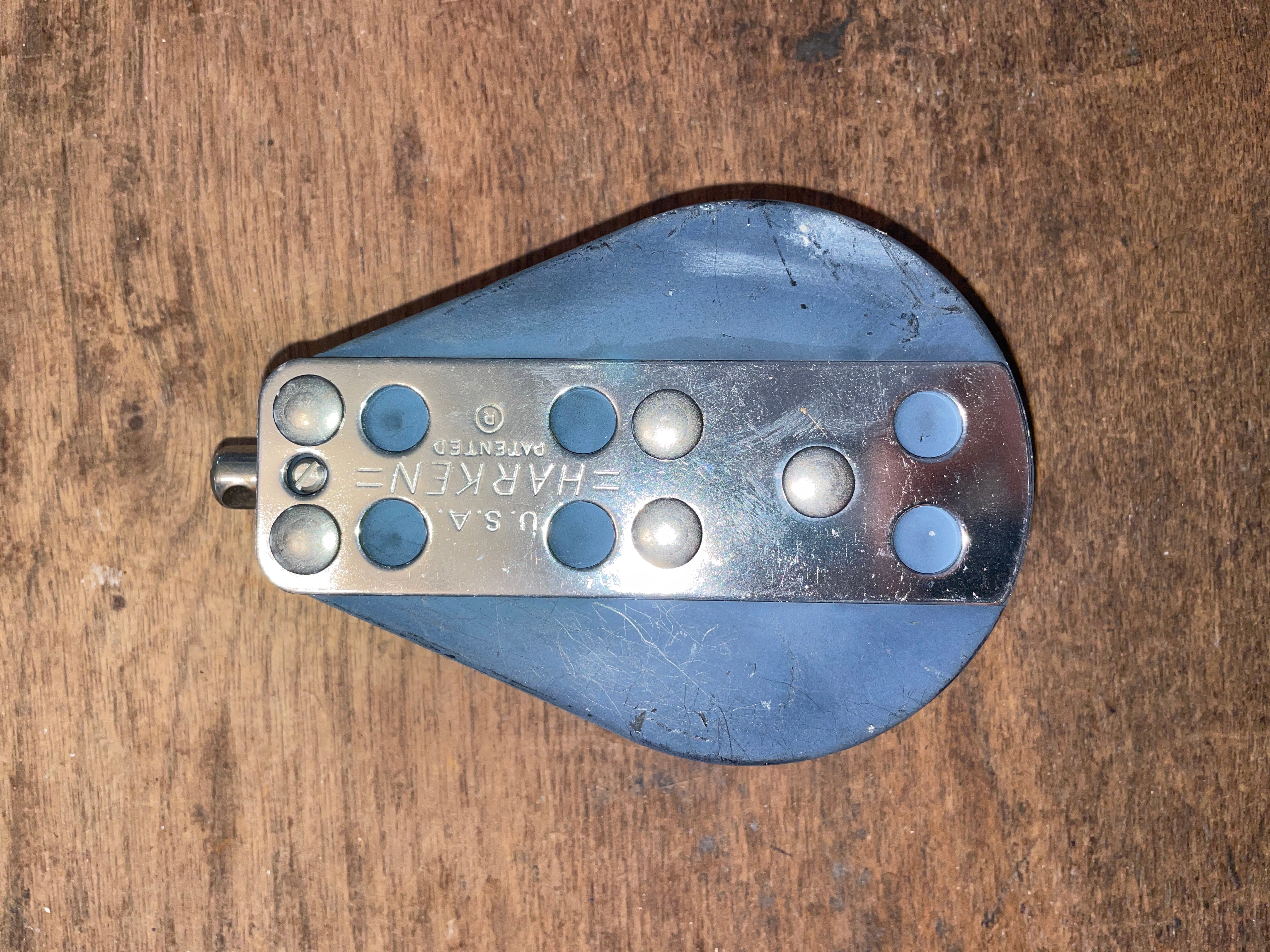This large harken single swivel block is in great condition. The sheave is 3” and it can fit up to 9/16” line diameter. The block is 4 1/2” long.
