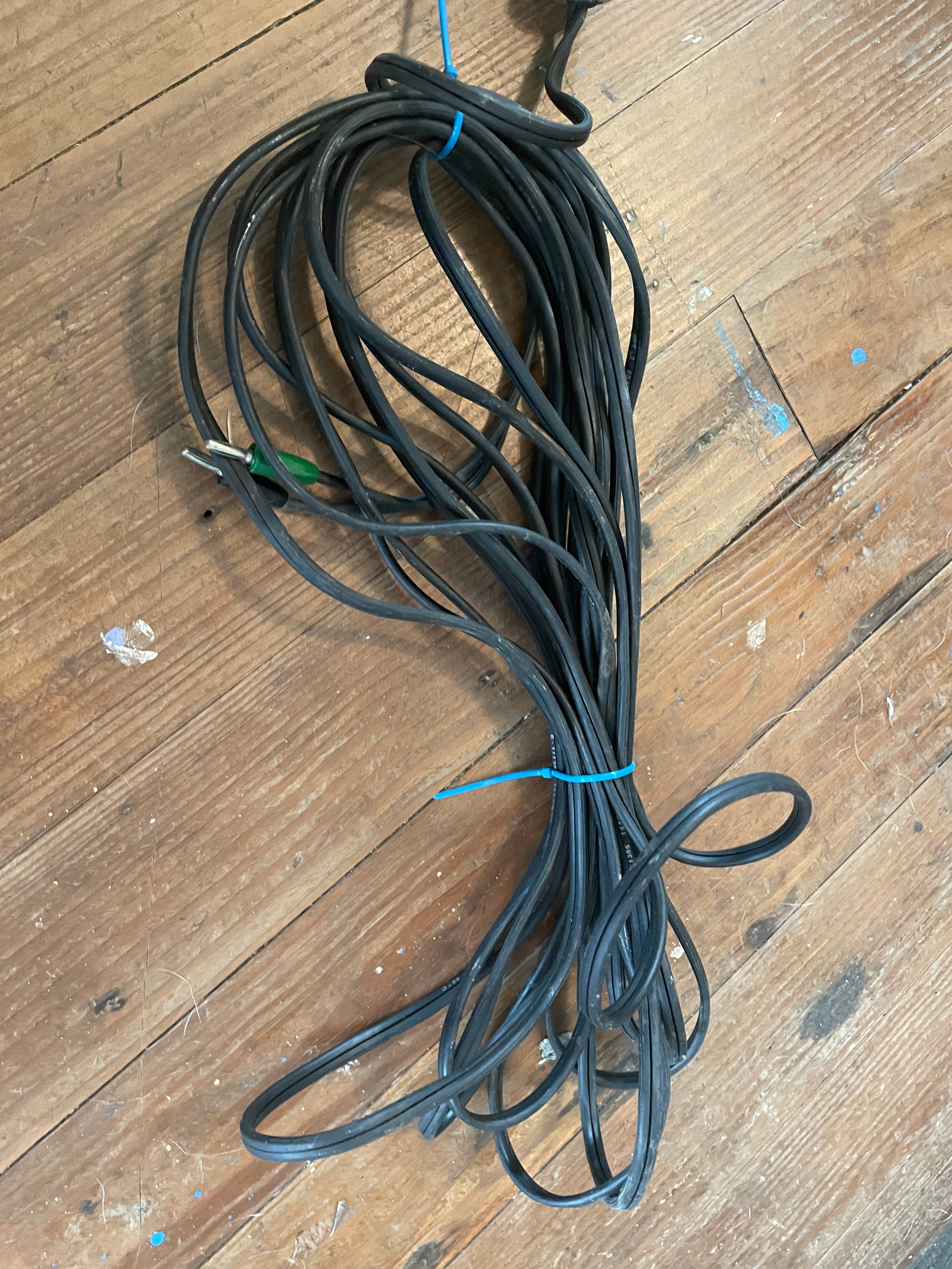 This large stainless steel spotlight has been tested and it works great! The lens is 6” diameter. Handle is 8 1/2” long. Overall length is 15”. Handle on the back for easy holding and lots of wiring for reinstall.