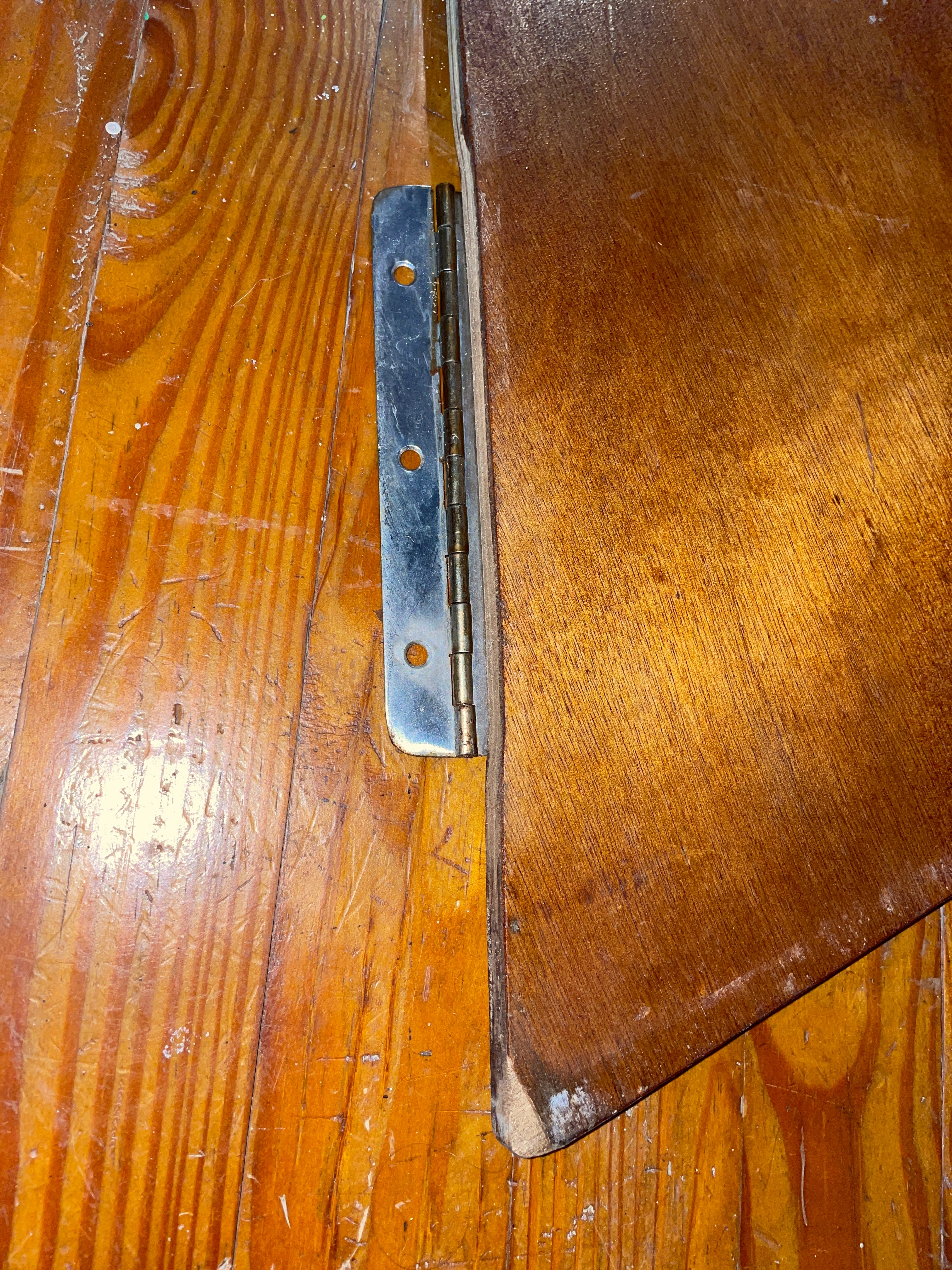 This large triangular door was removed off a Sabre 42 sailboat. There is a port side and starboard side available, they are NOT sold as a pair. The base measures 22 7/8” long and the top measures 9 1/4” long. The straight side is 33 1/2” long and the slanted side is 36” long. The wood is 1/2” thick.