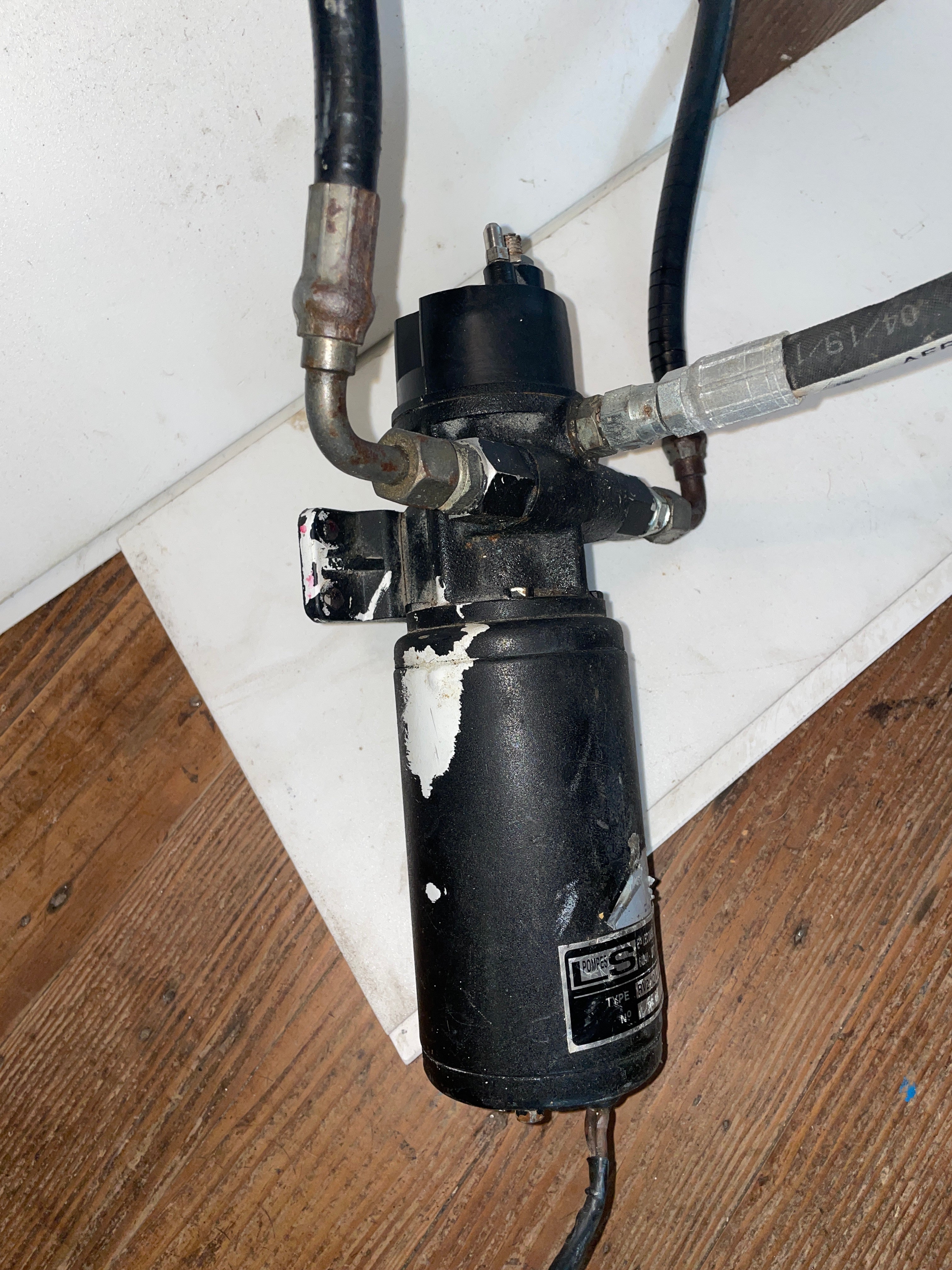 This hydraulic steering pump with lines is in excellent condition. Comes with everything shown. Type; RV2 with model # RV2 and is 12V. Lines say 4000psi.