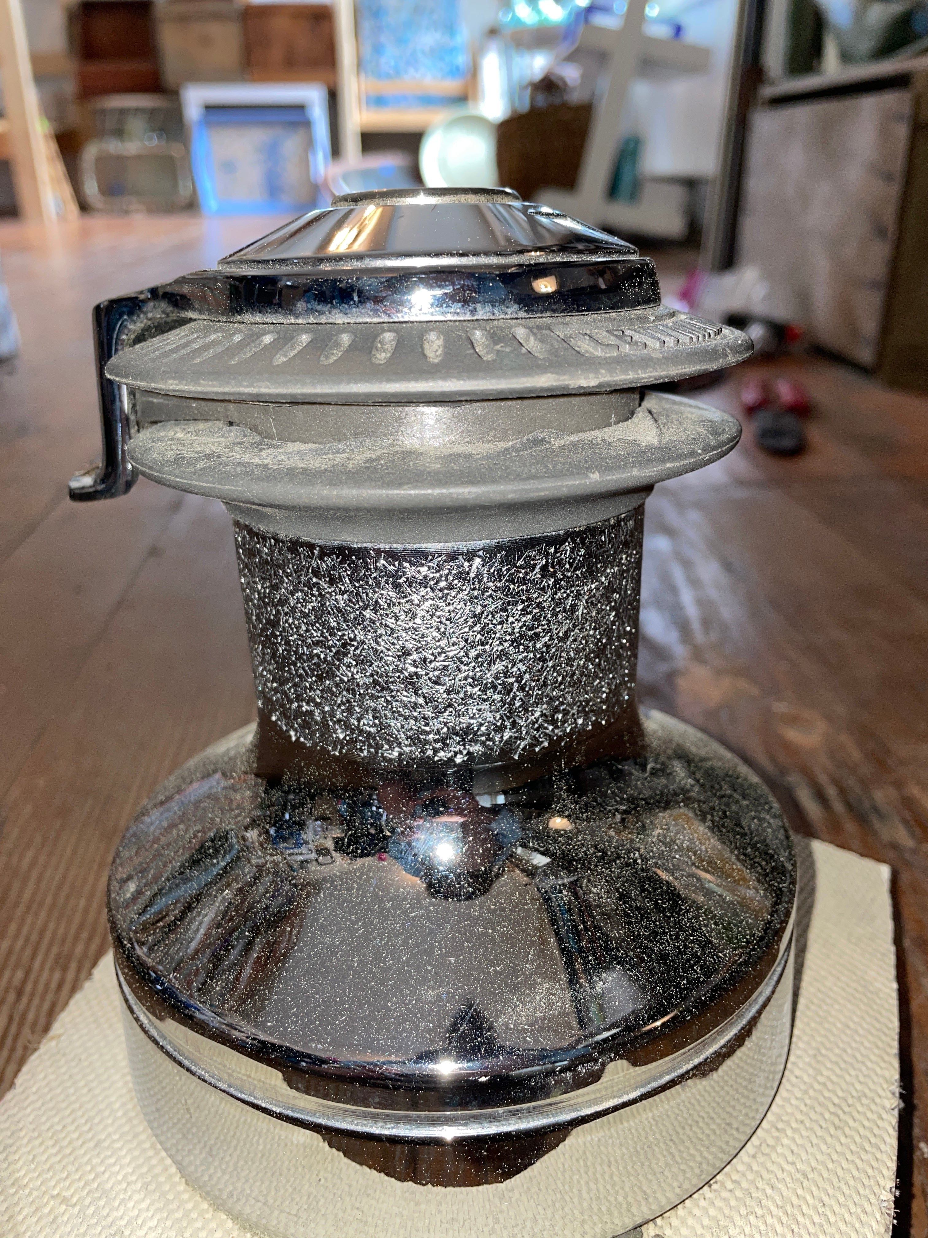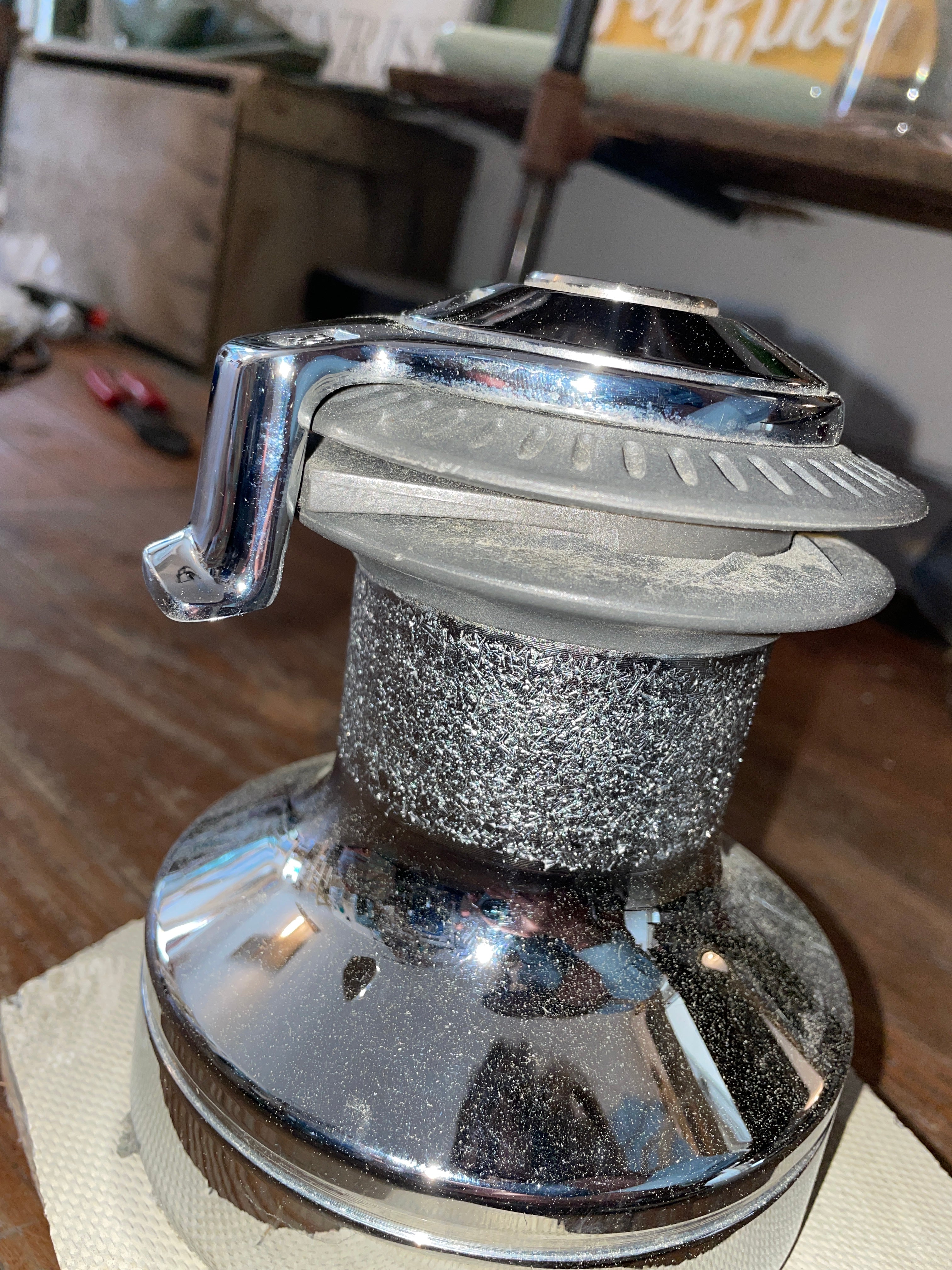 This Lewmar 30 Self Tailing Winch Is In Great Working Condition. Very Minor Scratches To The Chromed Outside. This Winch Stands 6 1/2” Tall With A Base Diameter Of 5 1/2”. 5 Screw Mounting 2 3/4” Apart. 1” Star Winch Handle Hole.
