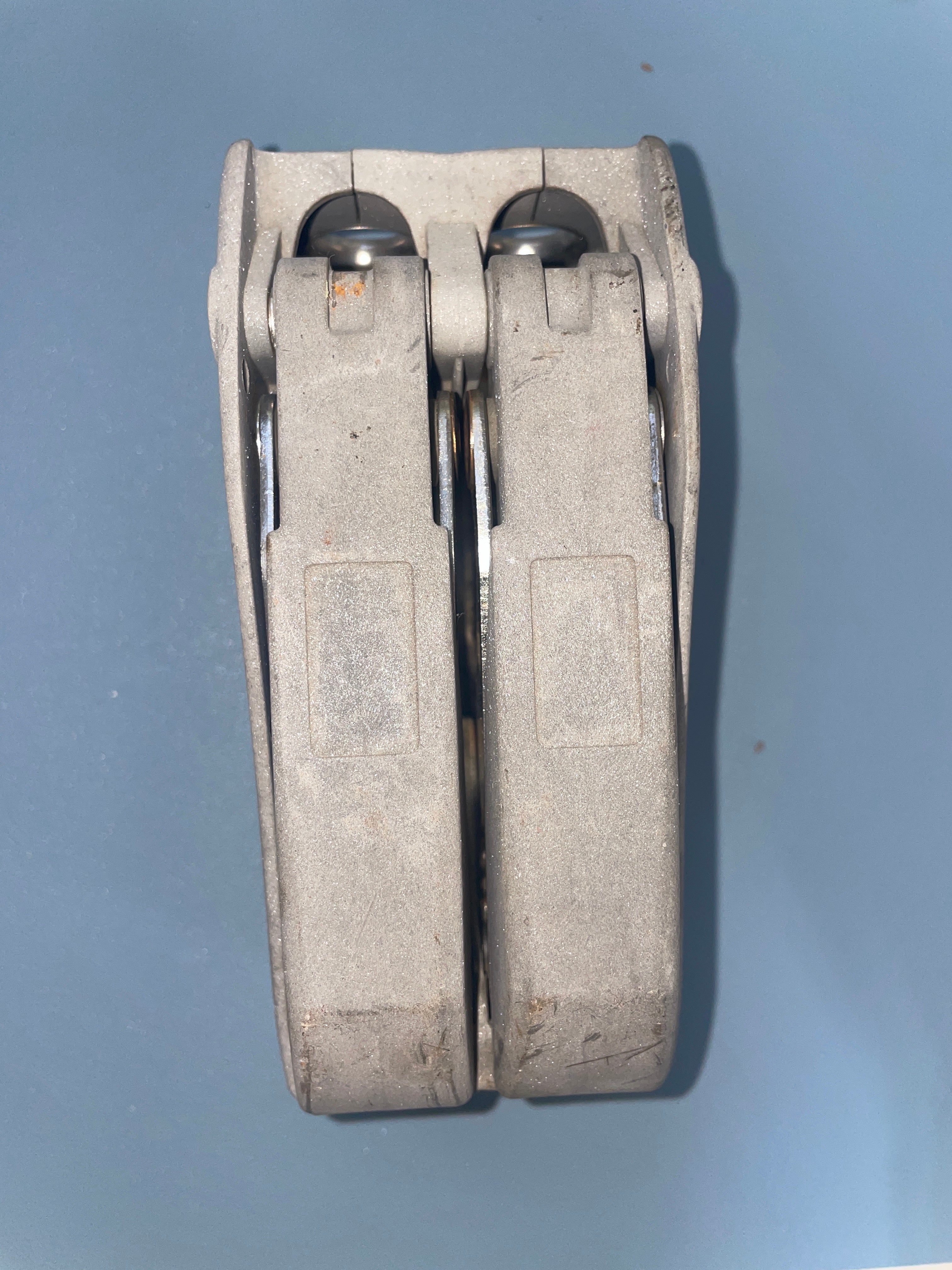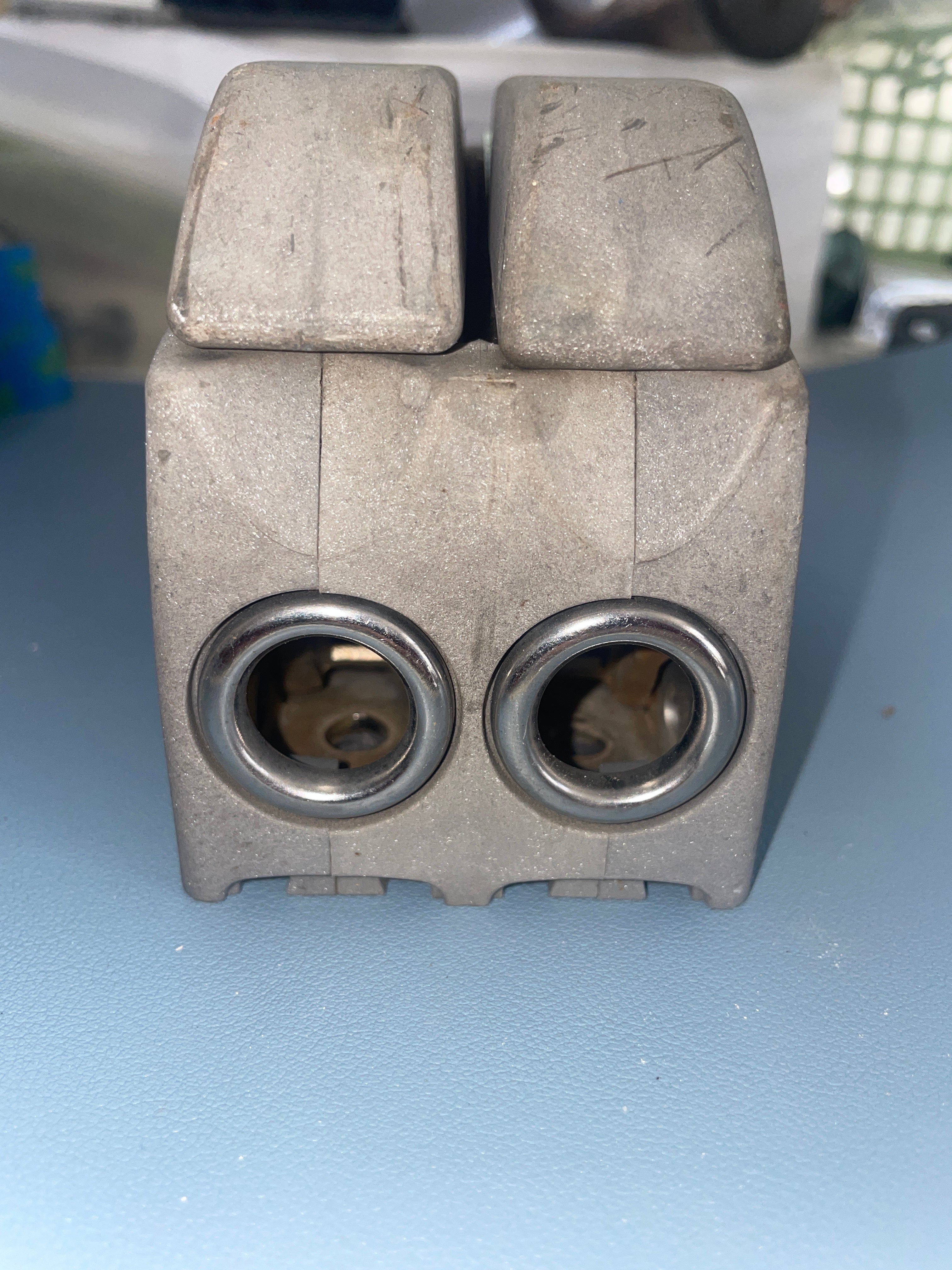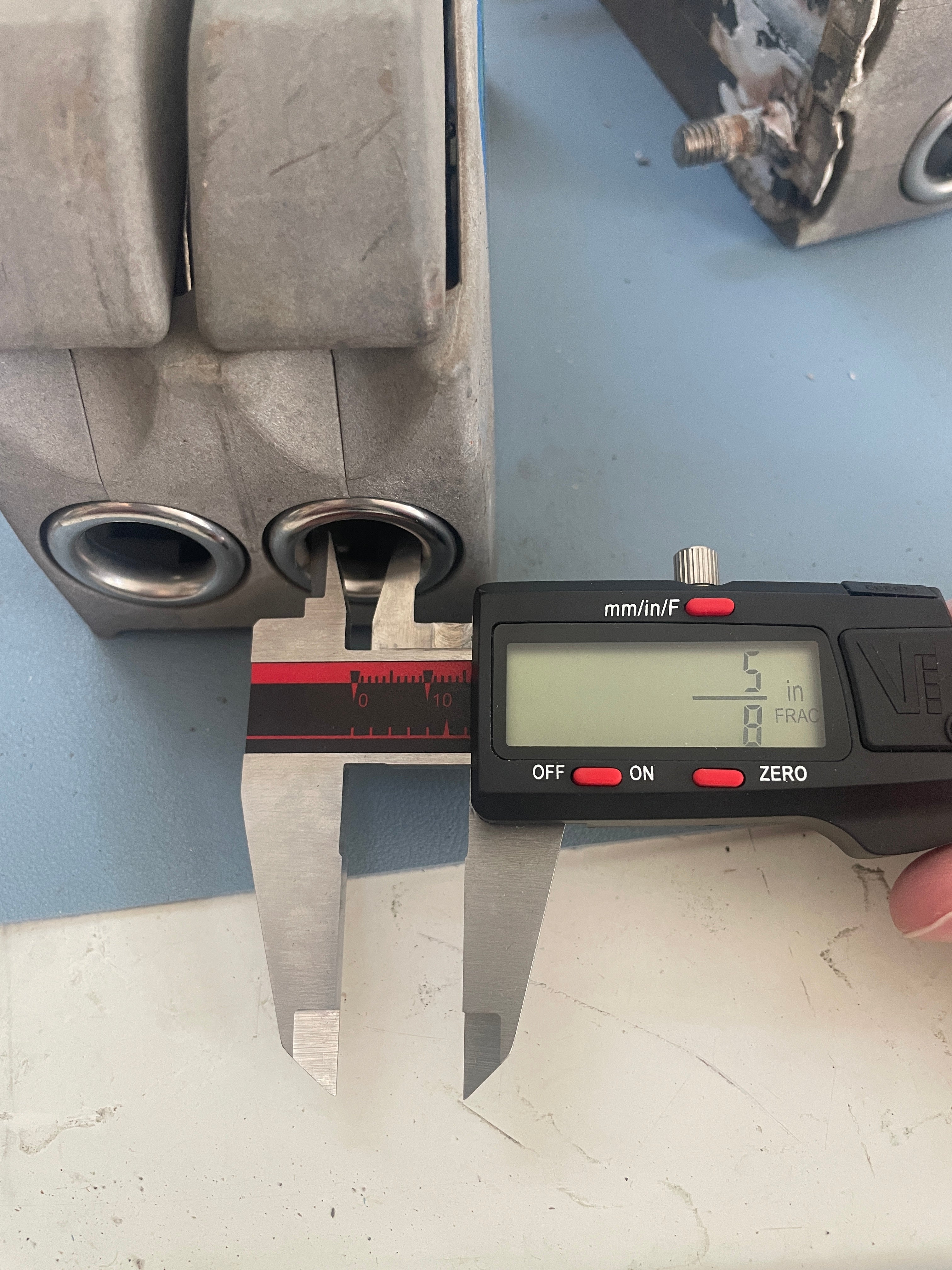 This lewmar double line clutch seems to be in good working condition. On the inside one is marked with a 10 and the other with a 12. I am assuming that is the mm of line width they can fit. They measure 6" long x 2 3/4" wide x 3 1/2" tall. The inside of the hole does measure 5/8" for each of them though.