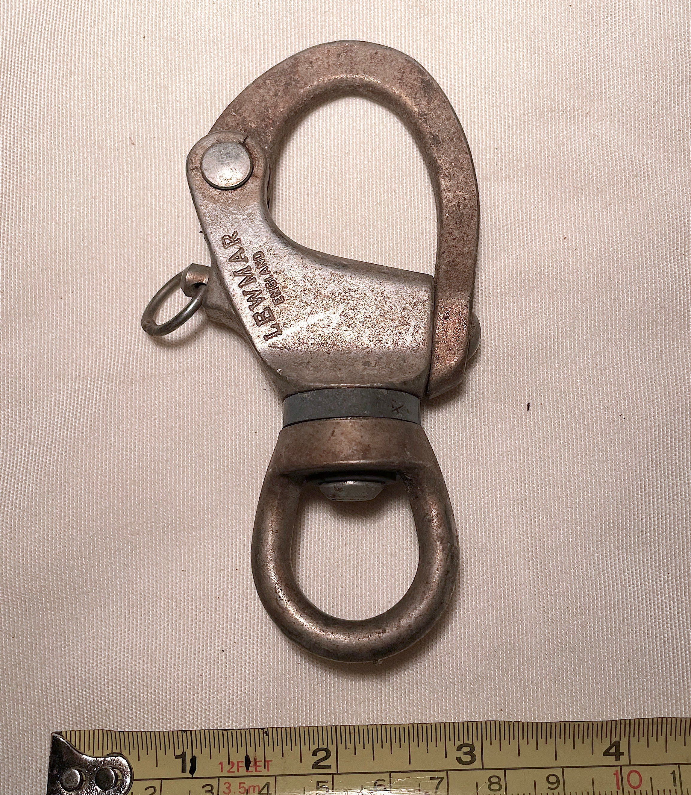 This lewmar SS shackle is in great condition. The bail is 7/8” diameter. Shackle overall is 3 5/8” length. Works as should.