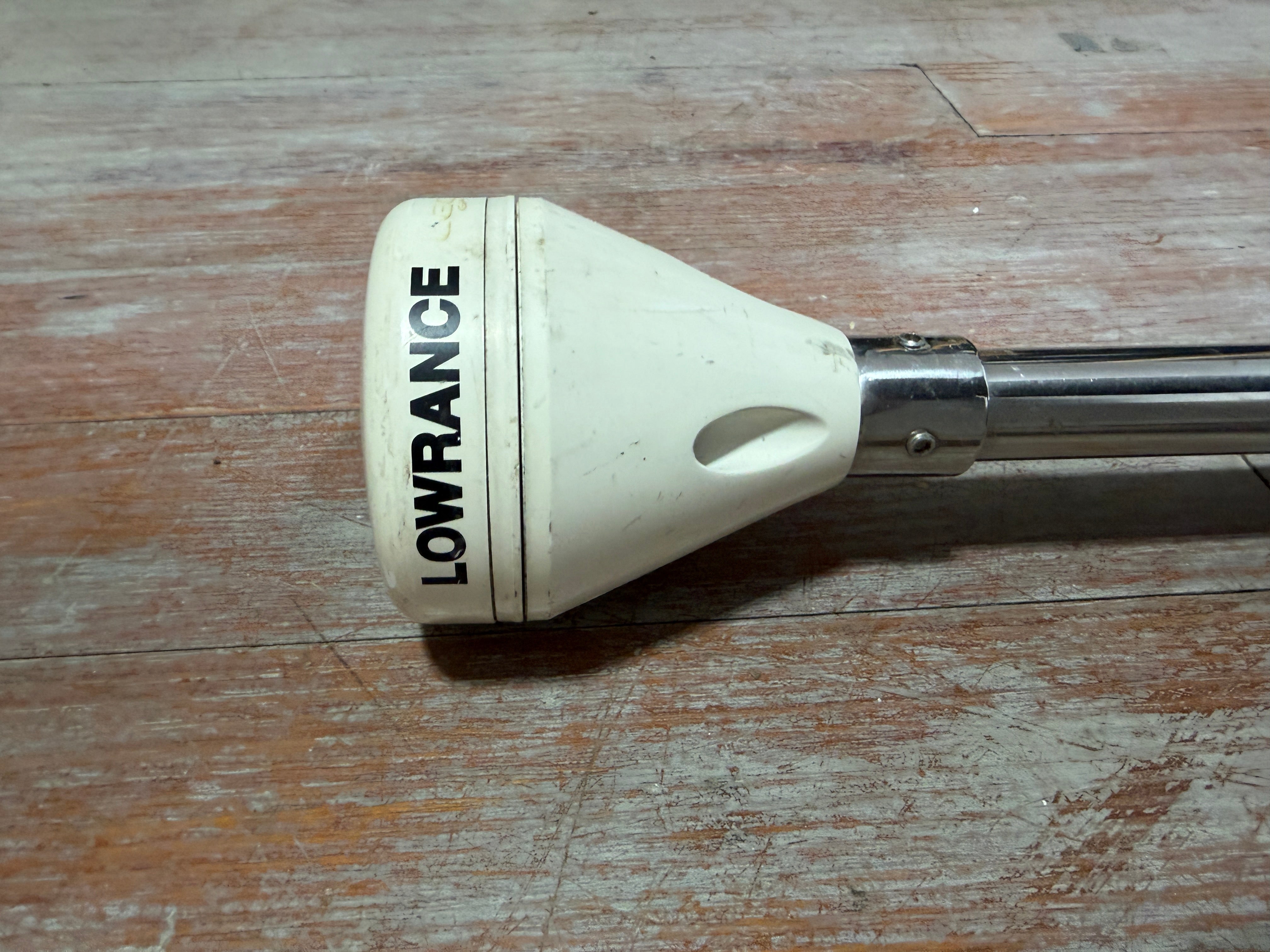 This lowrance LGC3000 GPS antenna looks to be in good condition. No wiring. The stainless steel pole makes it 28" total height.