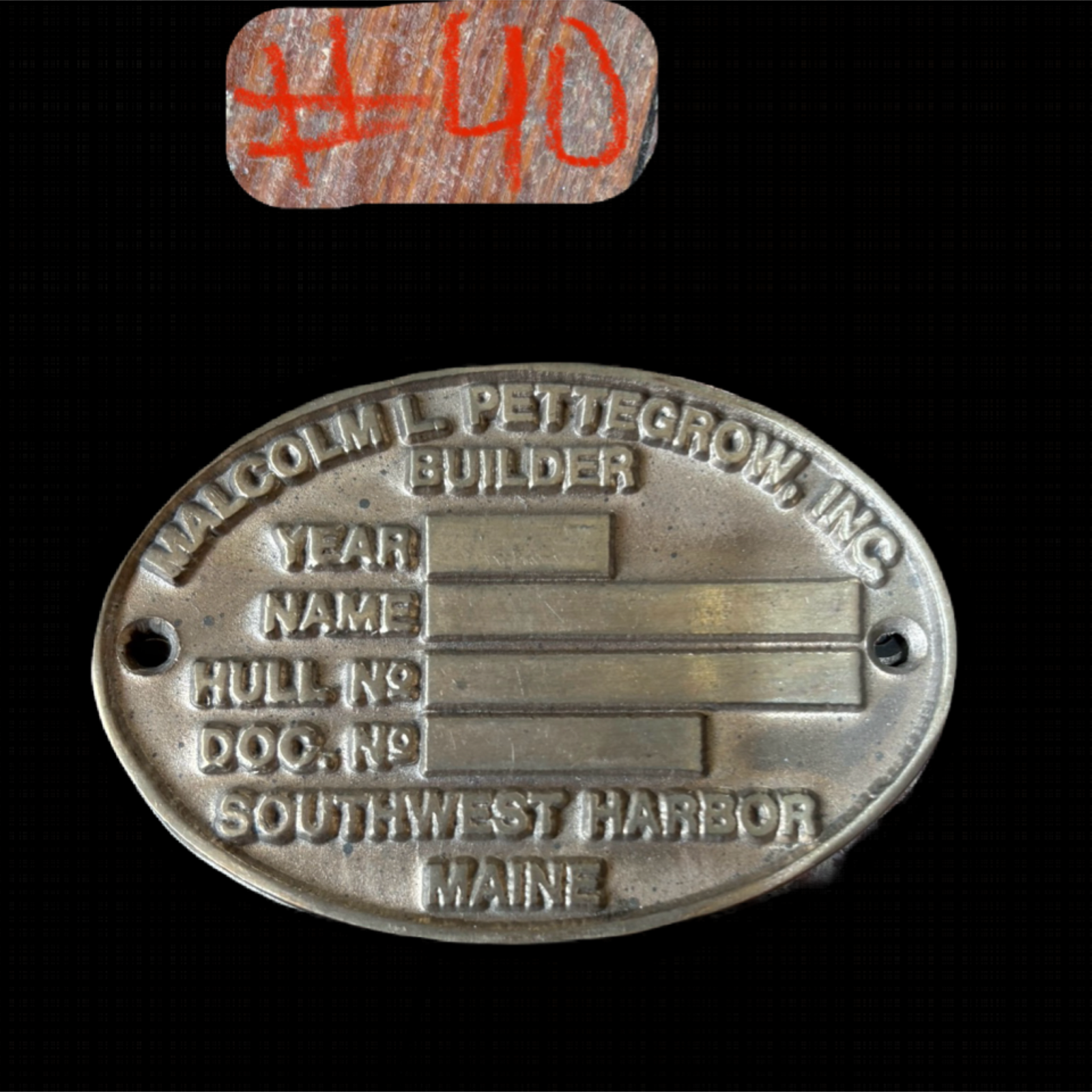 Malcolm L Pettegrow INC Builders Plate. Has spots for year, name of boat. Hull number. Doc number. 3 1/4" x 2 1/4". Upon purchase please email us with your hull number. Custom engraved hull number is included with your purchase.