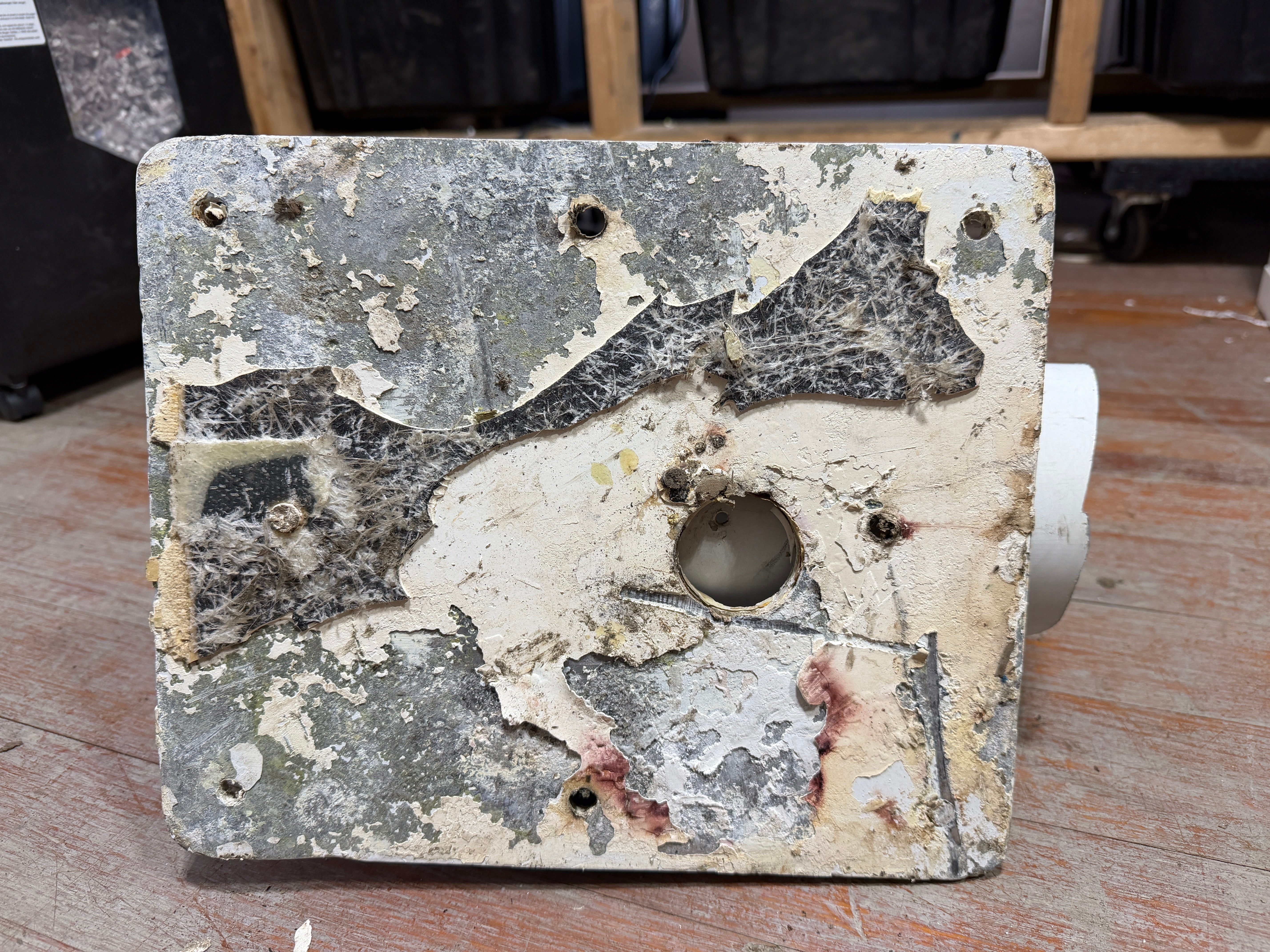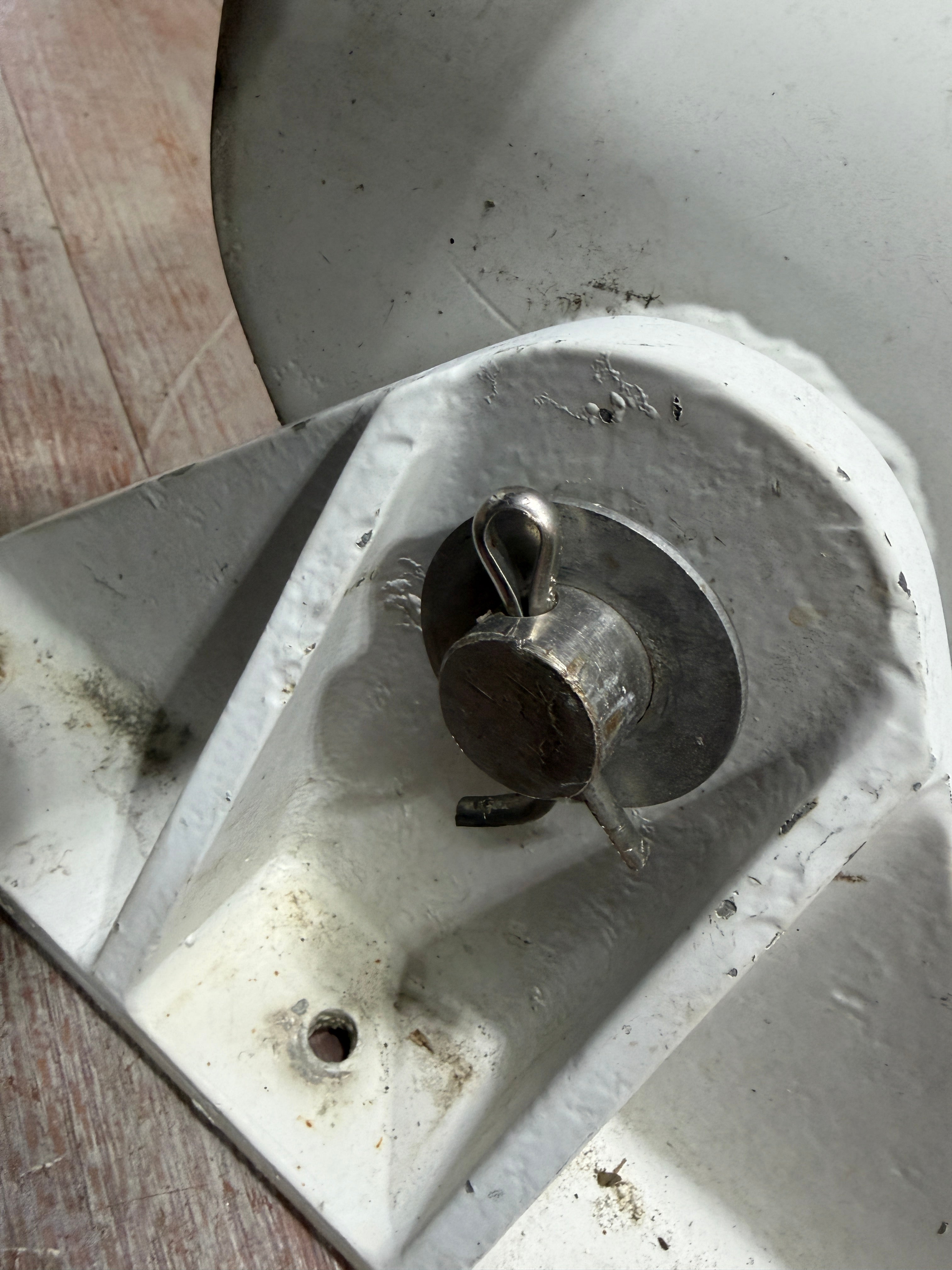 This mast base is in great condition. The base has model D3- 8082. The base itself measures 12" long x 10" wide. Fits a mast that has a 5" width and takes a 1" diameter through pin. The stainless steel gooseneck is a 1" wide x 1/4" thickness track slide. It has a 4" long pin that is 1/2" diameter. Width between is 1 3/4". The other area that is fitted to the current mast has a 1/2" pin.