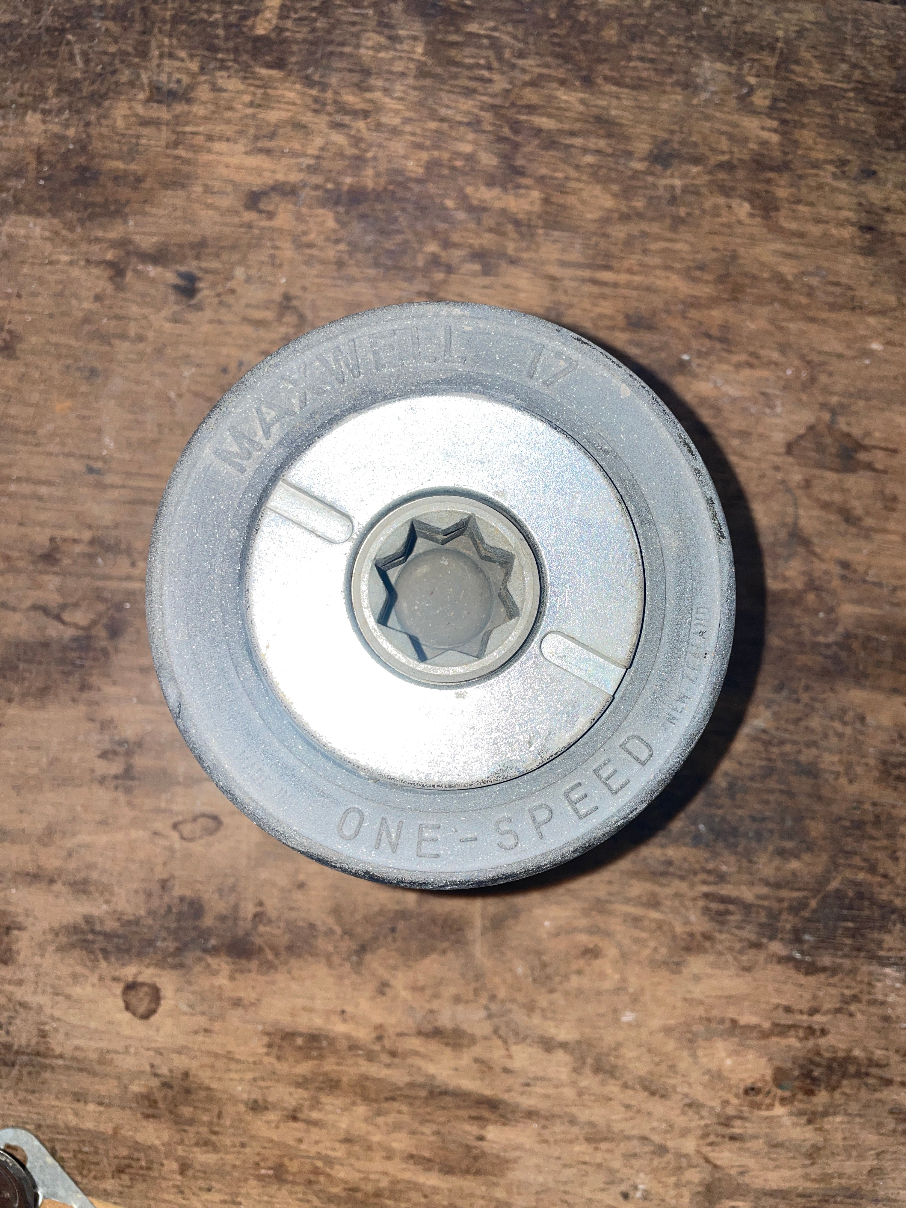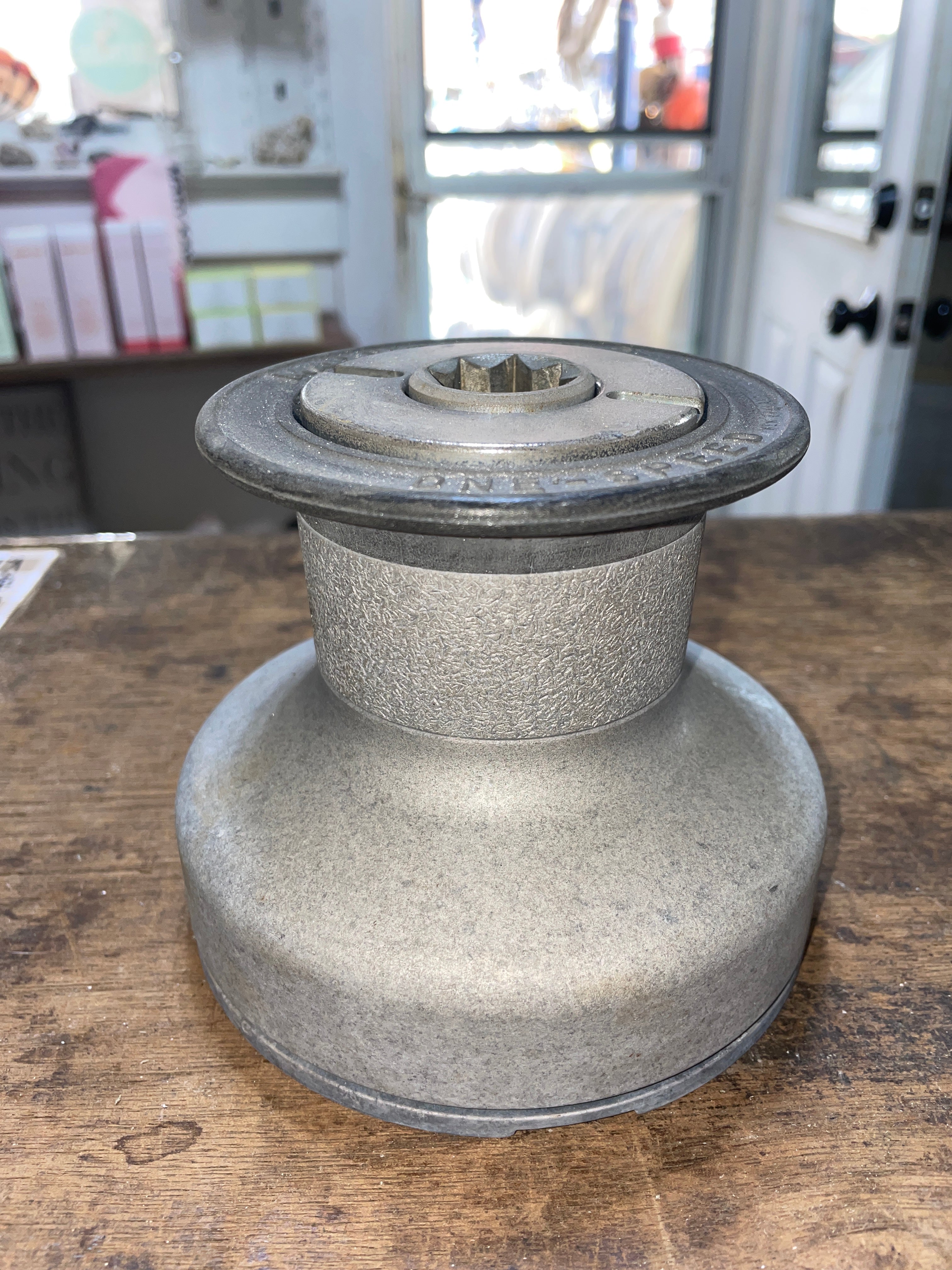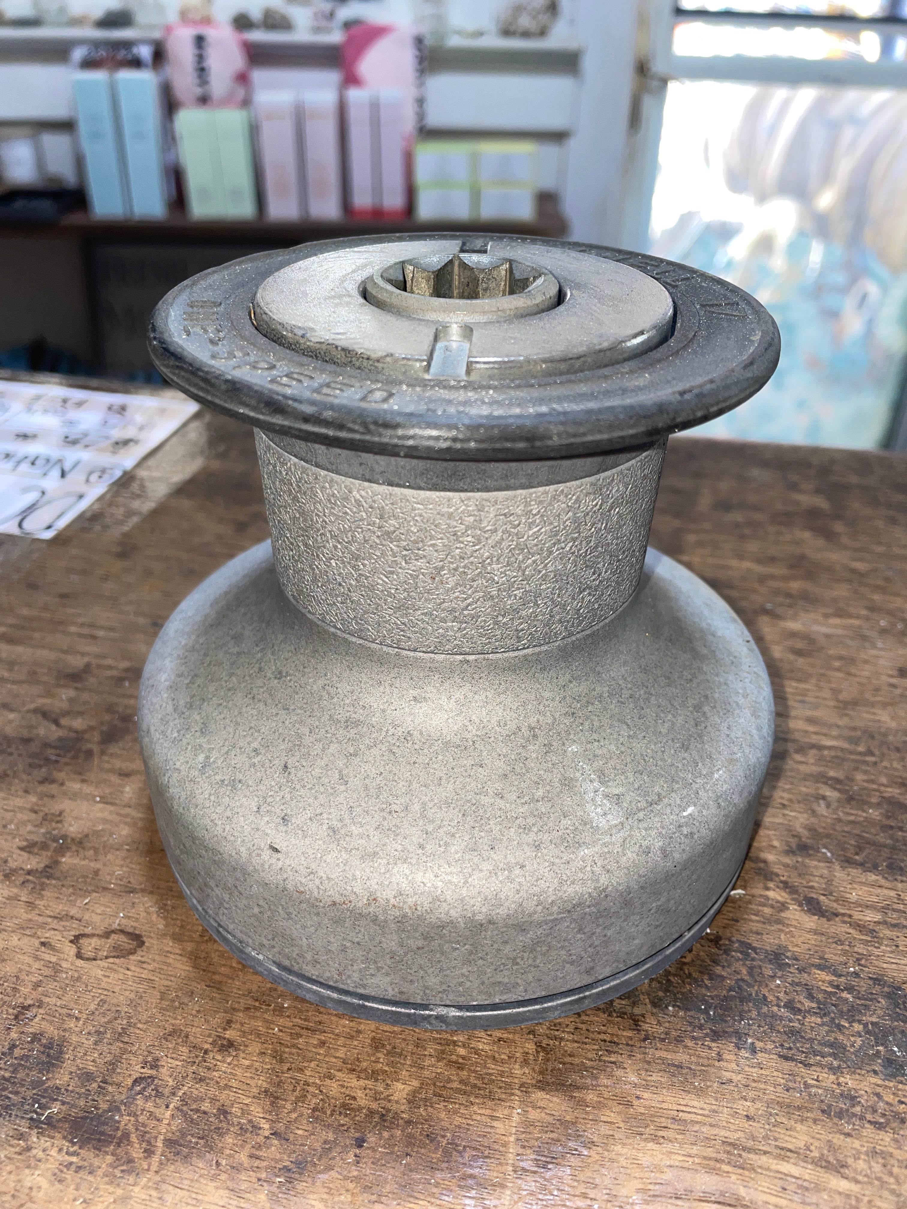 This Maxwell 17 non self tailing regular winch is in good condition. It is single speed. Will be serviced to ensure proper working condition upon receiving. It is aluminum bodied. The base is 5” diameter and stands 4” tall. There is a 5 bolt pattern. Included these measurements on the last photo.