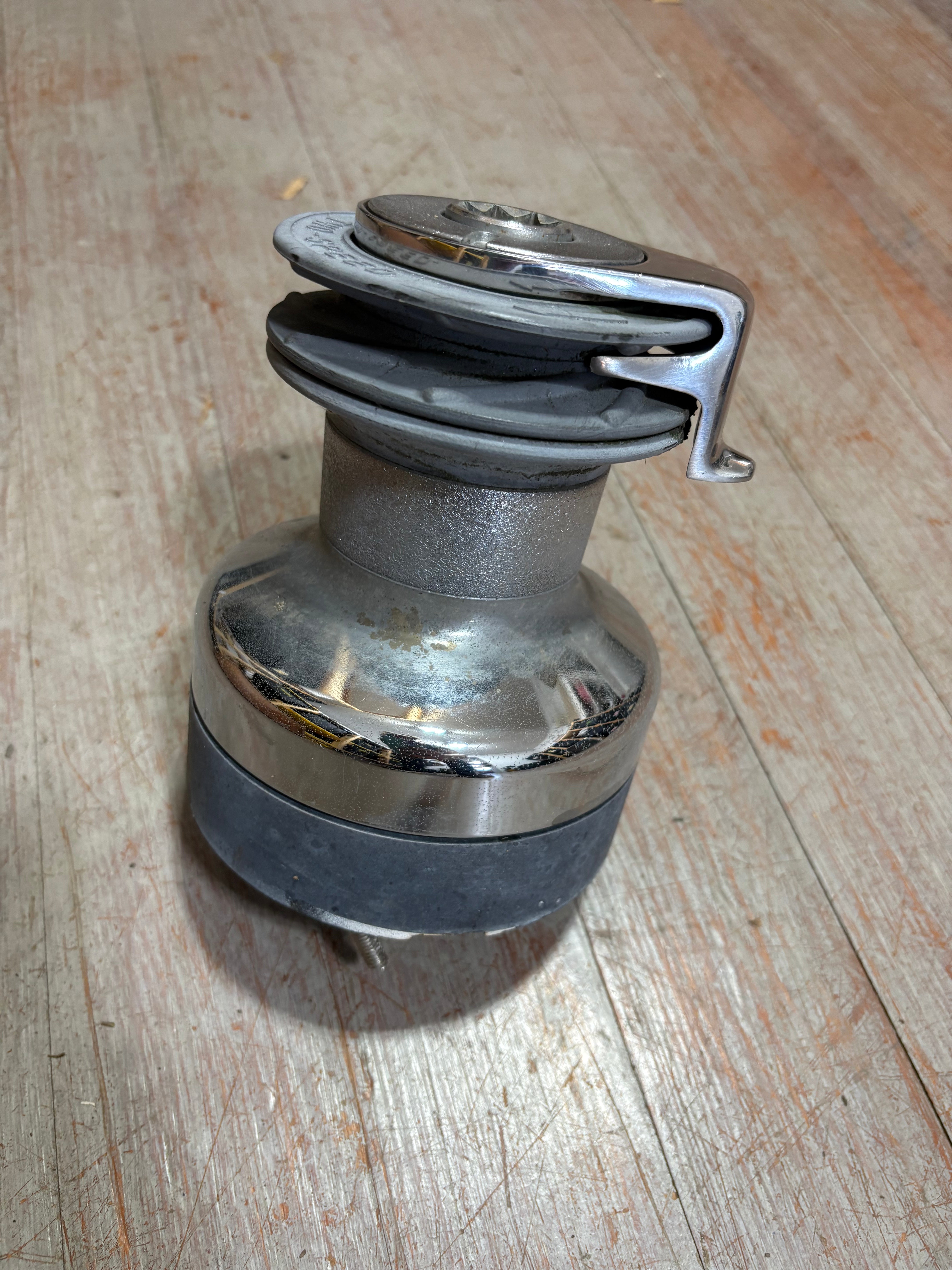 Maxwell 2 speed Self Tailing Winch. 6 3/4" total height. The base is 5 3/8" diameter. It is a 5 bolt mount pattern. The bolts are 2 1/8" apart. Fits 3/8" line diameter. Will be serviced upon purchase to ensure it works as it should.
