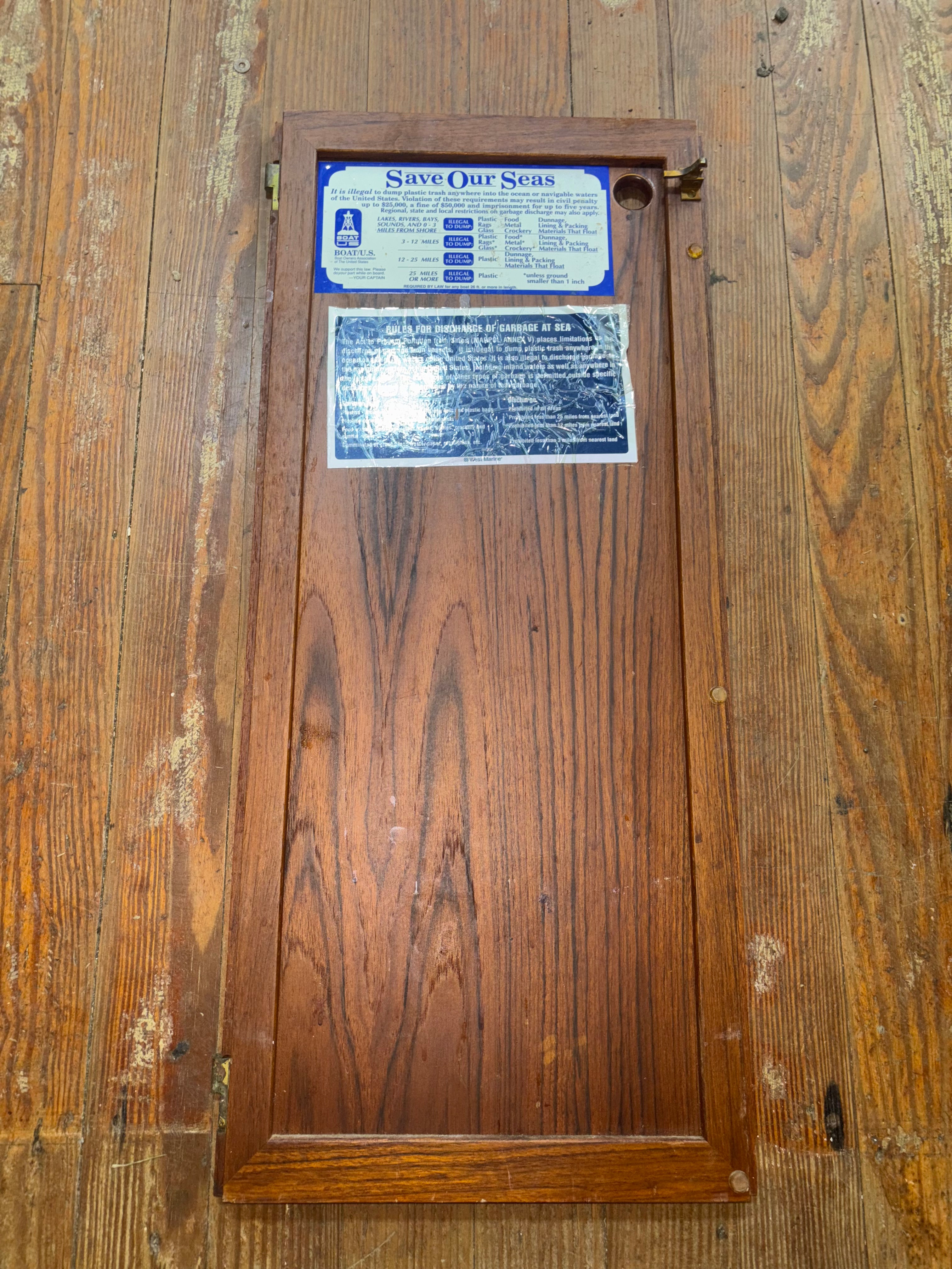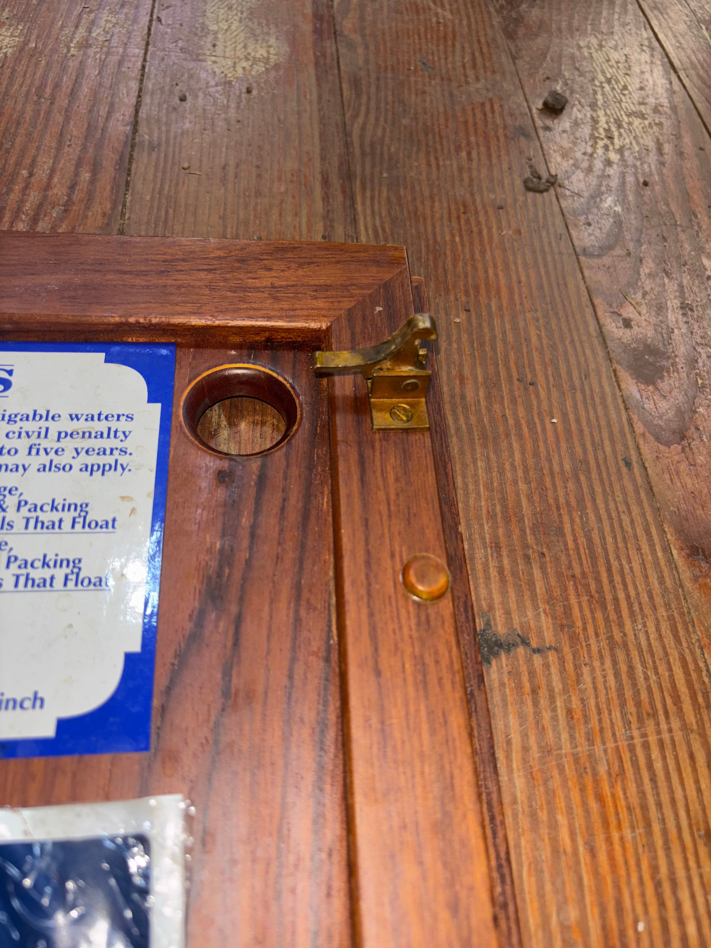 This interior cabinet door was removed off a nauticat 33. The door does not have complete hinges. This door is in good condition with minimal surface scratches. The door measures 30 1/2" long x 13 1/2" wide.