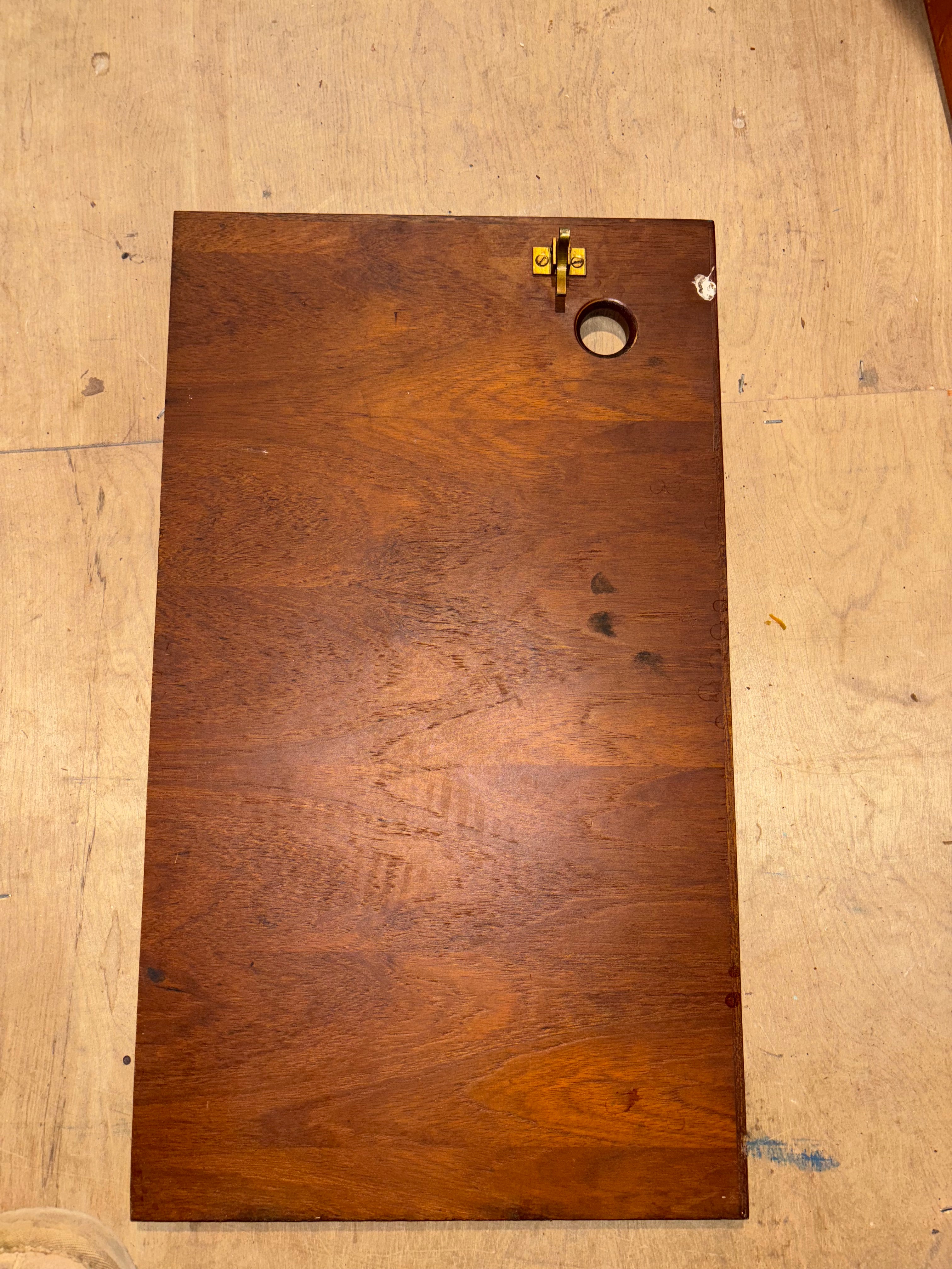 This interior door was removed off of a nauticat 33. Has a shiny varnish. This door has NO hinges, and doesn’t look like it ever did. I think it is a slide style. It measures 19 7/8” long x 11 1/4” wide. Usual scratching but overall good condition.