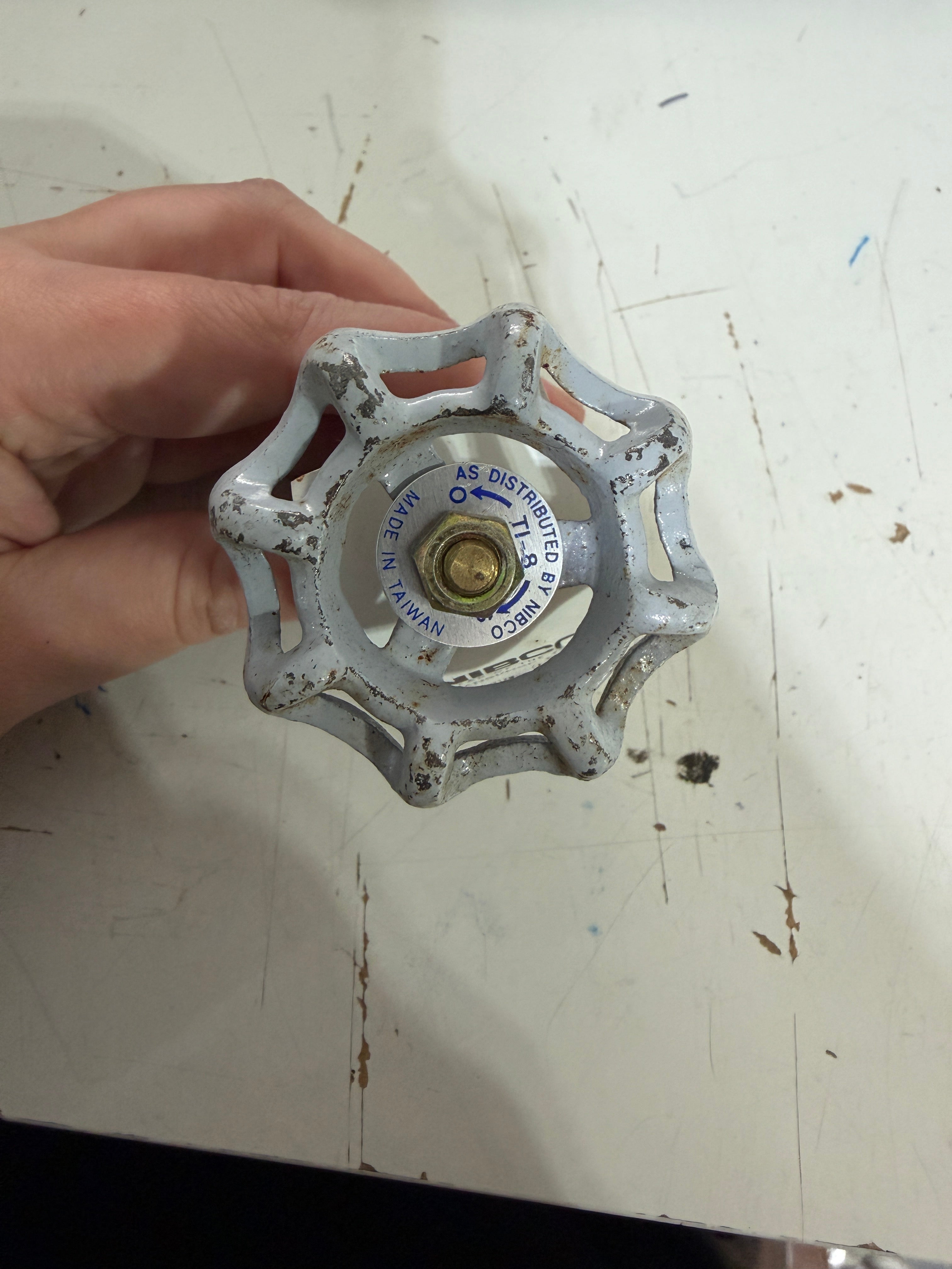 New. 3/8" on either side for attachments. New but the knob is slightly rusted.