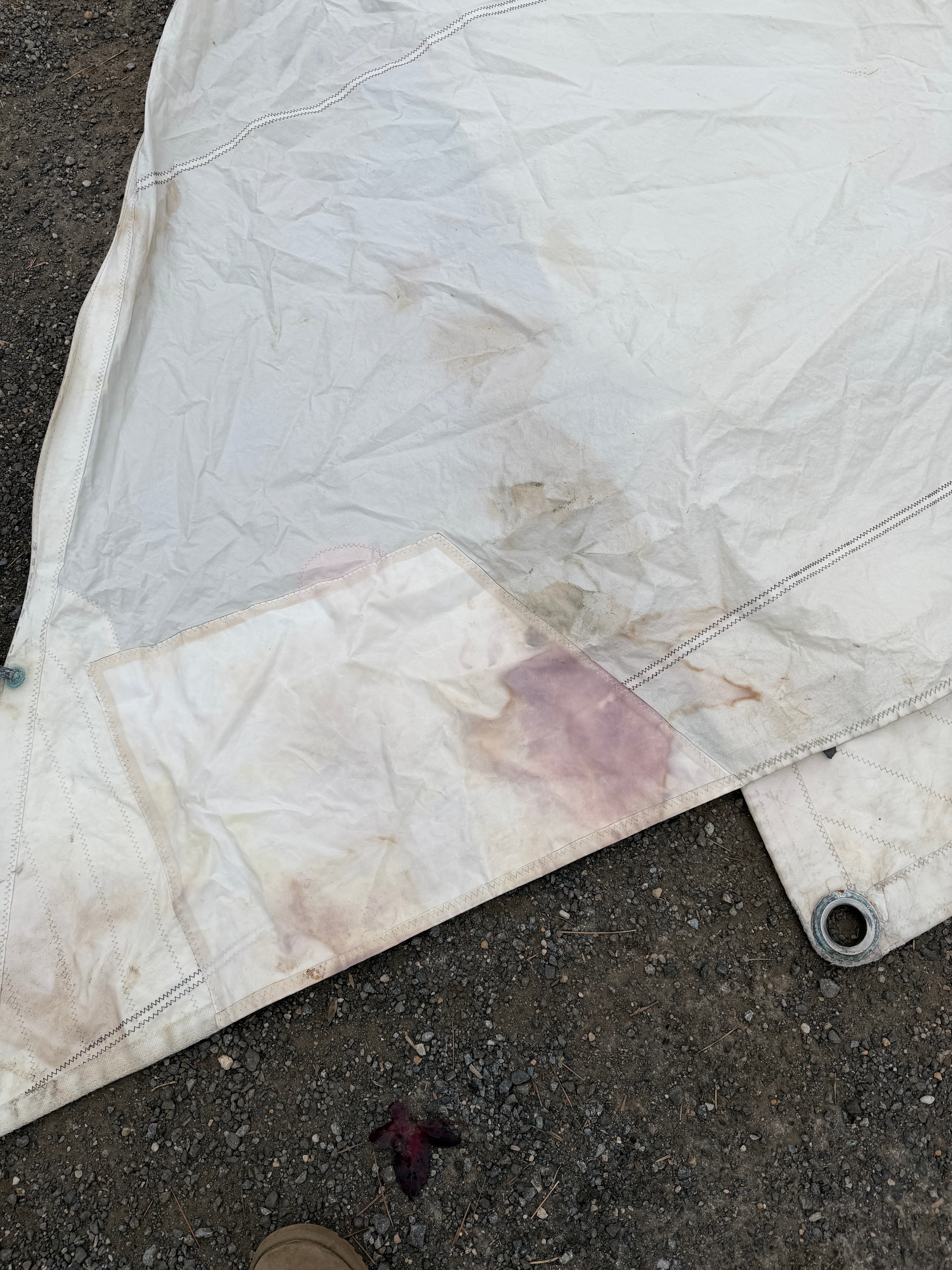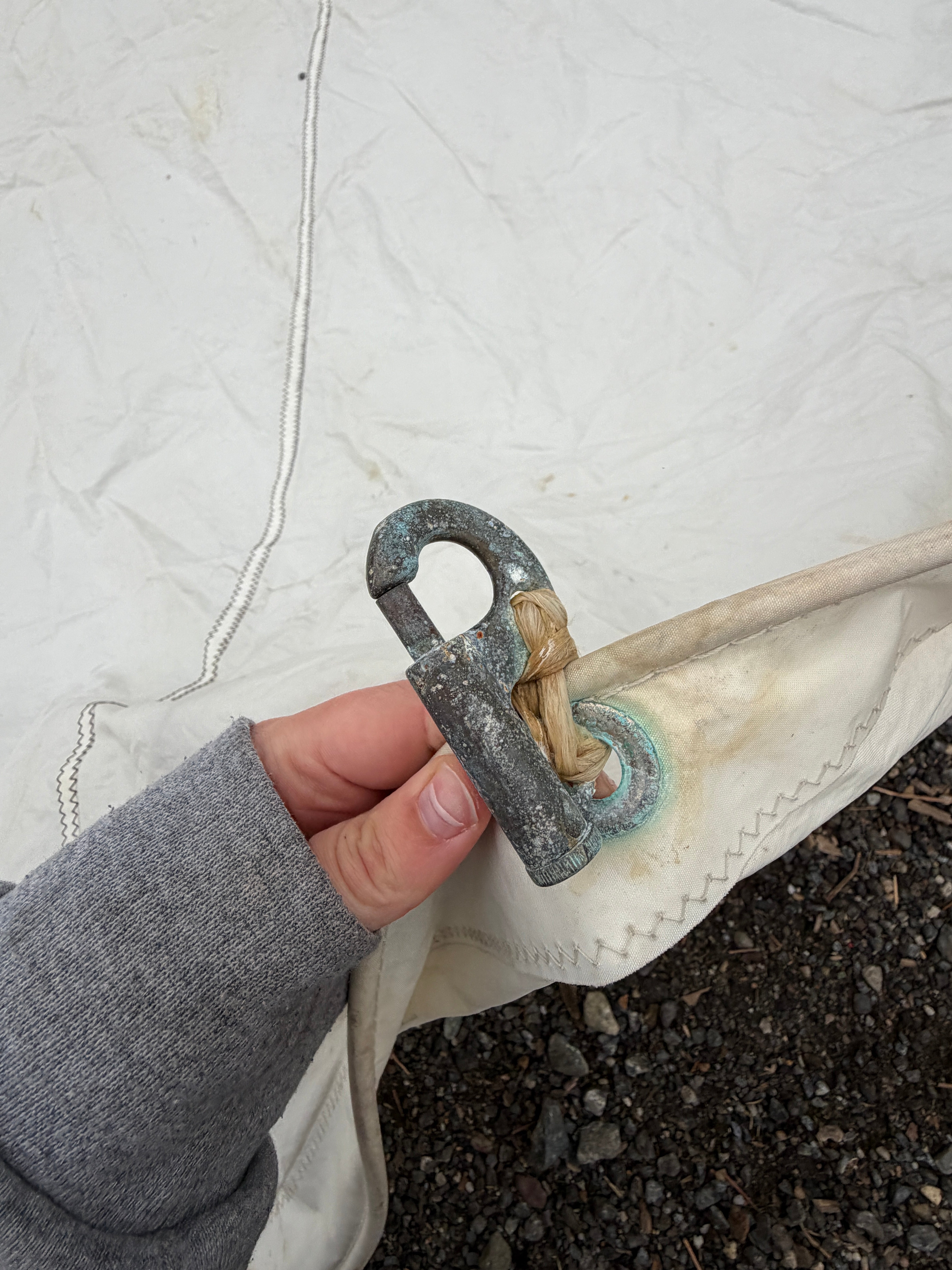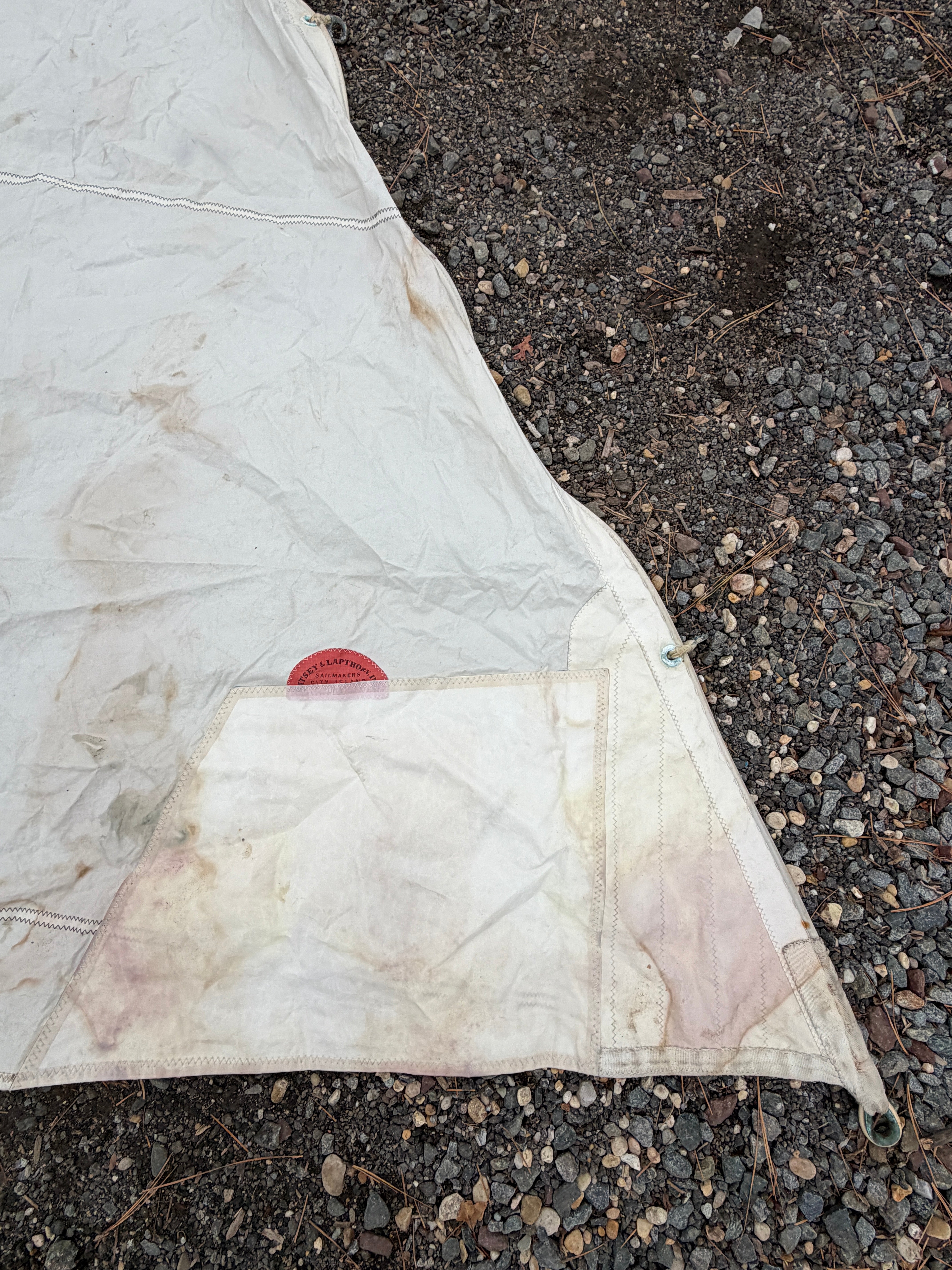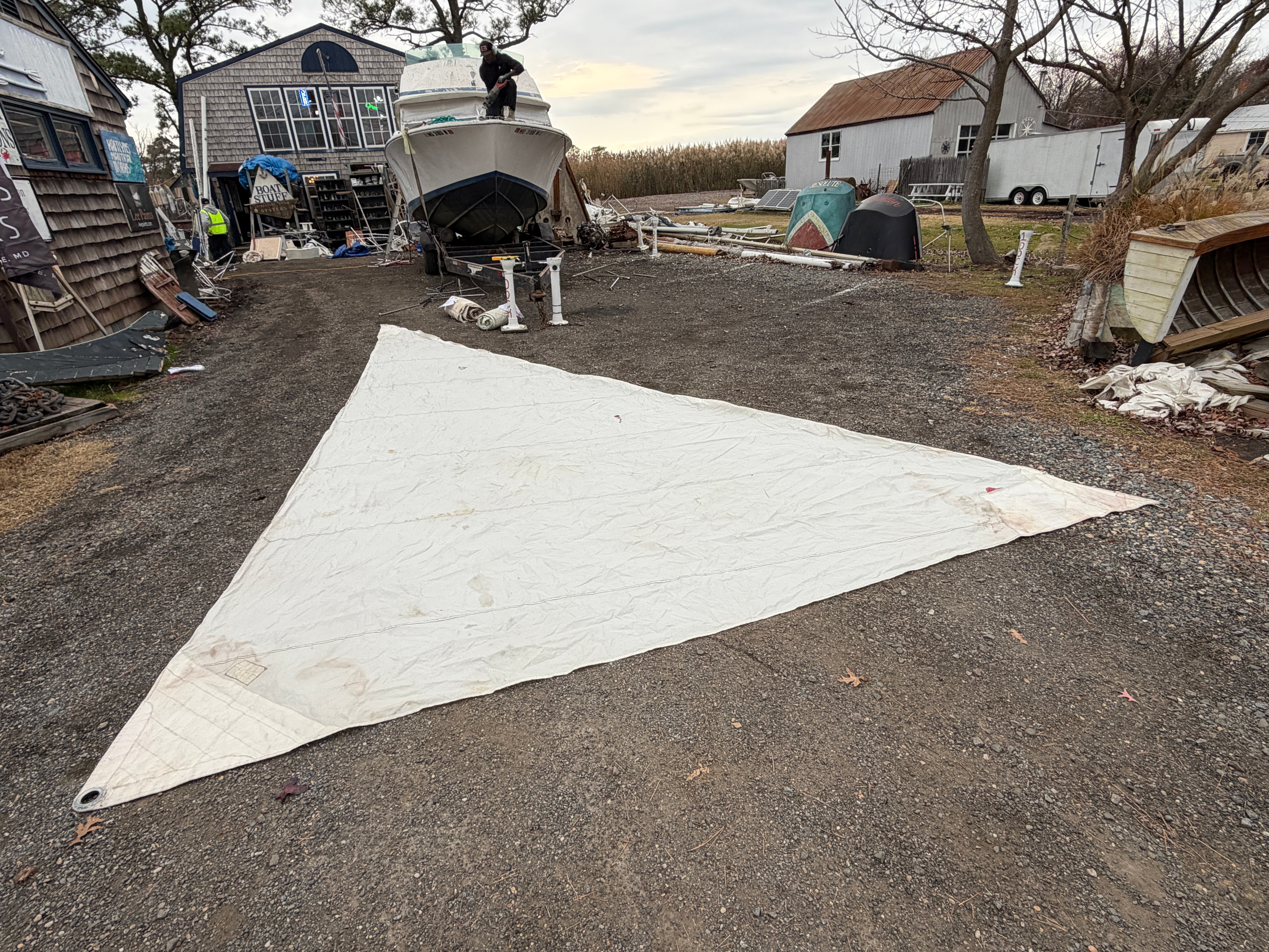 Number 3 Genoa sail. Good condition in that it has no rips or tears. There is a bit of staining to it. The sail measures 25'10" x 14' x 13'10". Does not come with a bag.