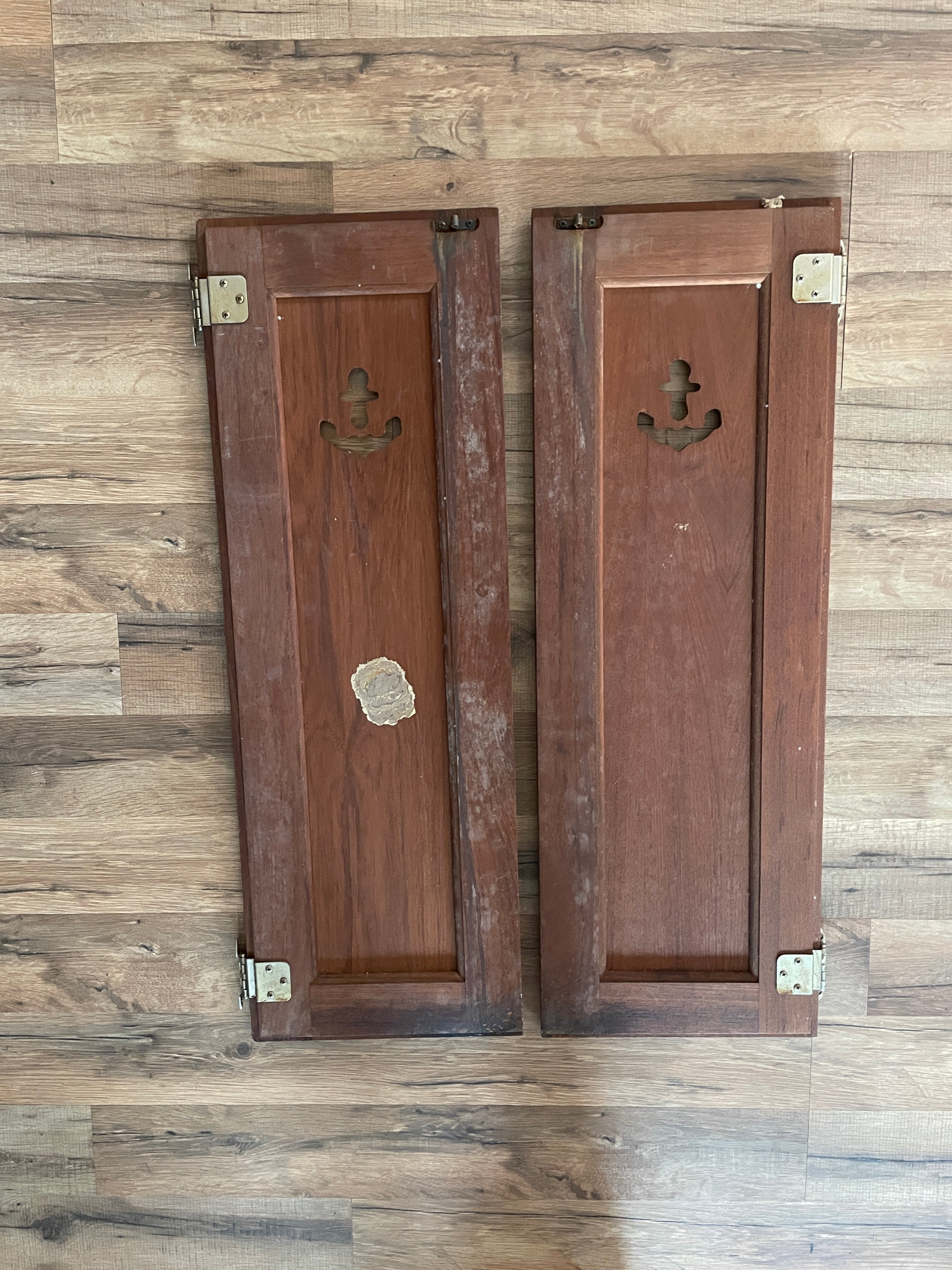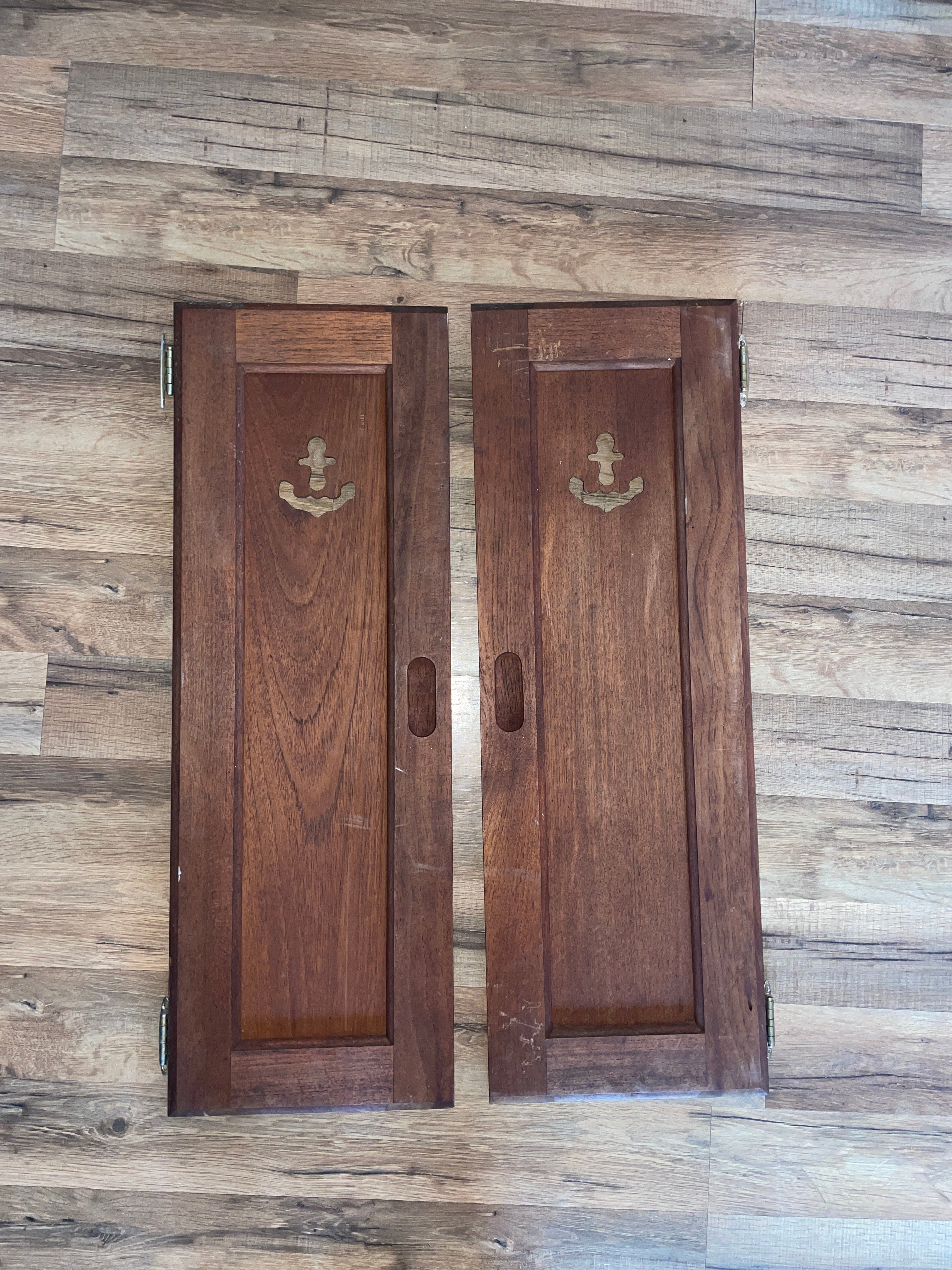 This pair of Catalina 30 interior doors are in great condition. These are very sought after with the anchor cutouts! They have very minimal scratching to the front. The backs however are a little rougher (dirty). Still solid. Hinges work good. The inside diameter of this door is 28 3/4” long x 9 3/4” wide. The overall outside diameter of the doors is 29 1/2” long x 10 1/4” wide.