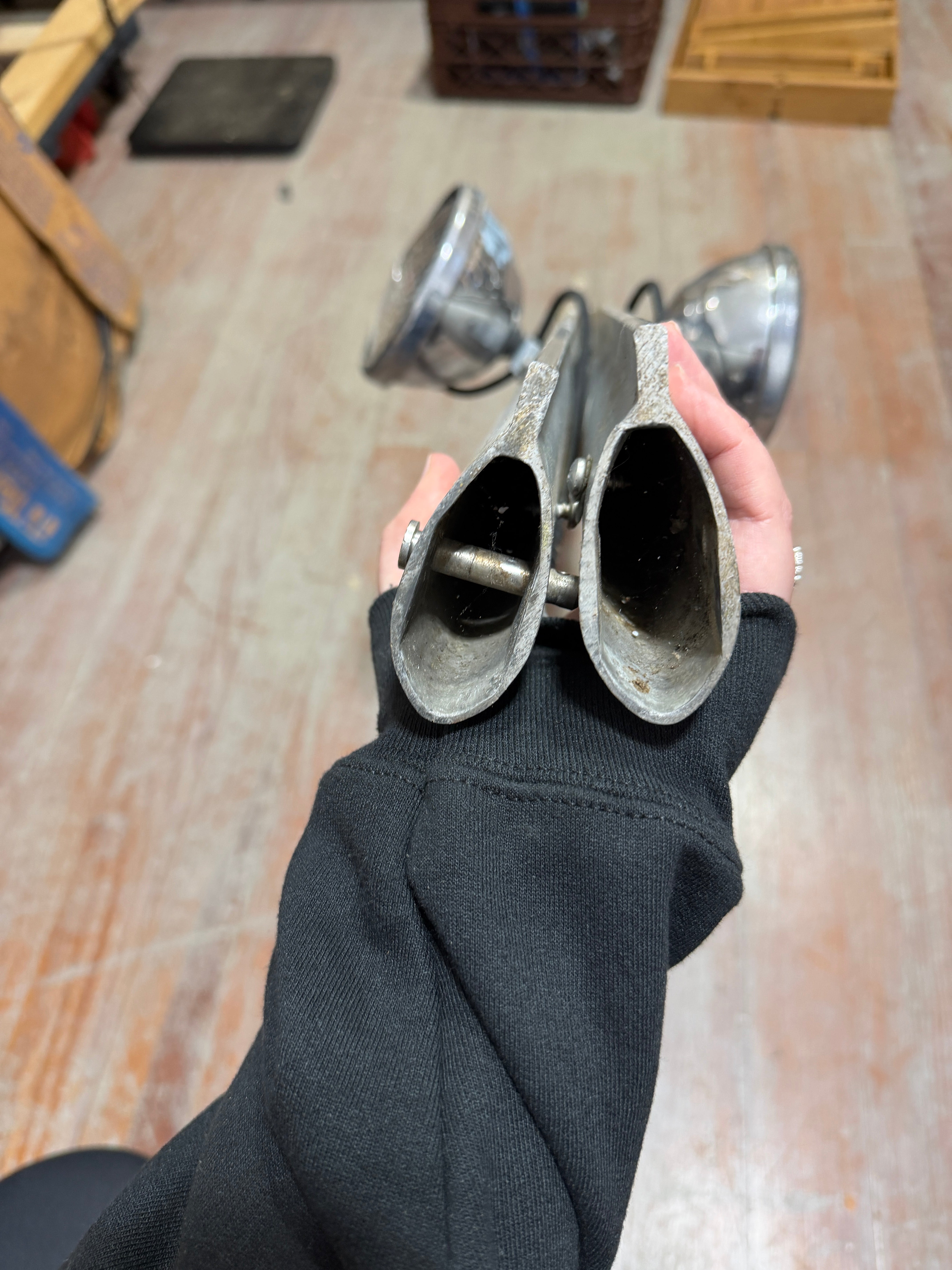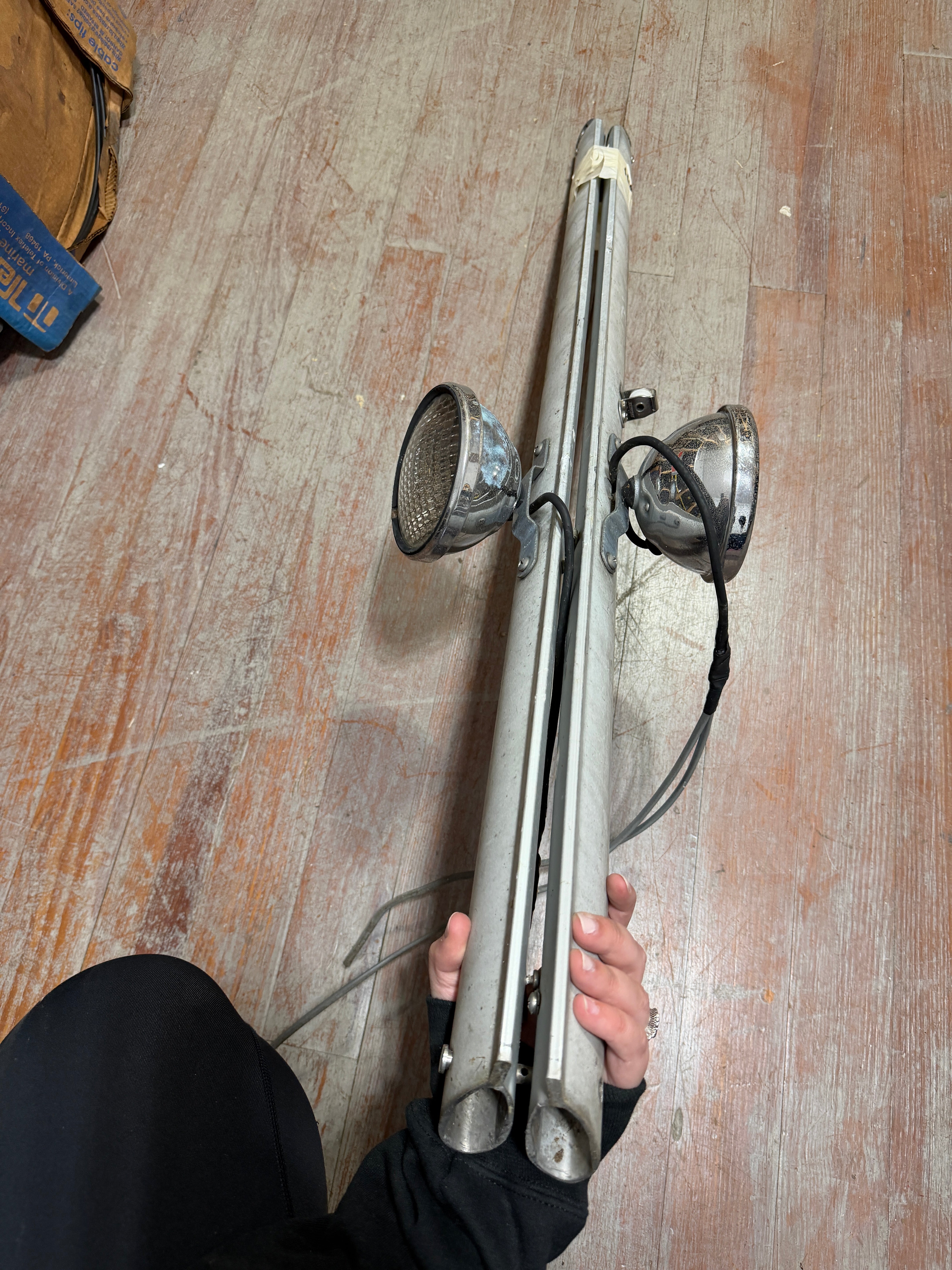 This pair of aluminum spreaders is in great condition. Removed of a hunter 30 sailboat. the spreaders are 41 1/4" length. The mounting is 2 5/16" x 1 1/4" with a 5/16" diameter bolt hole. Both of these spreaders have lights on them which are included.