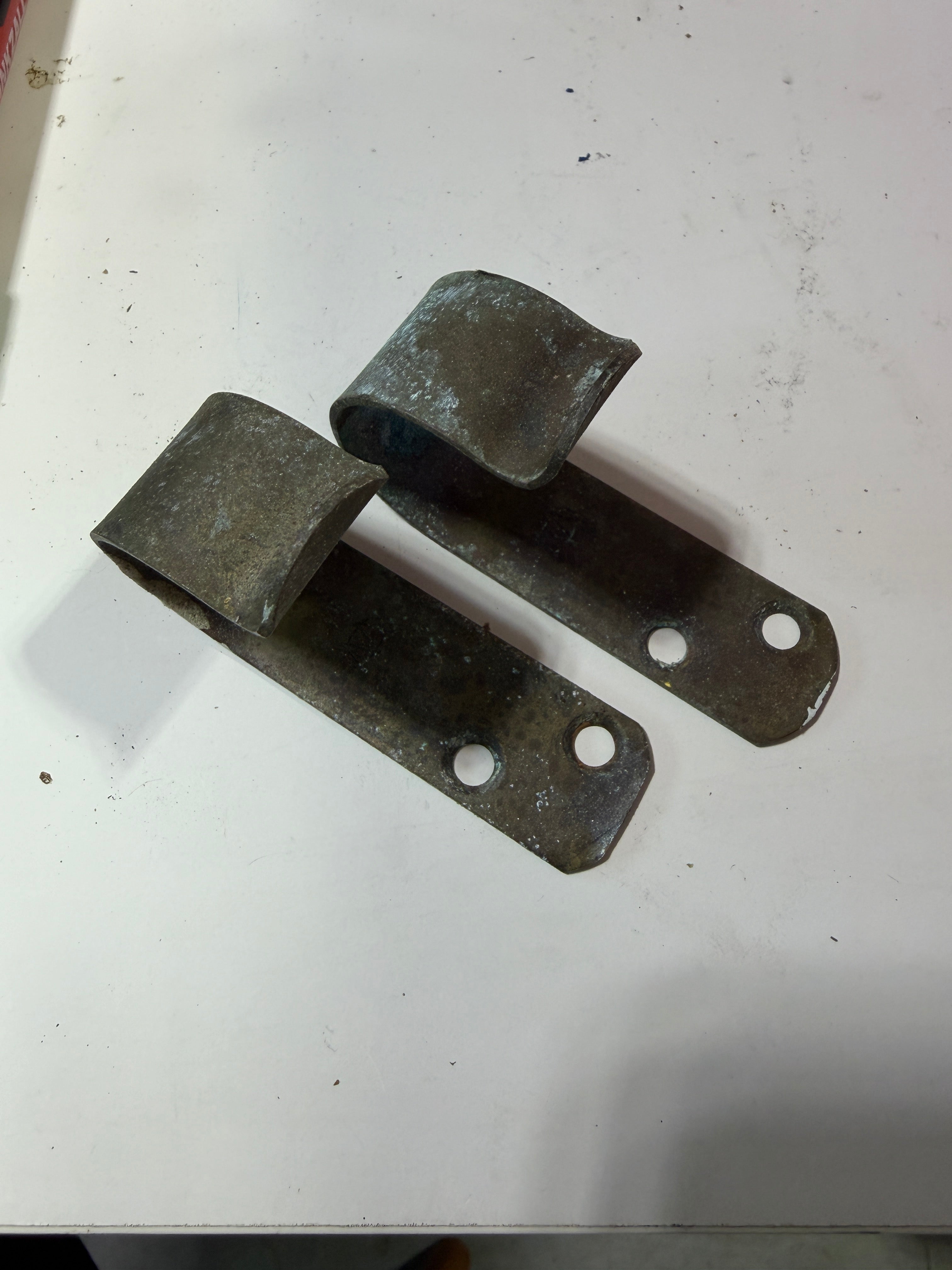 Small pair of brass Hooks. Perfect for line or used in your boat for other purposed! Wilcox Crittenden. 3 1/2" long x 2" deep.