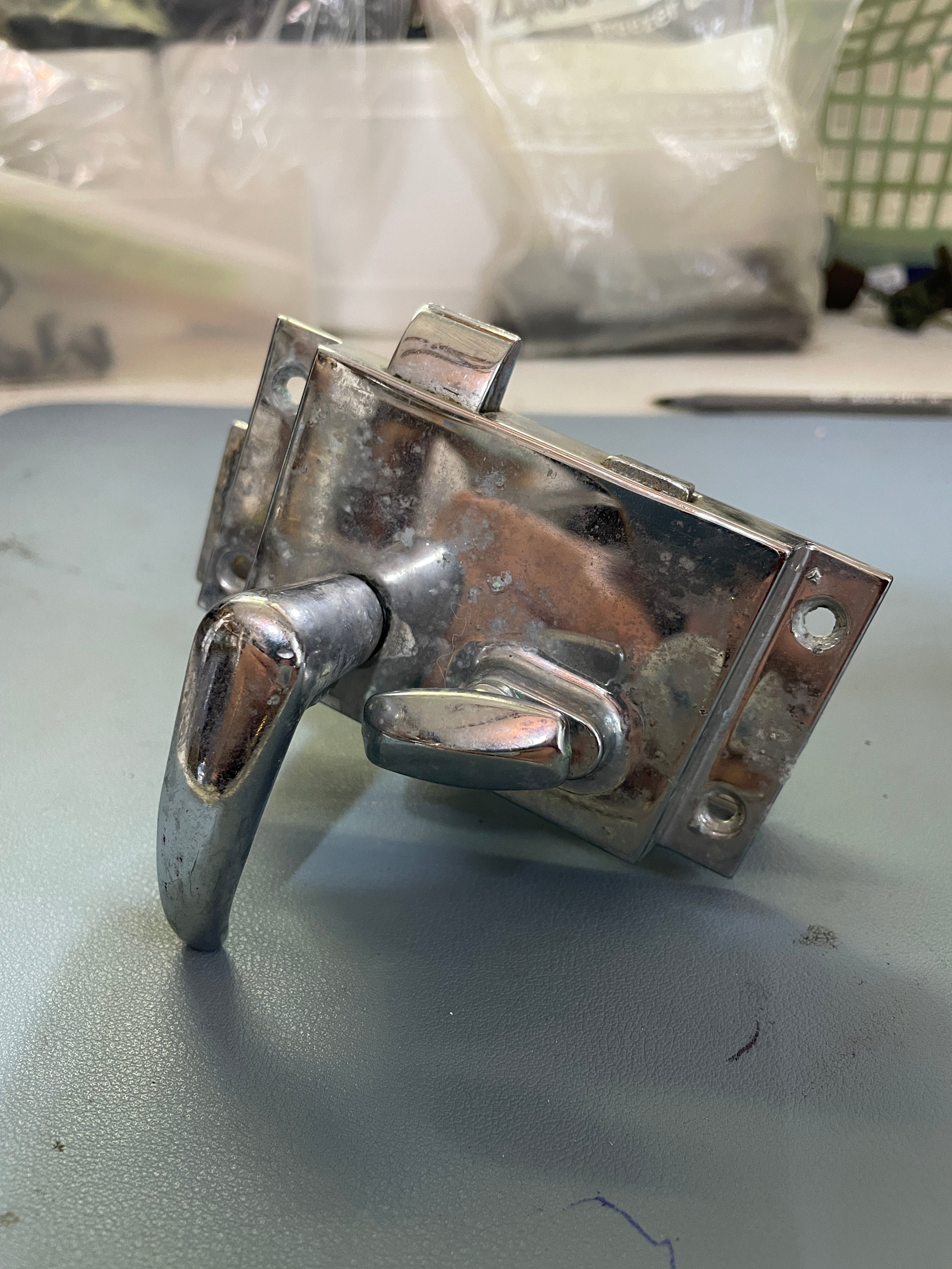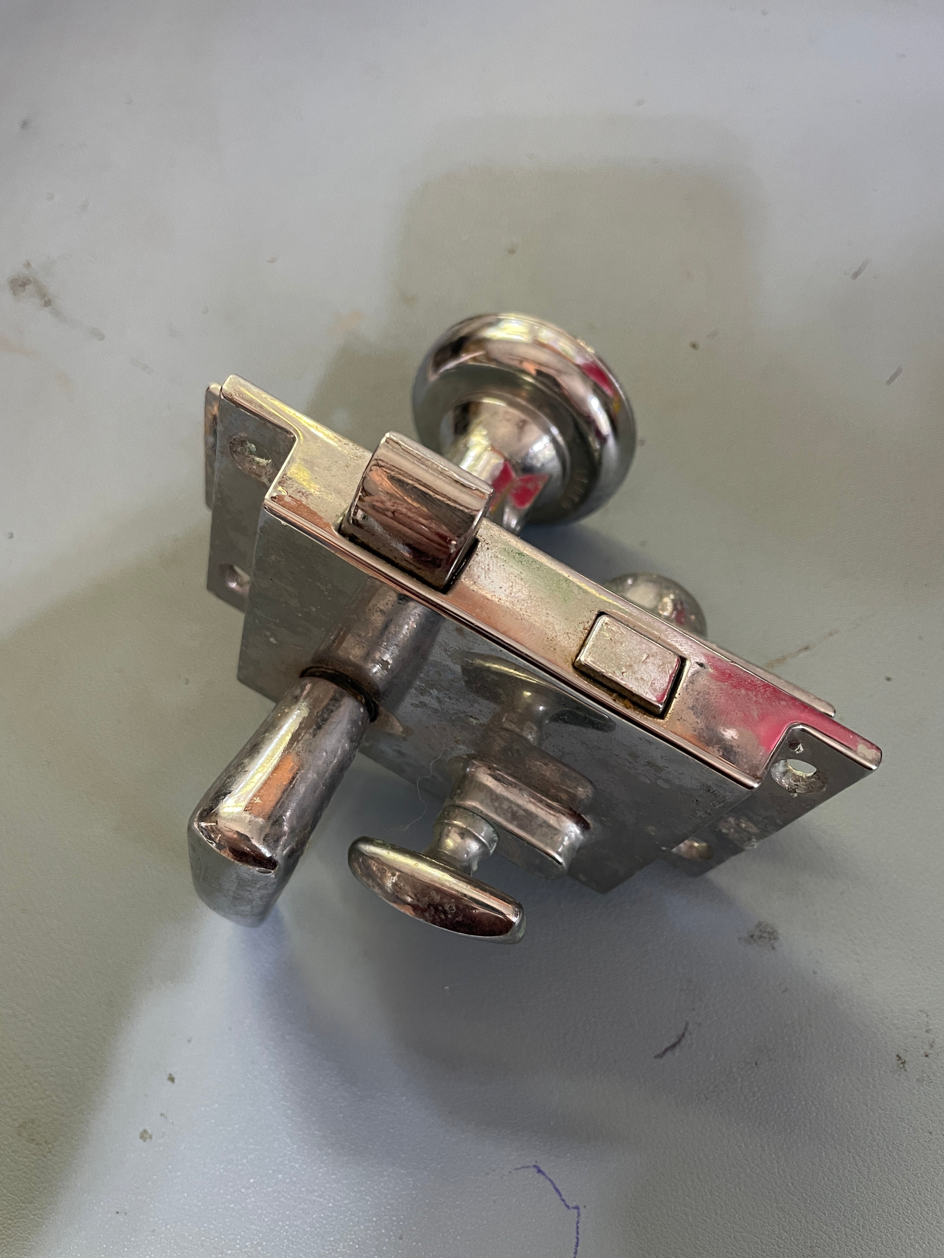 This perko door handle is in great condition. We have 2 styles available. The mortise door latch - does not have the door latch piece. OR the rim latch - also no door latch piece. Being sold as is. They seem to work.