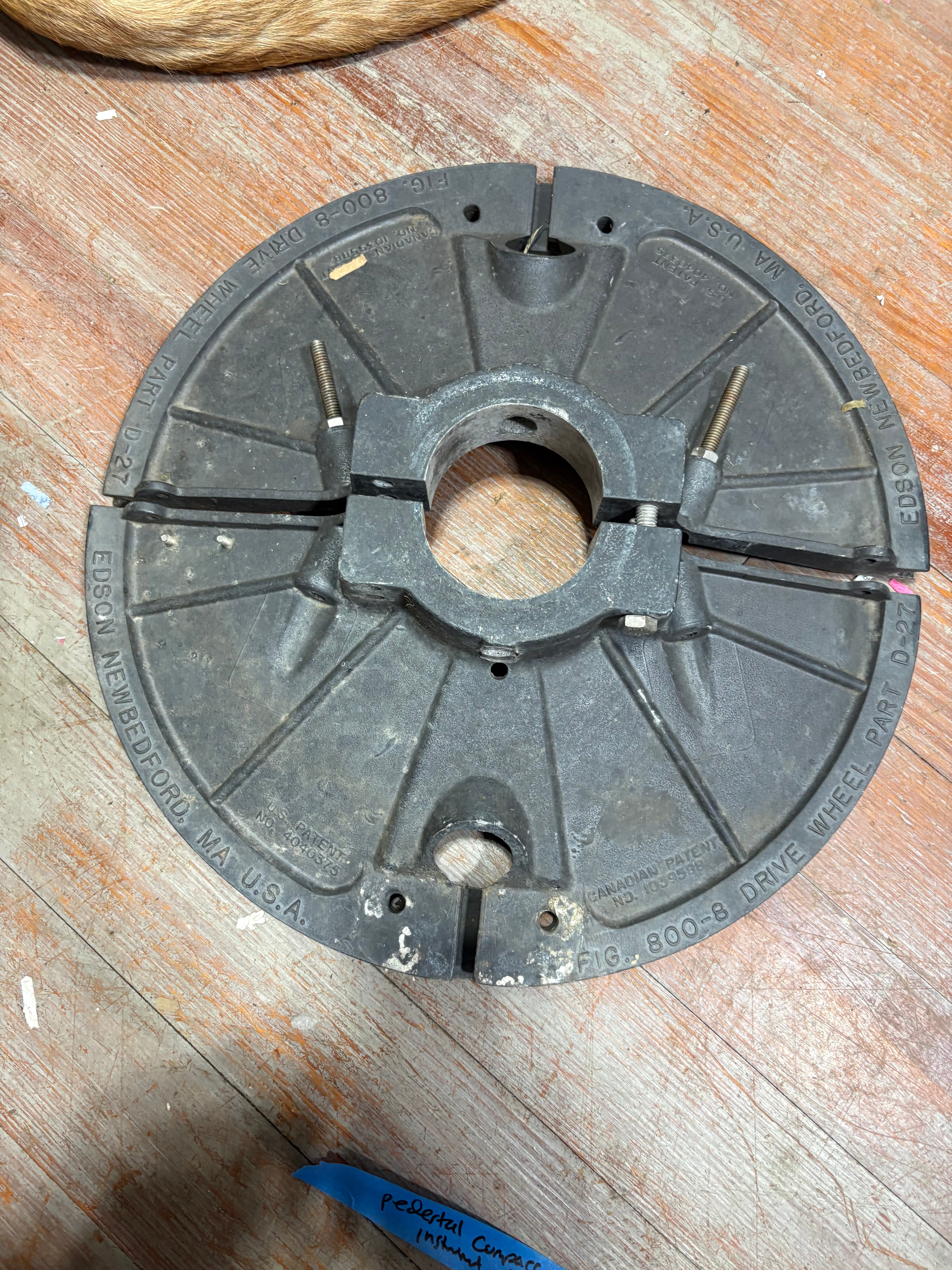 Quadrant . Center hole is 3" diameter. The outer edge has a 7/16" width for cable. Overall diameter is 16"