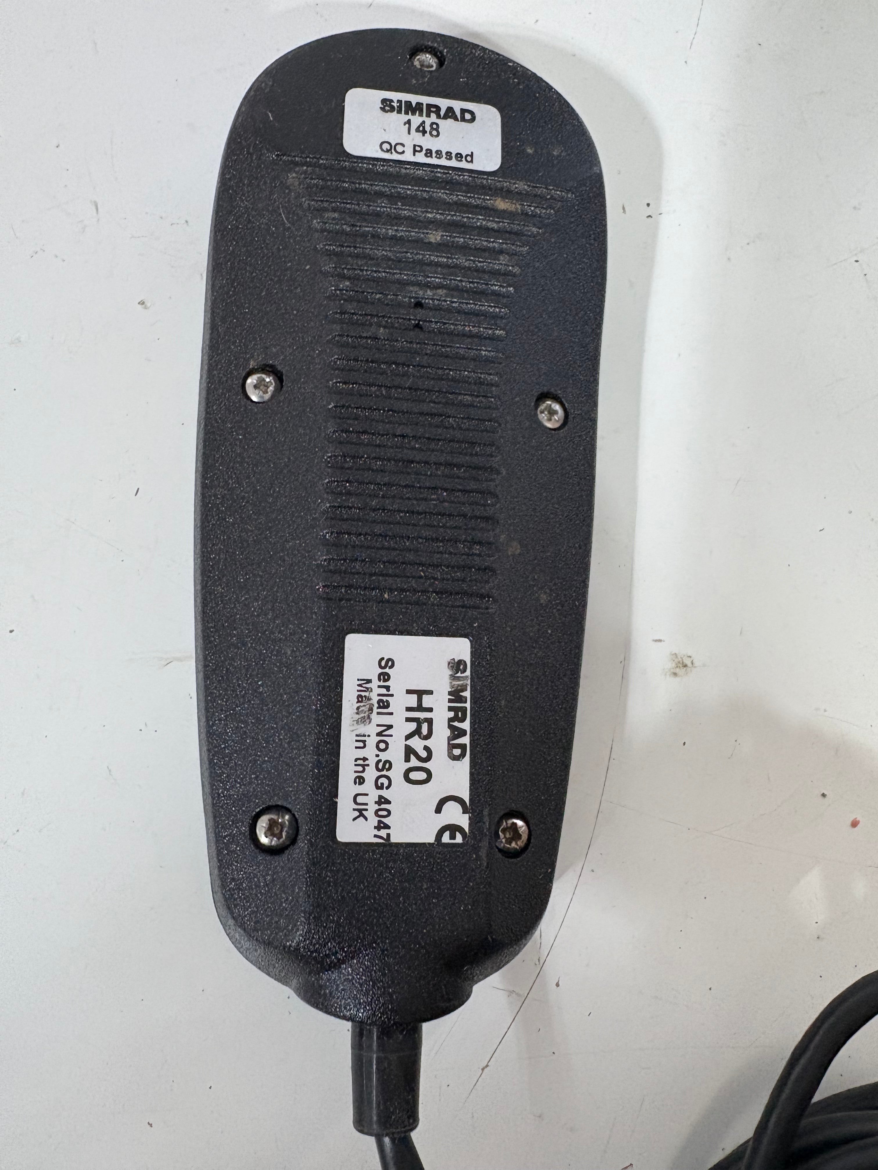 Simrad HR20. SIMRAD 148. Serial no SG4047. has a few feet of wiring. Will come with the wall mount holder for the remote.