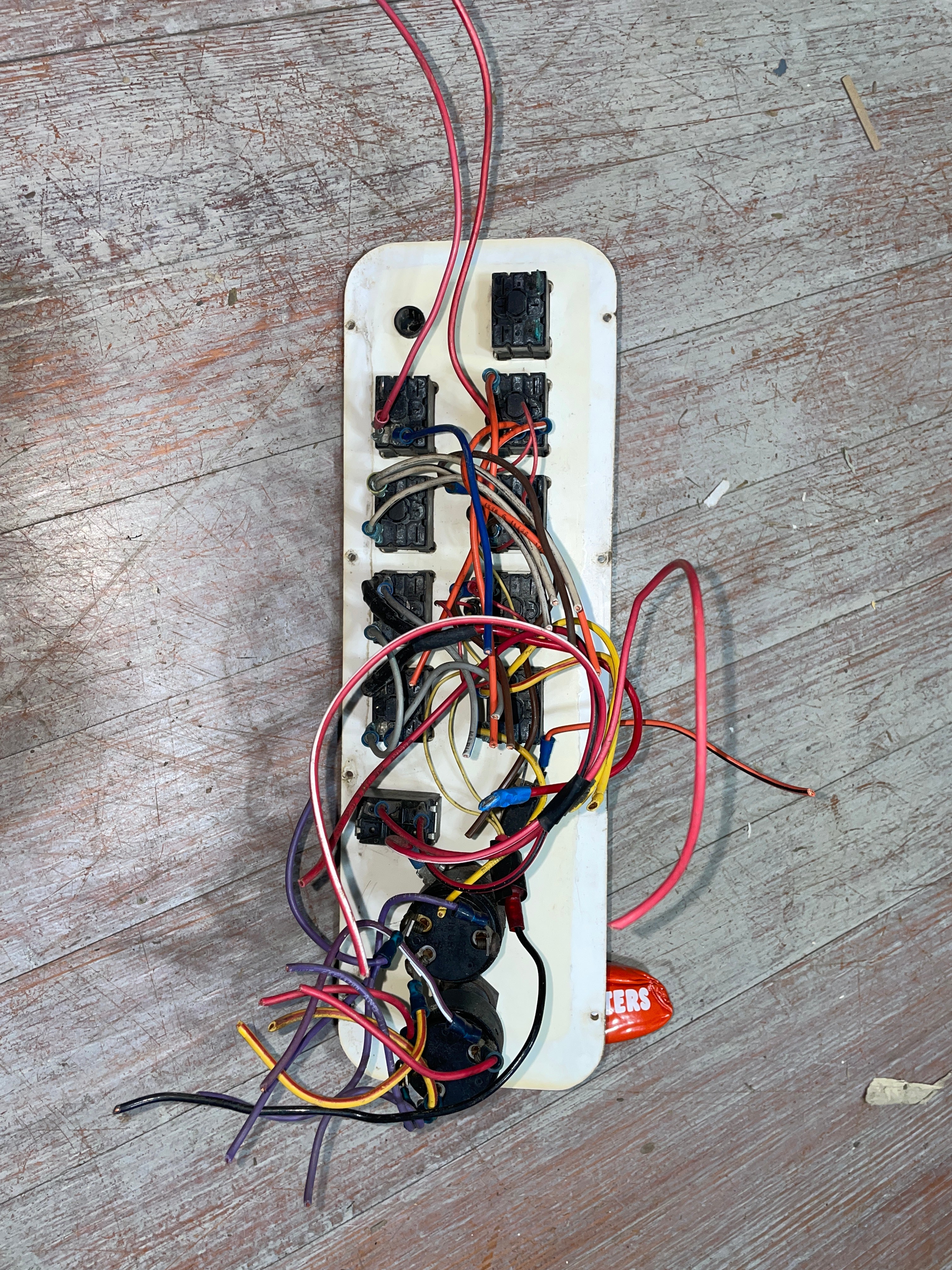 This electrical panel was removed off a regal boat. The panel has the top 5 buttons - all of which seem to be "sticky". The bottom 4 buttons seem to work as should. It measures 14" long x 4 1/2" wide x 2" deep. Selling AS IS.