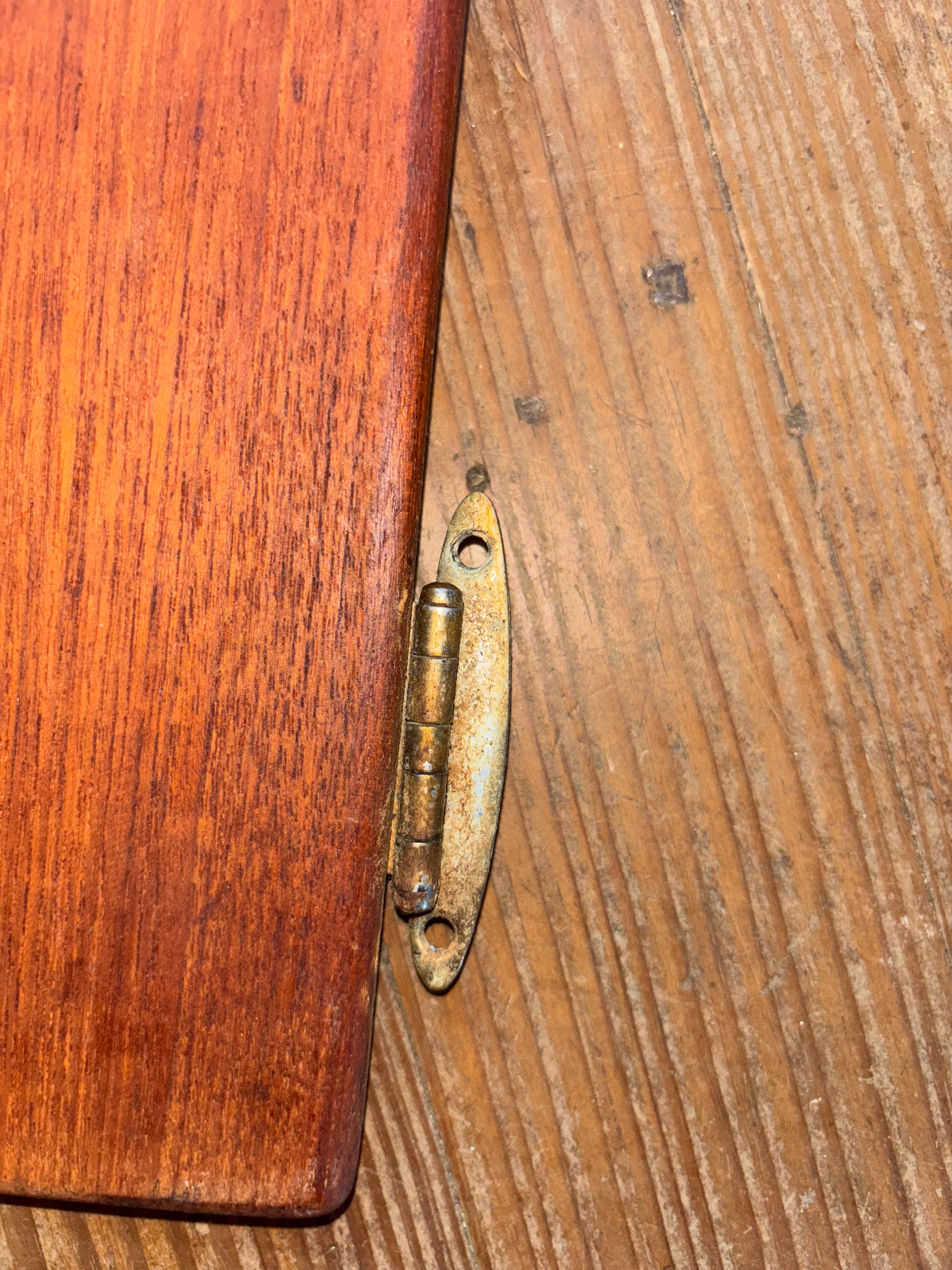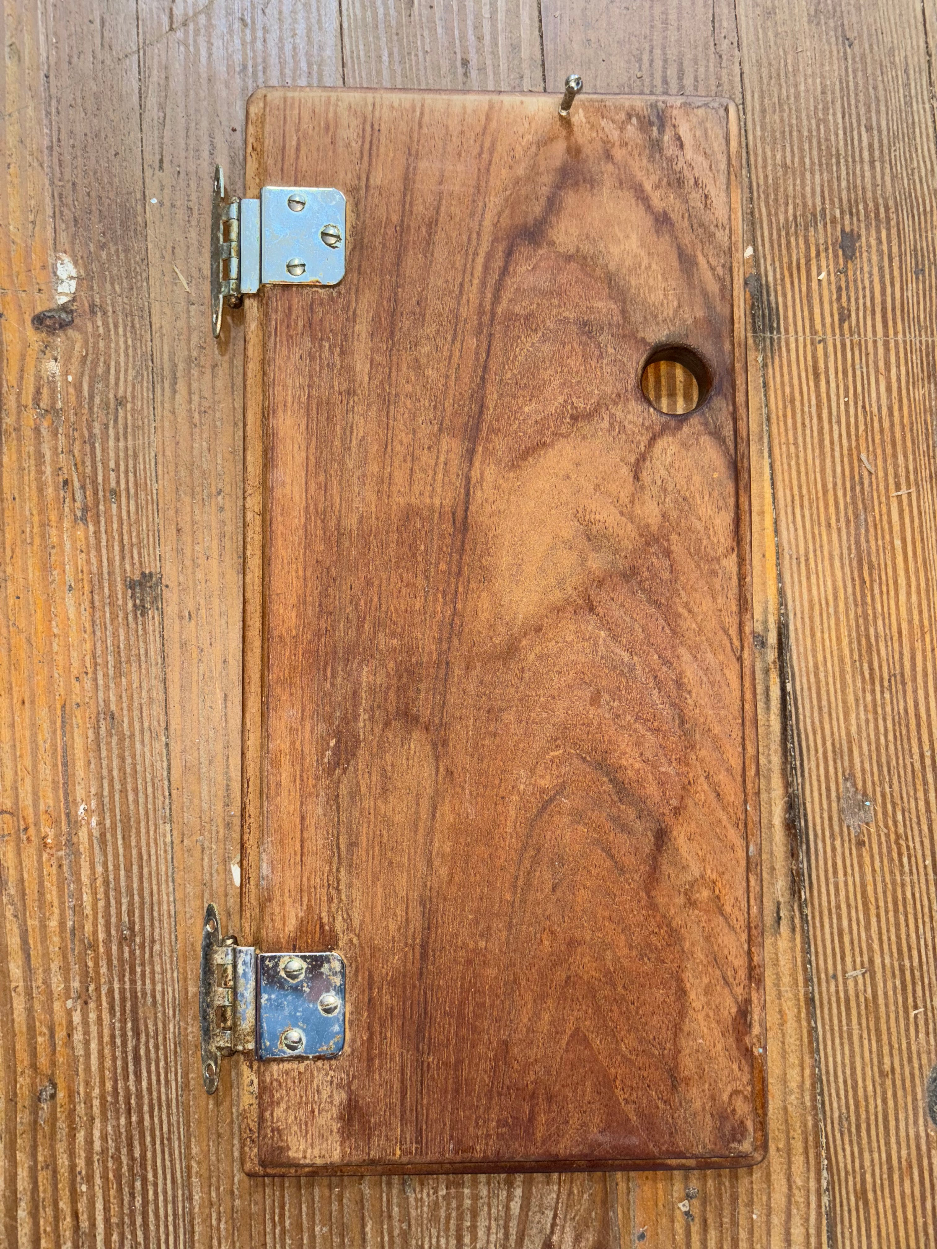This nice interior cabinet door is in good condition, usual scratching. No major damage. Unknown which boat this was removed from. This door is the right (port) side. It measures 16 3/4" long x 8" wide. Hinges in good condition.