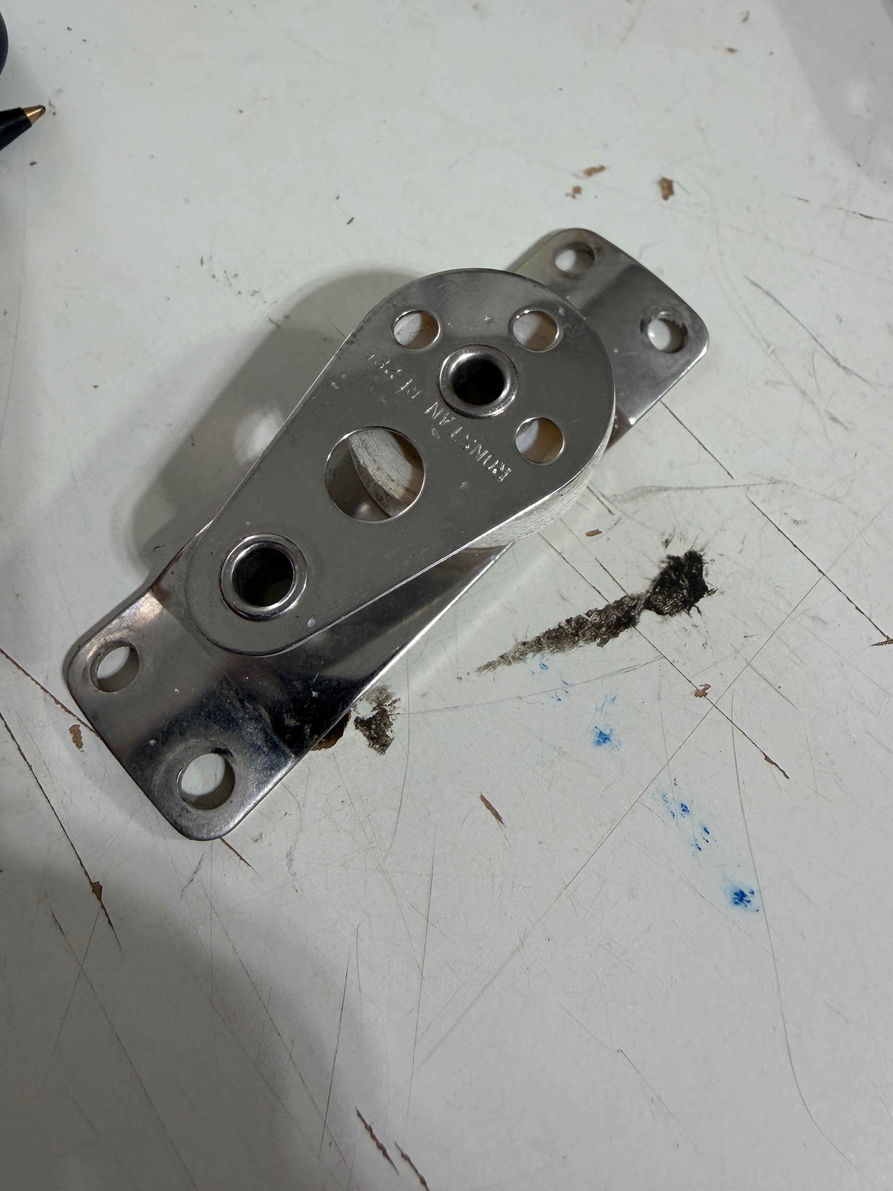 This ronstan RF285 Series 29 utility block is in great condition. Even though it is new, it does have some scratching to the surface. It has a 1 1/8” sheave and can fit 5/16” line diameter. The base is 3 1/4” long x 1” wide. Does sit slightly raised.
