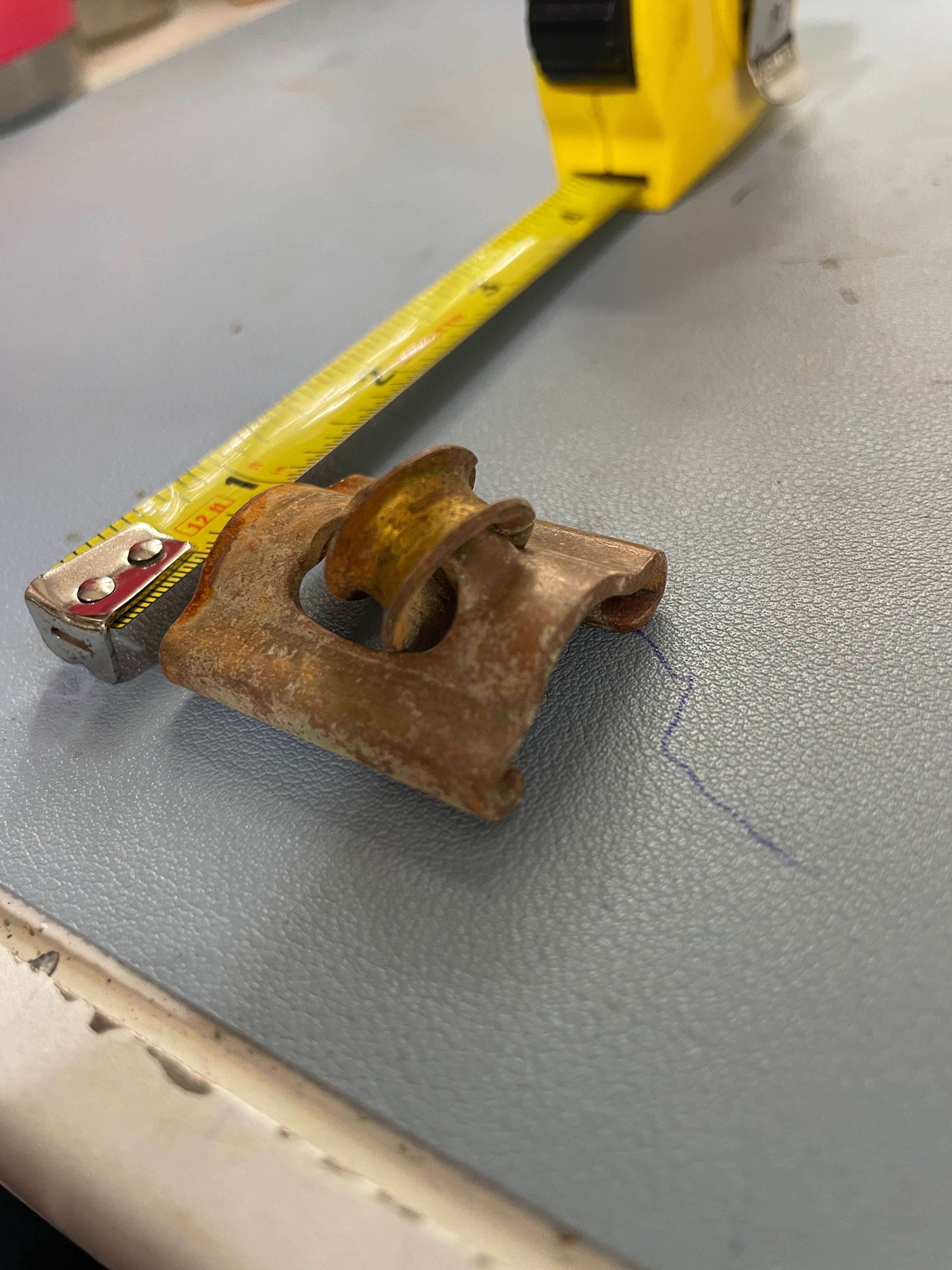 Sail slide off a 1934 Eisenhower. These are rustier in appearance. It measures 1 3/8" long. They do have a ring attached.