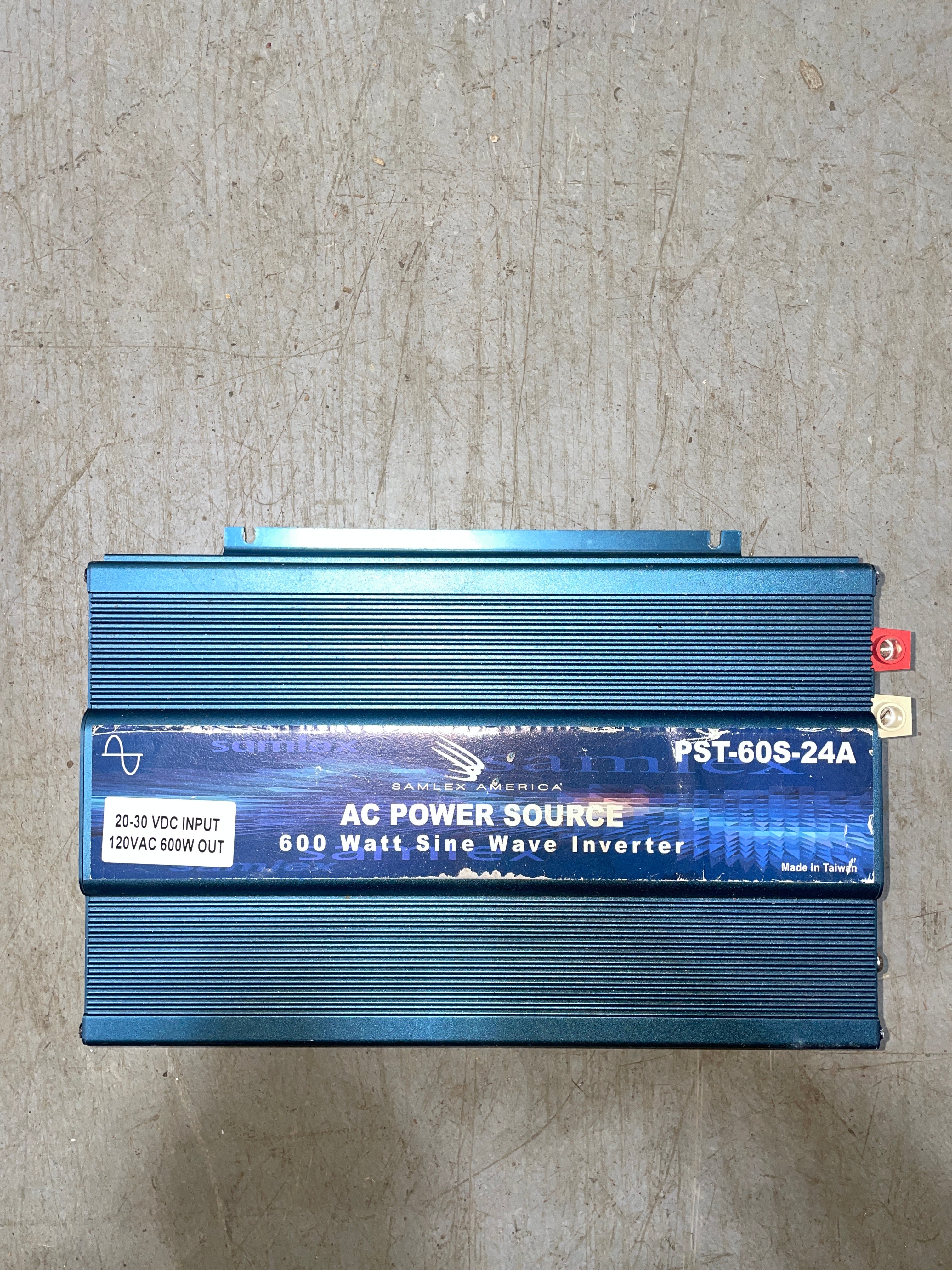 This samlex America inverter is in like new condition, doesn’t look to have ever been installed. It is 600 watt. Model is PST-60S -24A. 20-30 VDC input. 120VAC 600 watt output. Older style. Made in Taiwan. Measures 12 1/2” long x 9 1/2” wide x 3” tall.