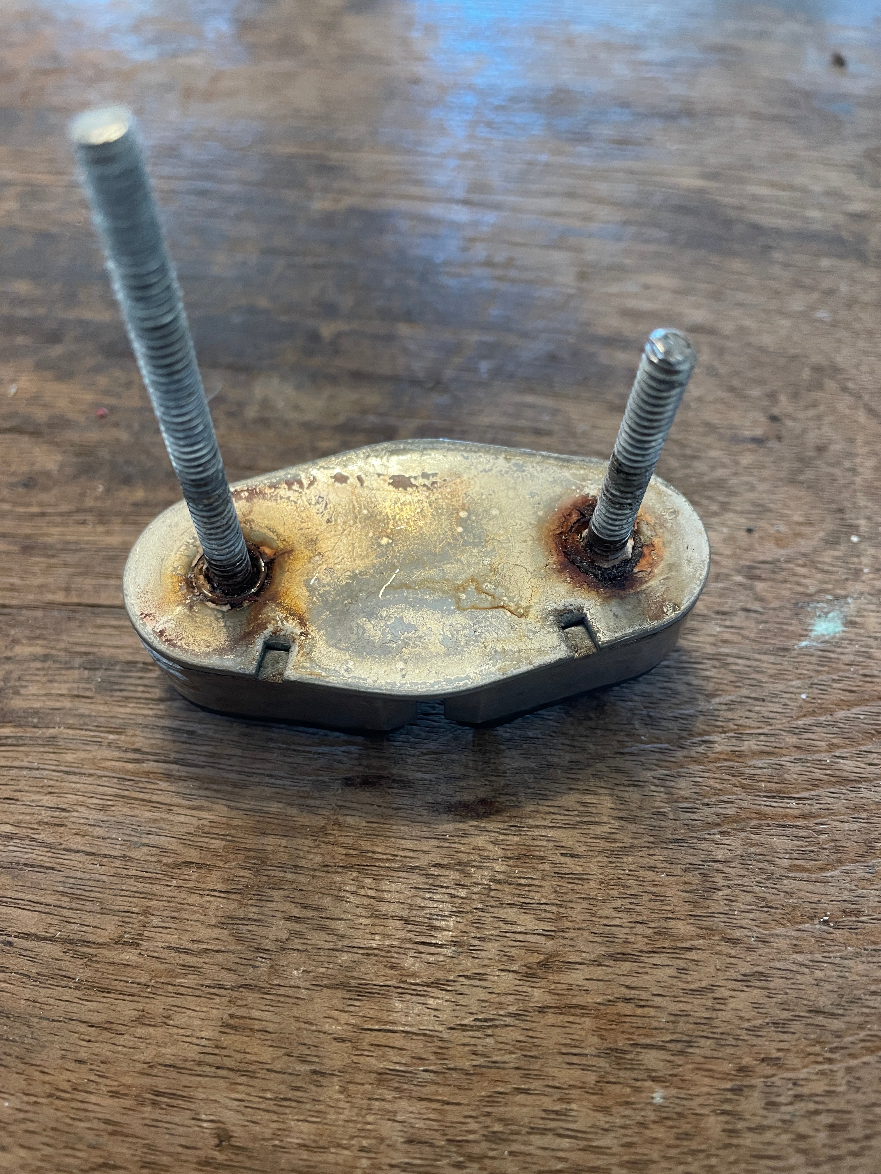 This Schaefer cam cleat is in great working condition. When fully open has a width of 1/2”. Will need new bolts but has the mounting plate. Measures 2 7/8” long x 1 1/2” wide.