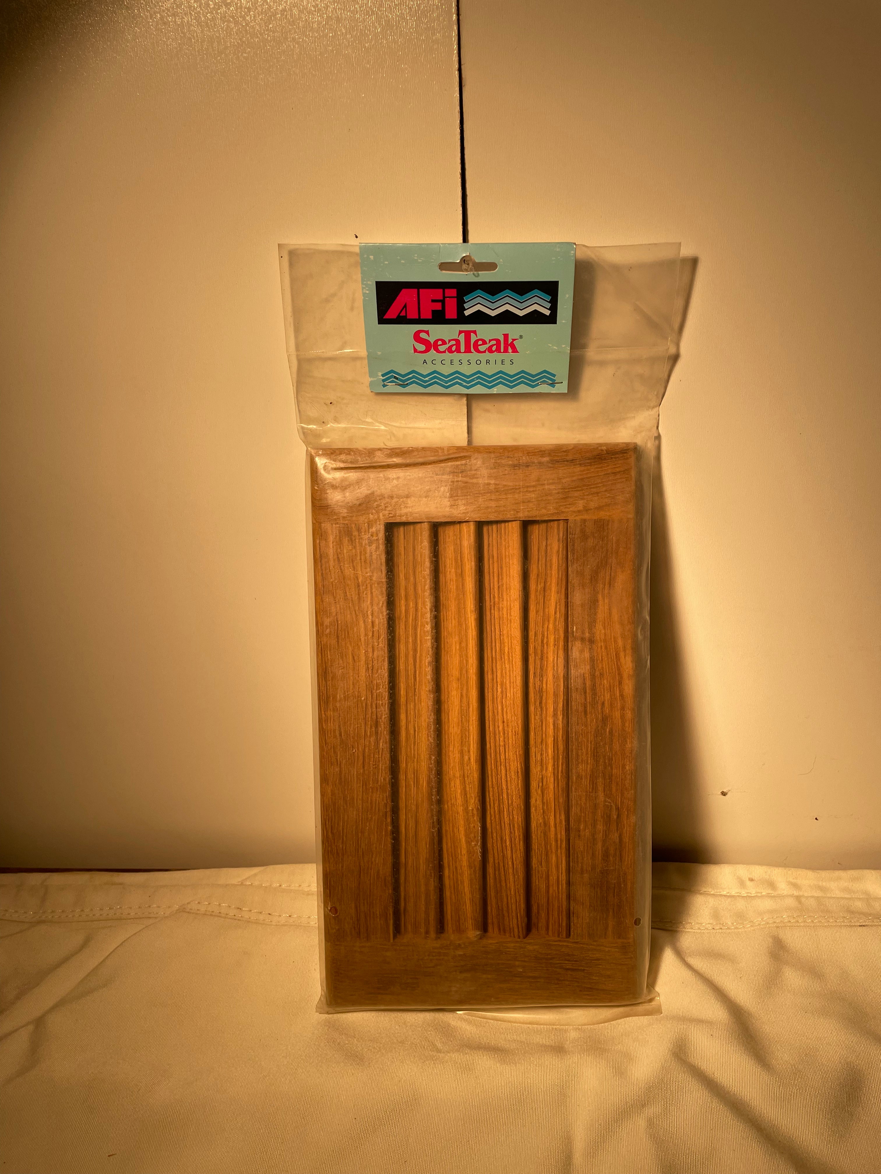 Brand New In Packing. Sea Talk Teak Louvered Door Insert. Measures 11 1/2” Long x 6 1/2” Wide.