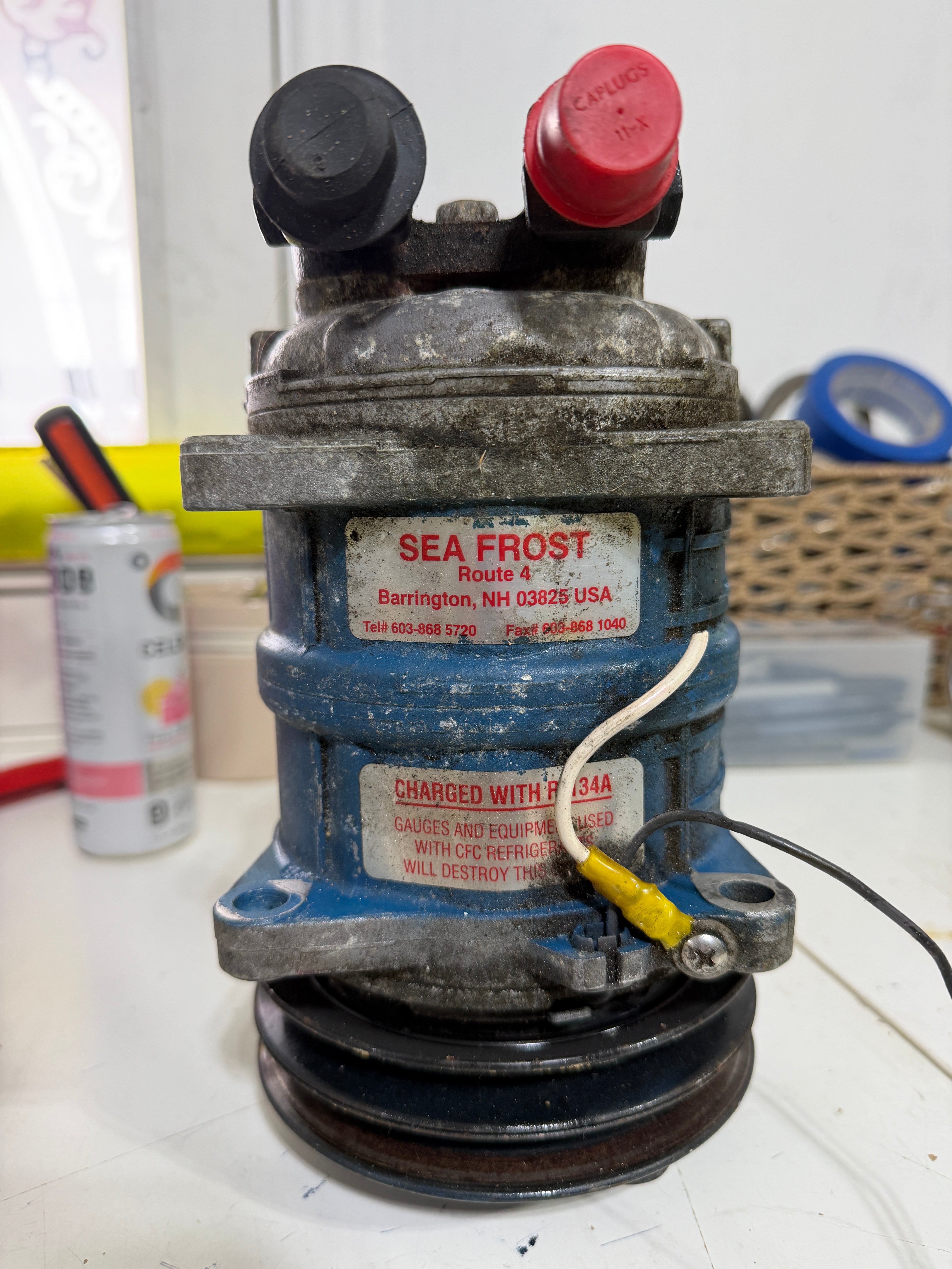This seems to be in good condition Model R-134A. The pulleys turn freely. No wiring.