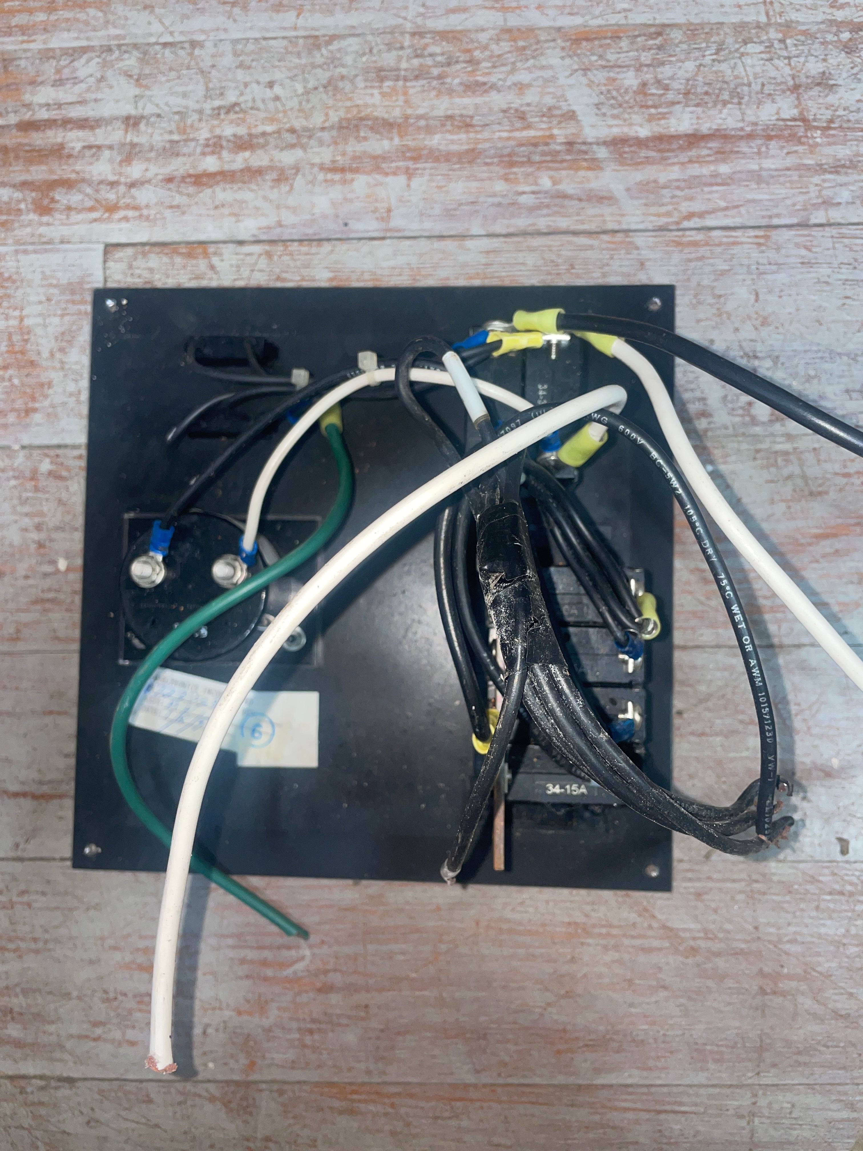 This searay electrical panel is in great condition. It is 120 volt AC. There are 4 current switches but has 2 more spots for them to be added. Has the main on/off switch. Measures 9" x 9" x 4" deep.