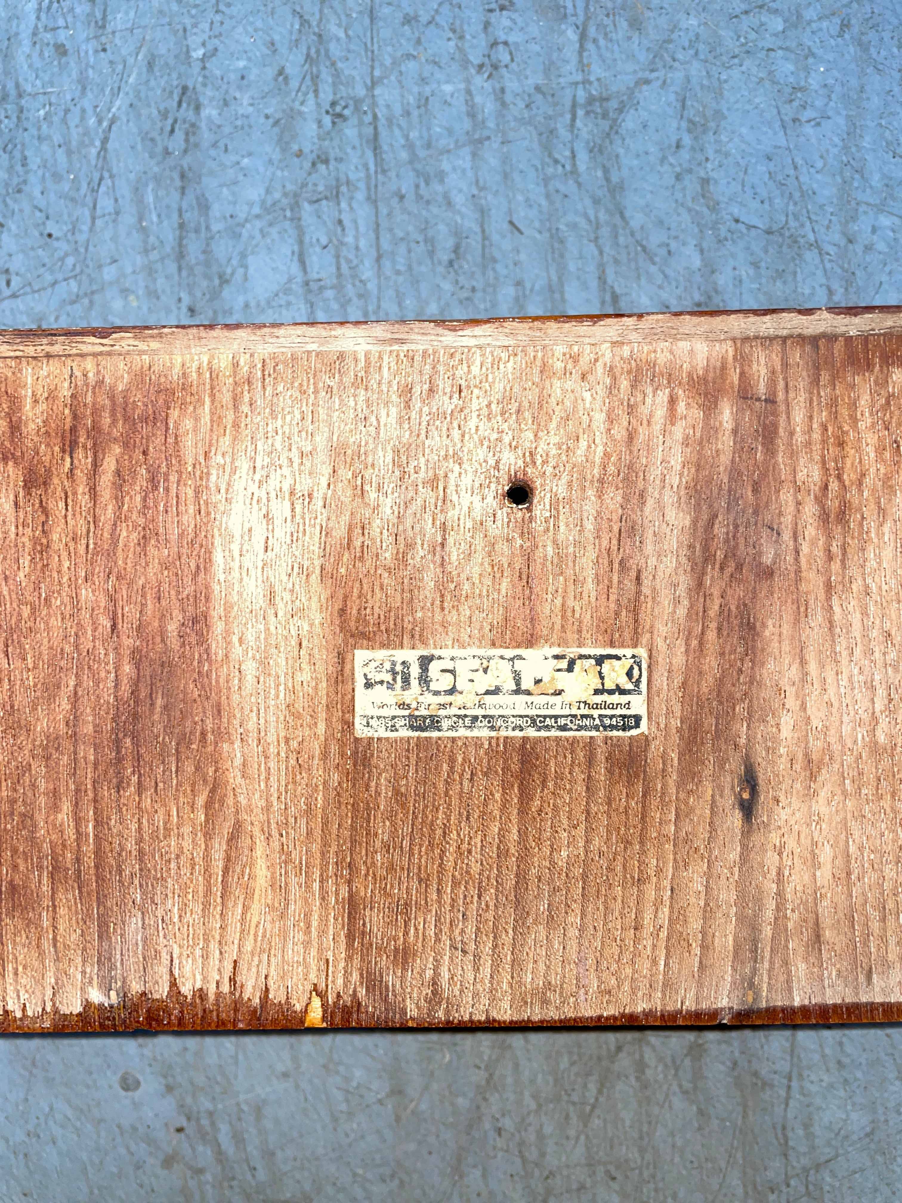 This seateak wall shelf is in great condition. However it appears that someone tried to fill in or plug the pencil holder area as it is filled with crud. Would take a good cleaning but it will come out! The general wood though is in great condition, very shiny varnish. This shelf measures 17 3/8" long x 3 7/8 wide x 6" tall. The inside diameter of storing things is 2 7/8" wide.