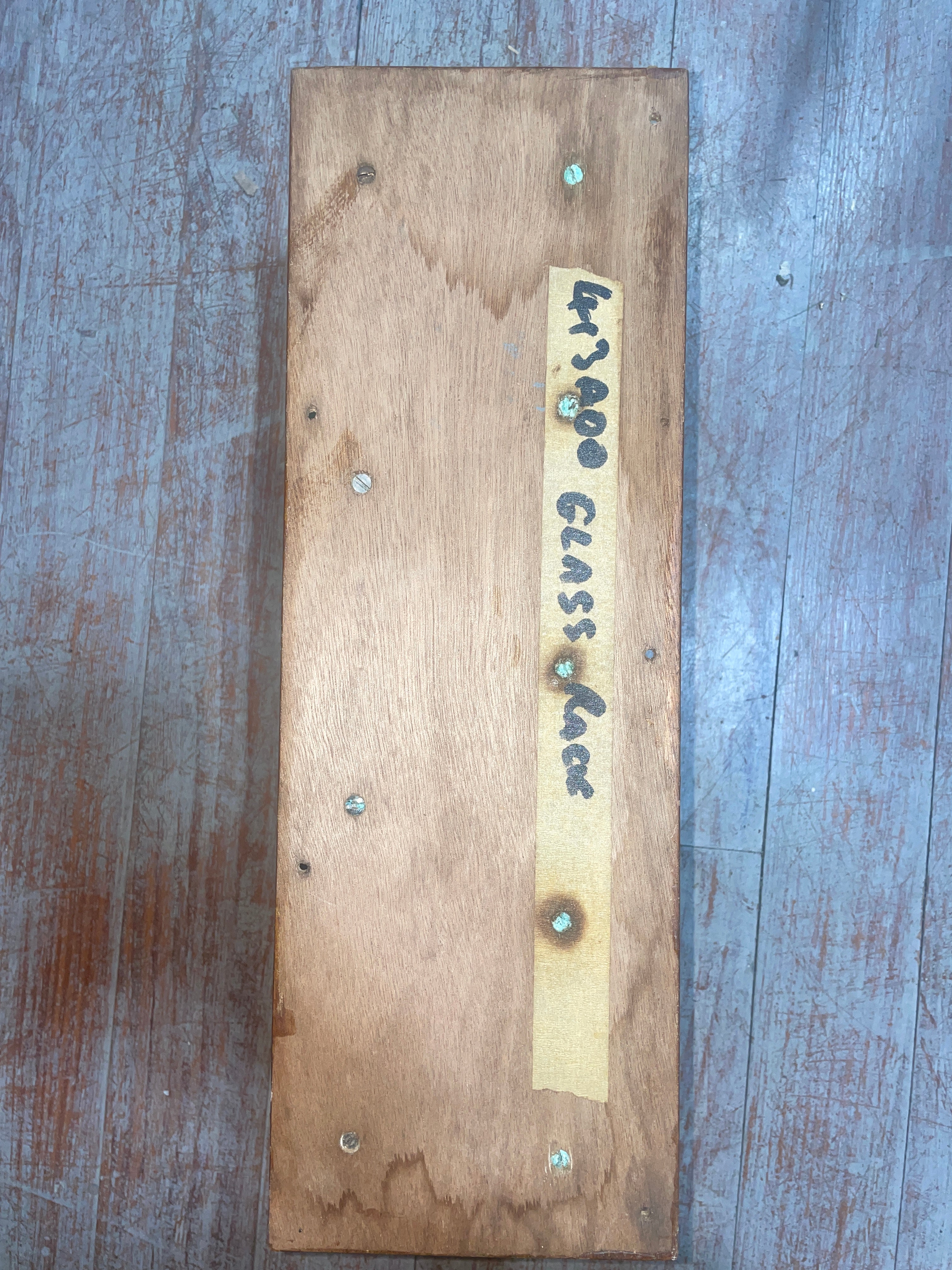 This seated glass rack is in great condition. It holds 8 glasses. The mounting is 15 7/8" long x 5 1/4" tall x 7 1/8" deep.