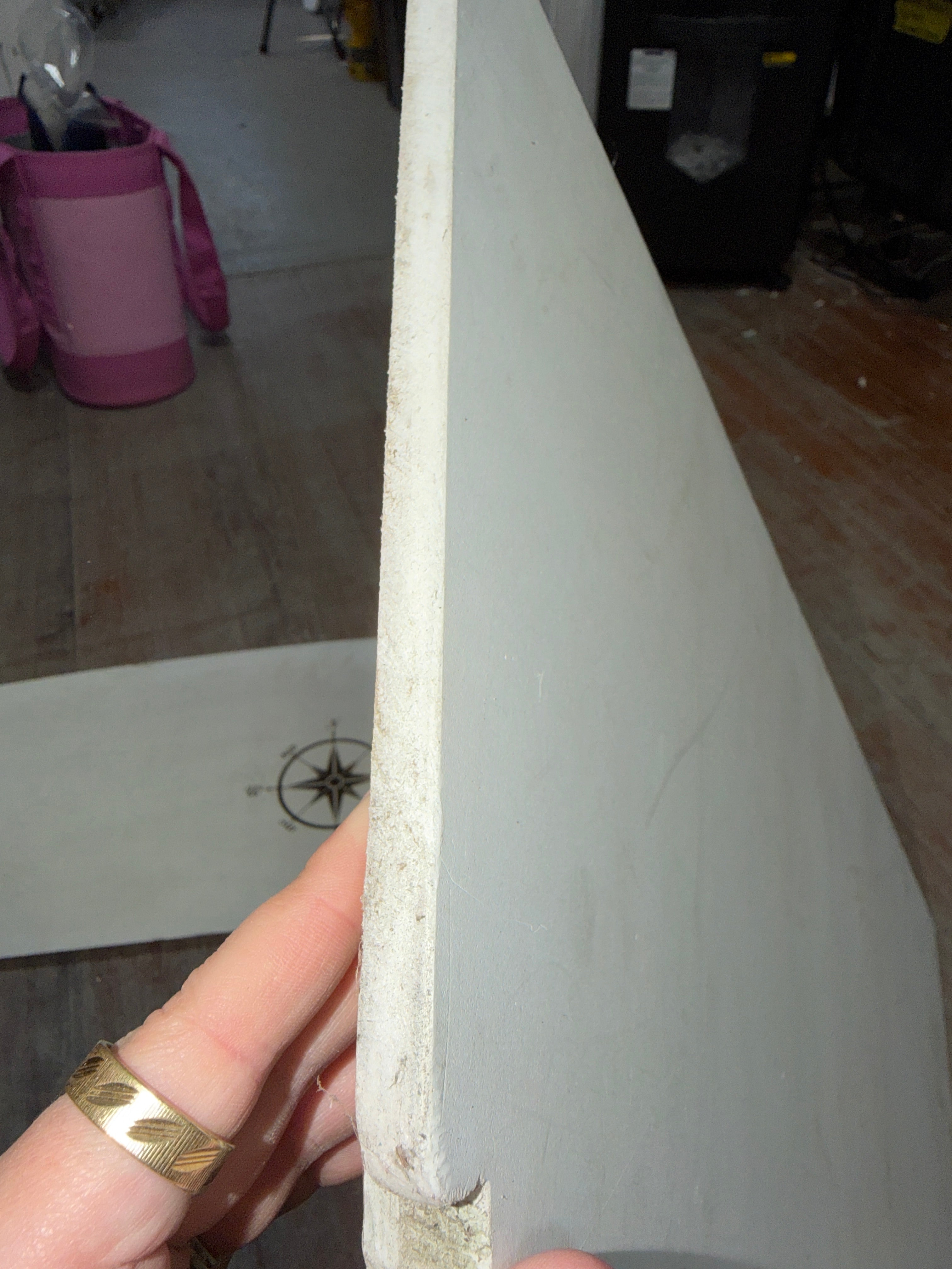 This set of 2 companion way boards are incredibly light weight. They are NOT wood. I believe they are like a poly board material. Has a cute navy vinyl sticker compass rose on the one. The shortest board is 23". The middle is 30" and the top is 36". The length down the middle is 21 3/4". The sides are 21 1/4" length.